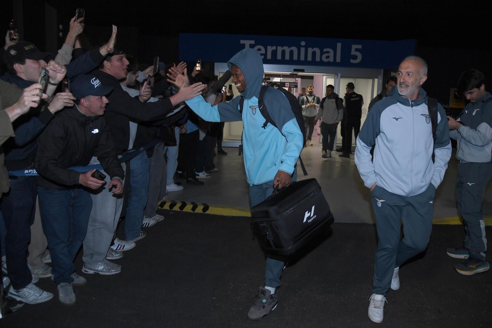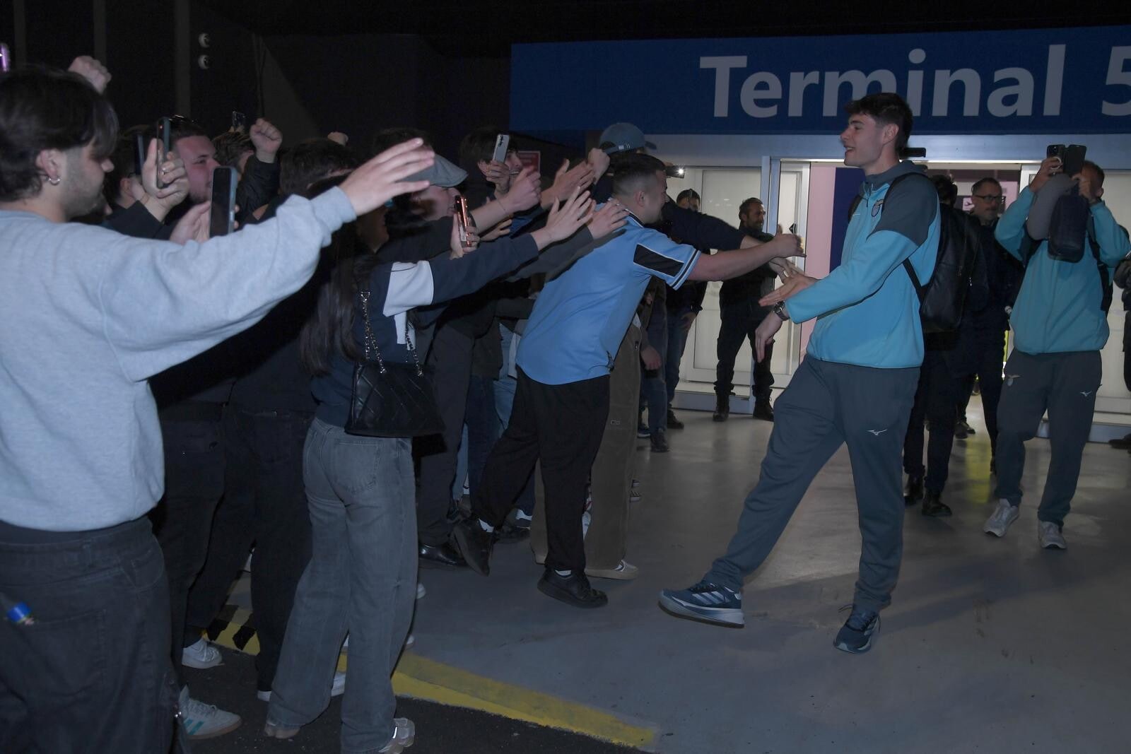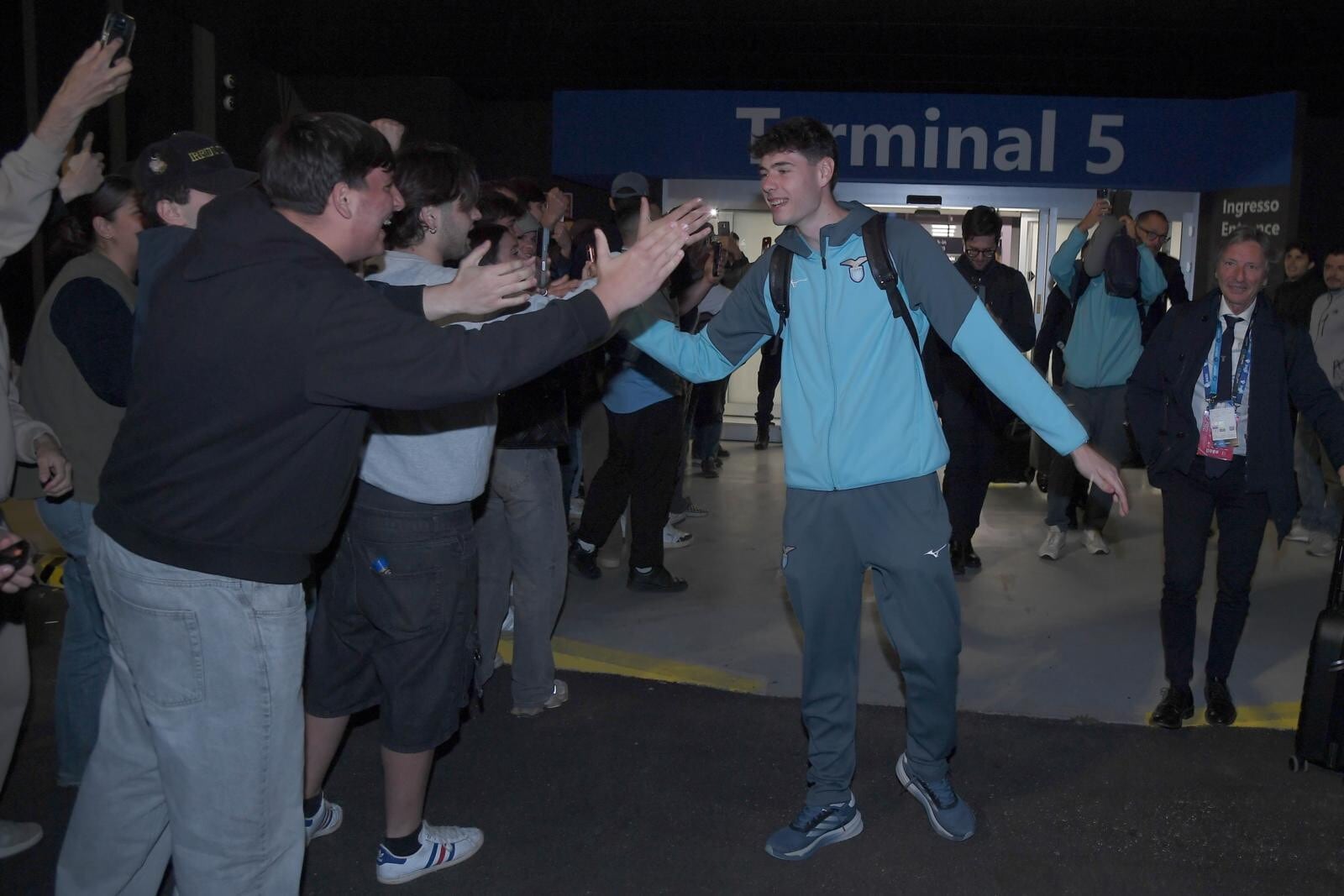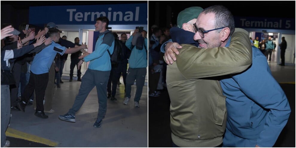 Il giovane portiere biancoceleste in trionfo con i supporter a cantare il suo nome all'aeroporto dopo la finale di Coppa Italia conquistata contro l'Atalanta