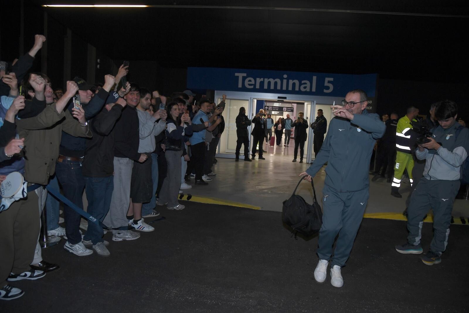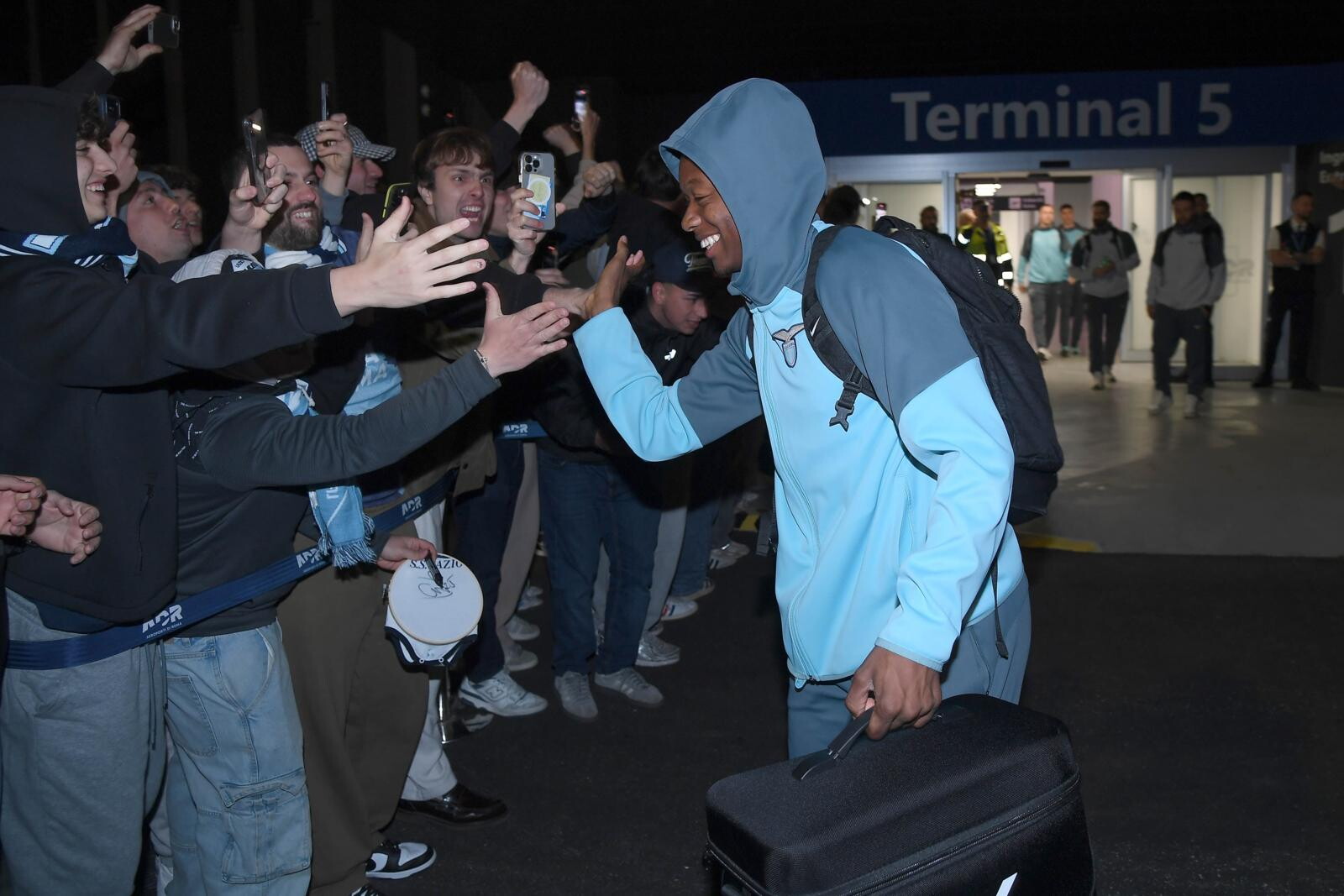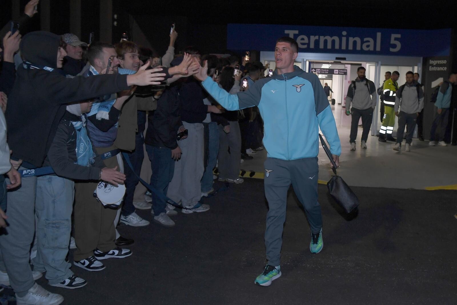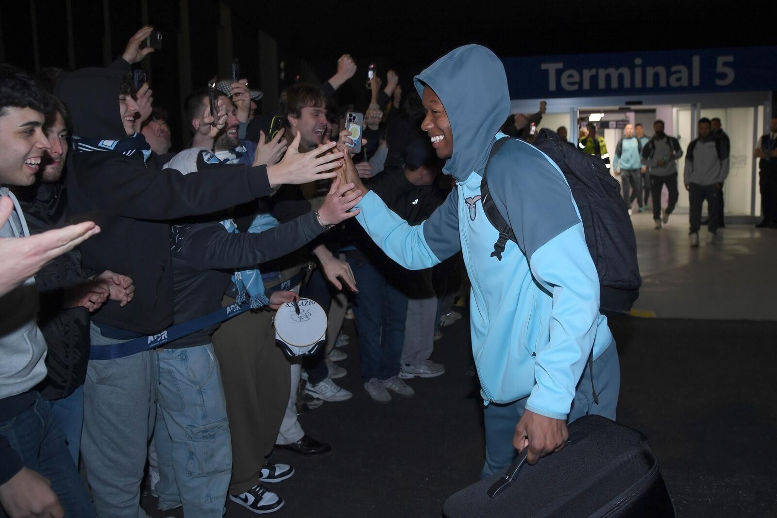 Il giovane portiere biancoceleste in trionfo con i supporter a cantare il suo nome all'aeroporto dopo la finale di Coppa Italia conquistata contro l'Atalanta