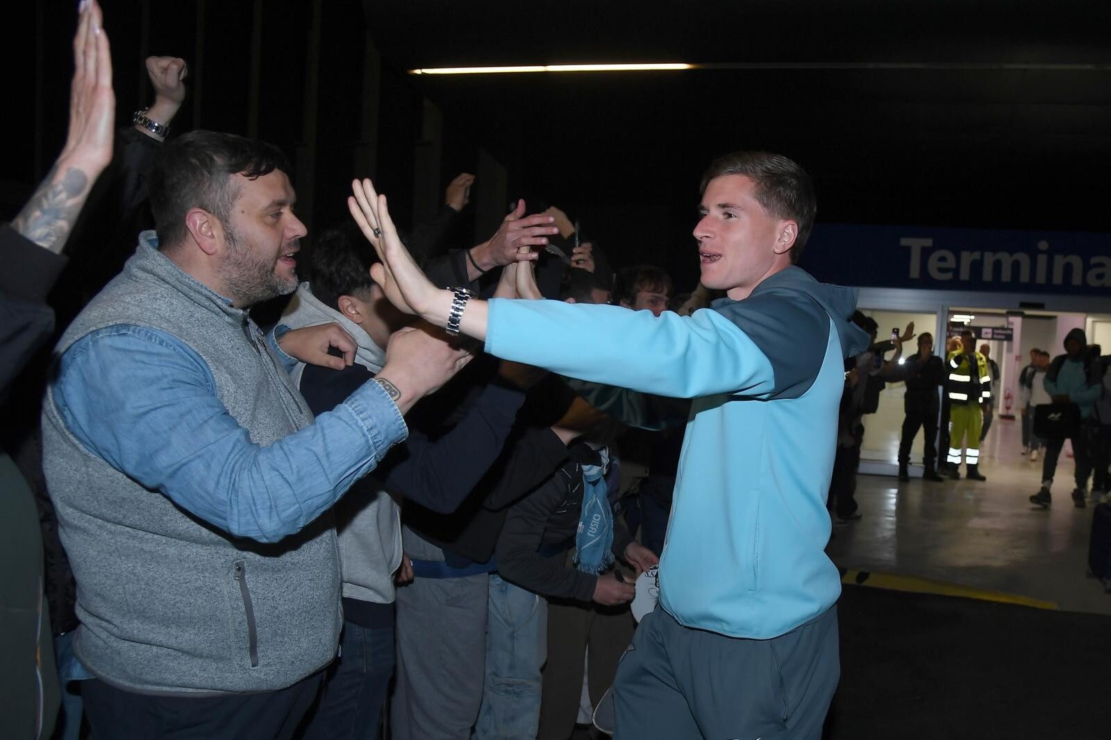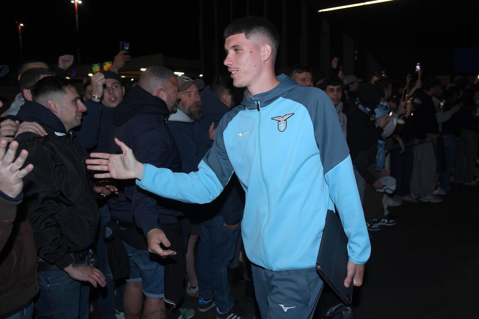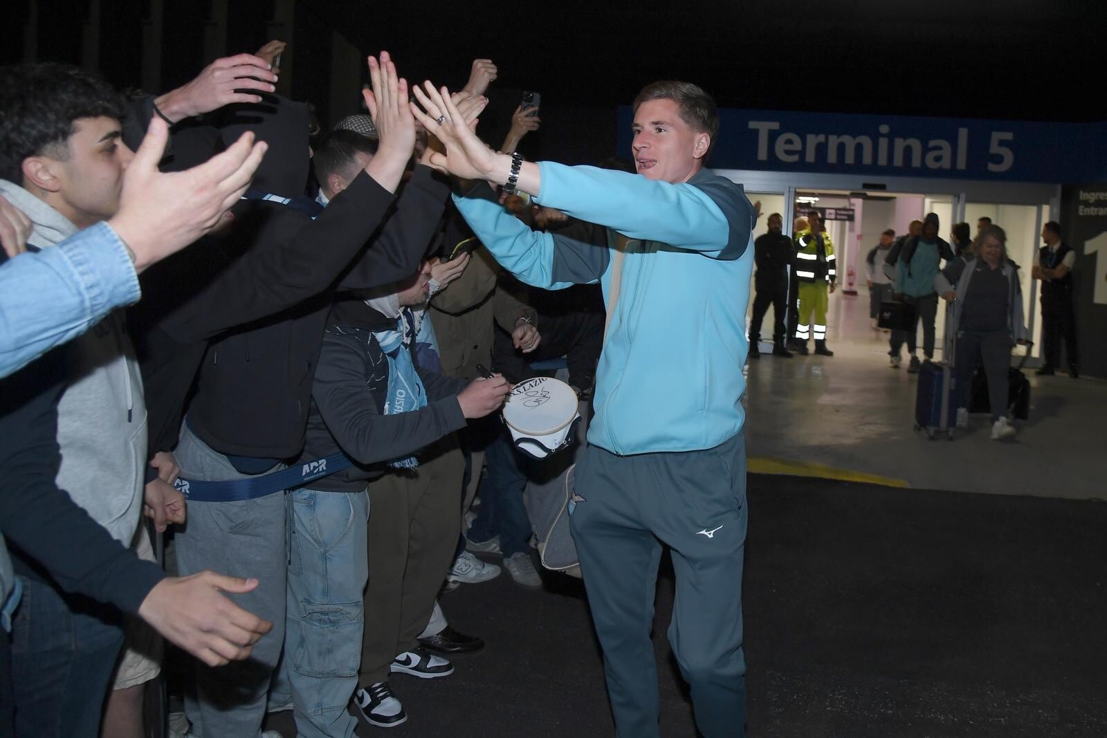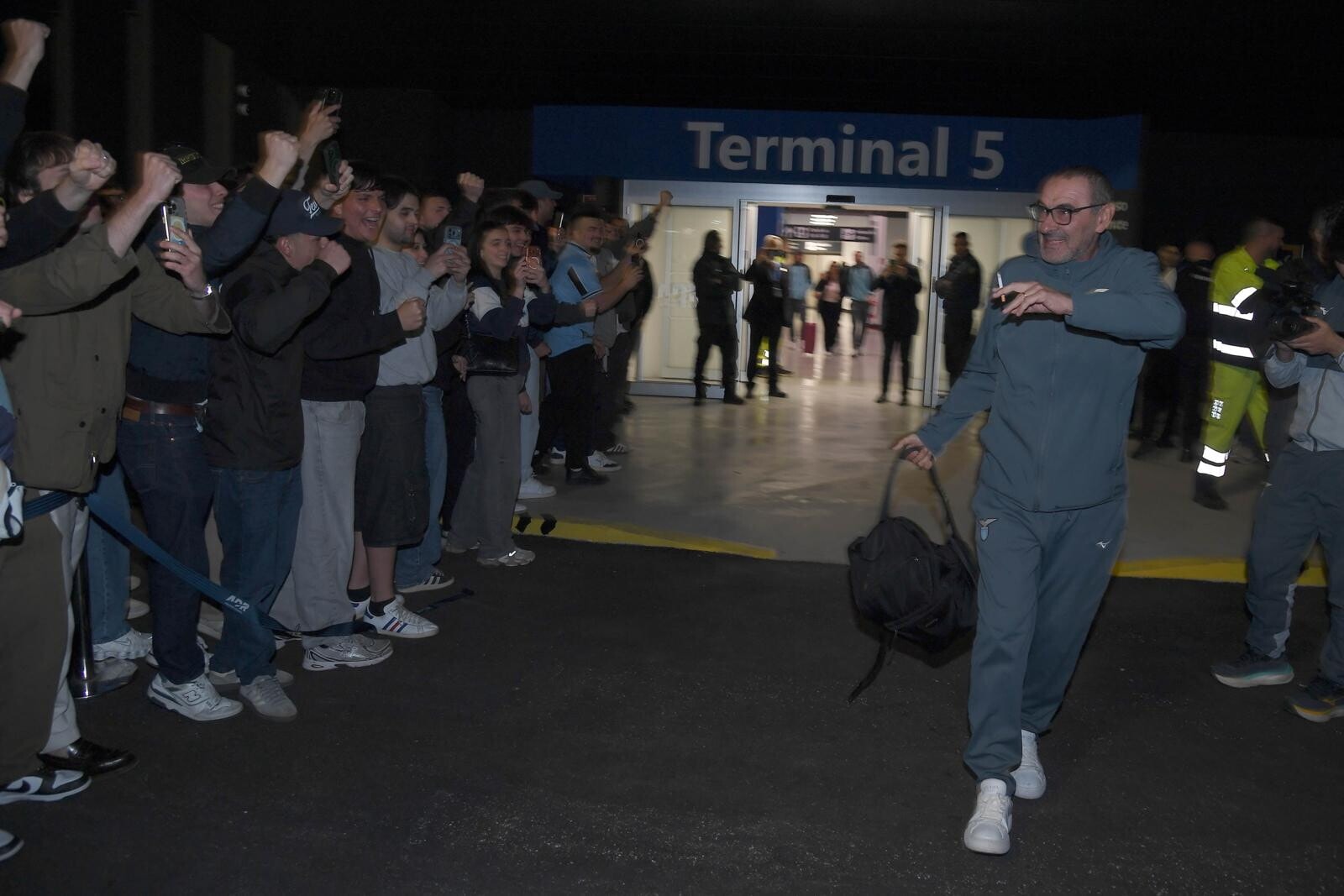Il giovane portiere biancoceleste in trionfo con i supporter a cantare il suo nome all'aeroporto dopo la finale di Coppa Italia conquistata contro l'Atalanta