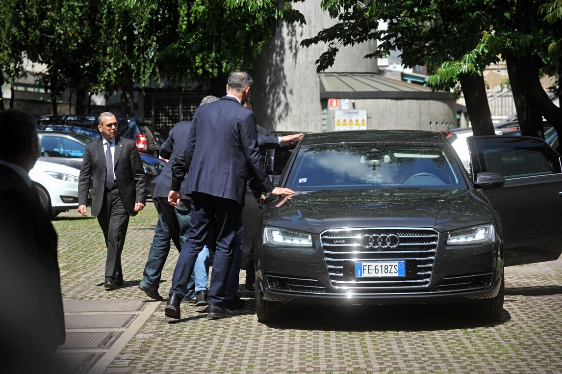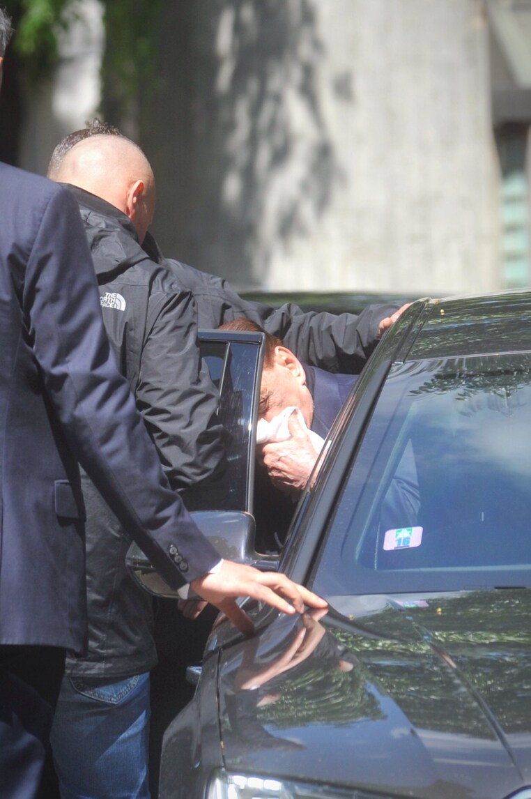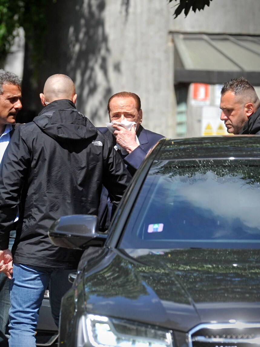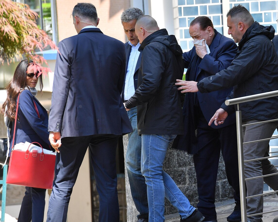 L'ex patron del Milan ha lasciato "La Madonnina" di Milano, dove è stato medicato al labbro superiore, suturato con un paio di punti dopo una caduta a Portofino. Aveva davanti alla bocca una medicazione bianca, probabilmente con del ghiaccio