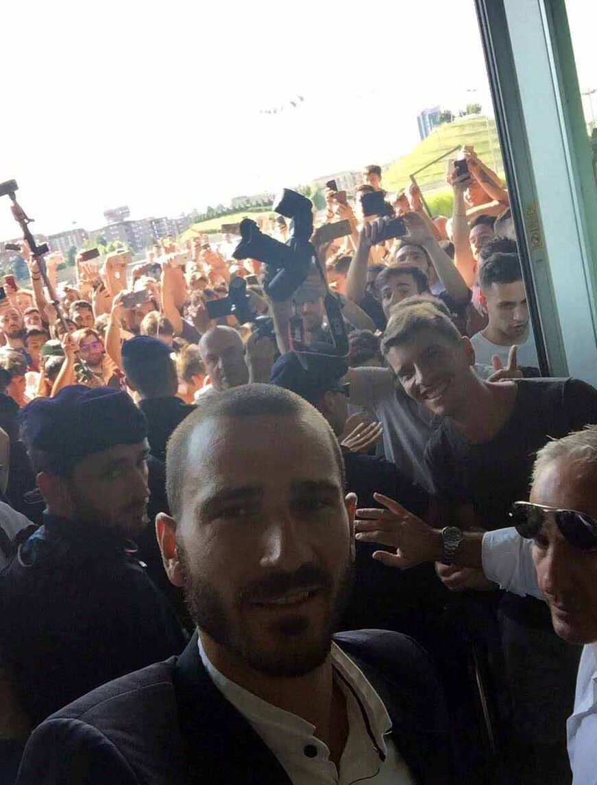 La fotostoria della giornata con l'arrivo del difensore in sede dove, fuori, centinaia di tifosi lo stanno aspettando