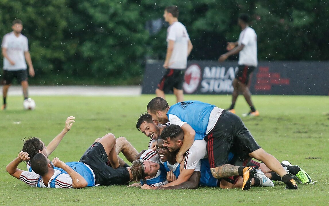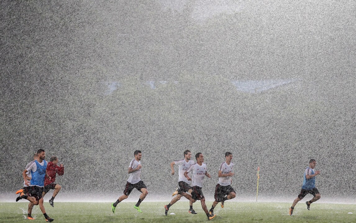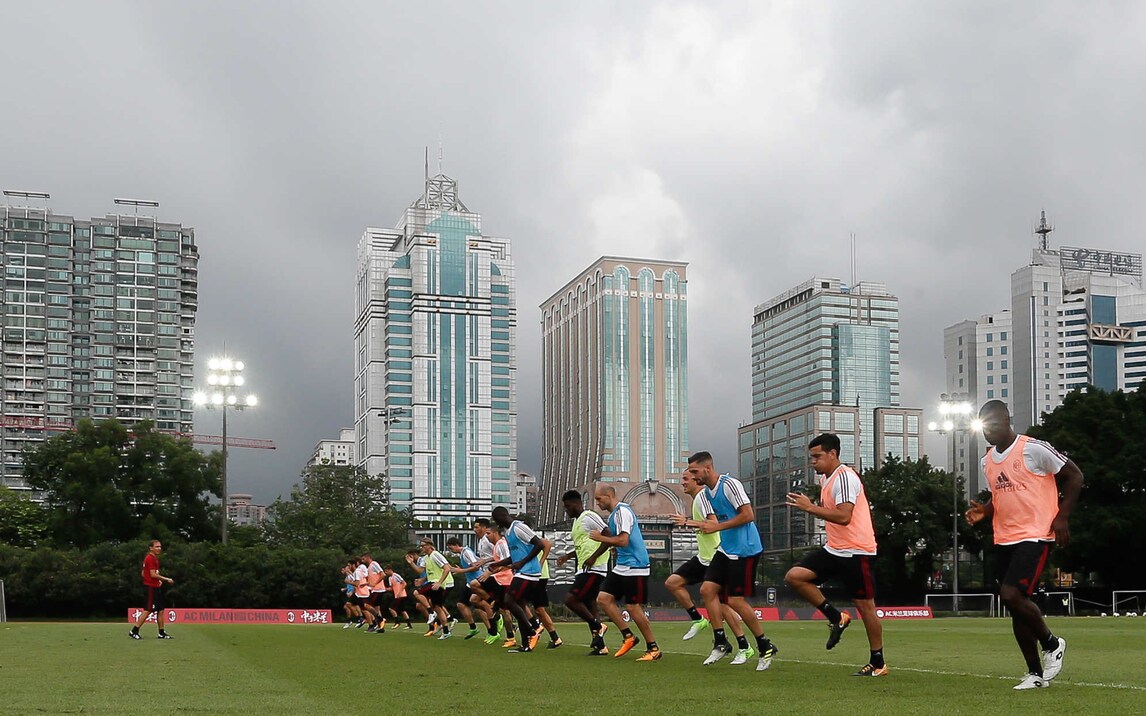La squadra rossonera prepara l'amichevole contro il Borussia Dortmund sotto la pioggia a Guanghzou