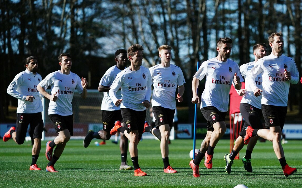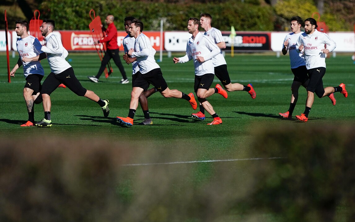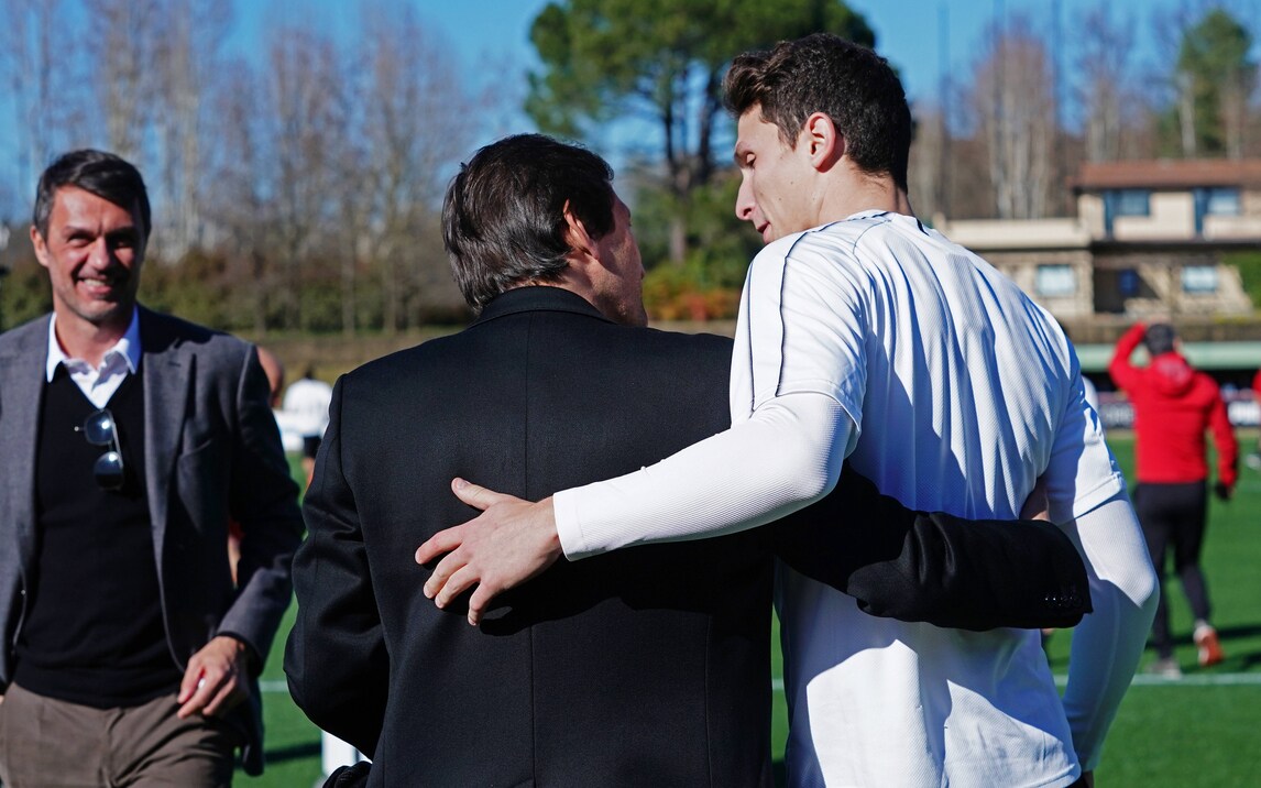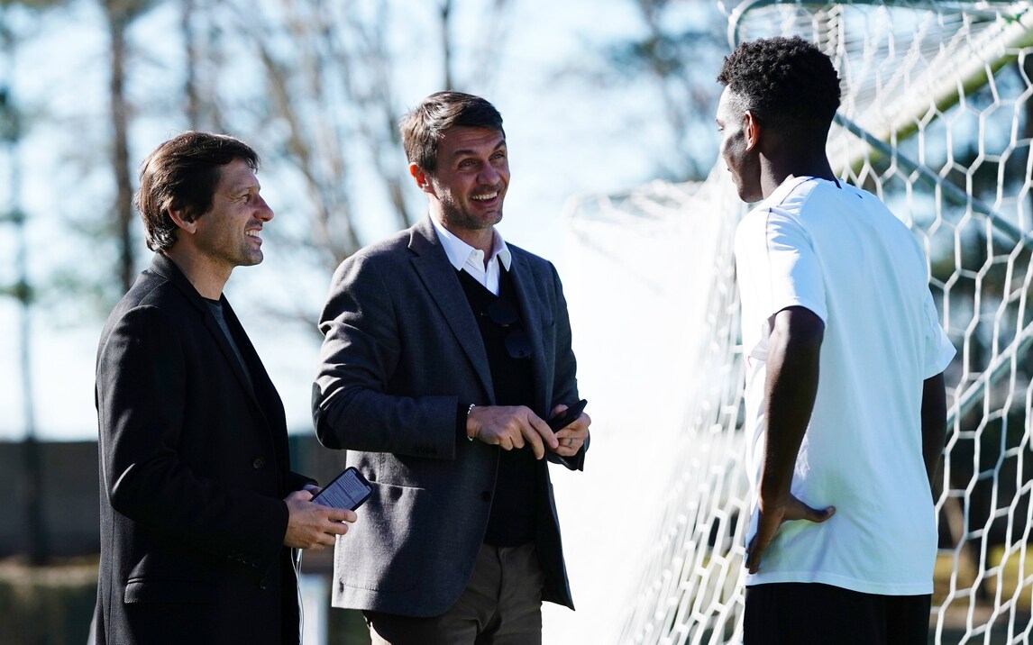 Il brasiliano palleggia mostrando tutta la sua classe, Kessie è "ai blocchi" e Maldini e Leonardo seguono da vicino il lavoro della squadra