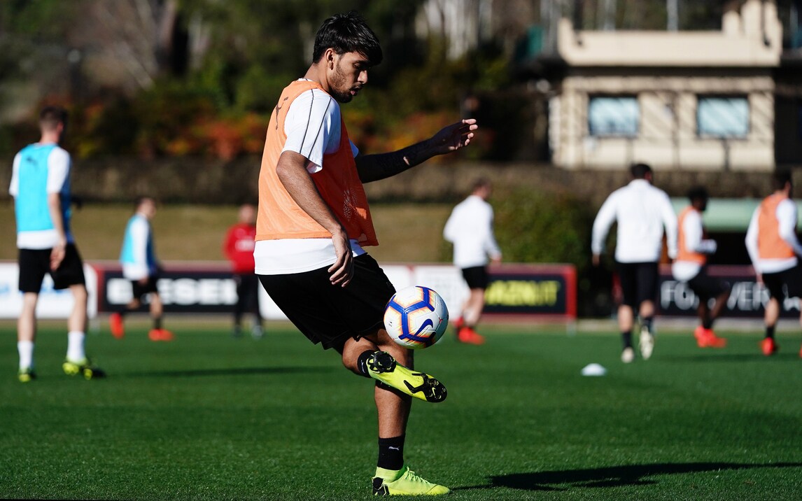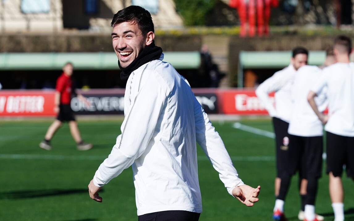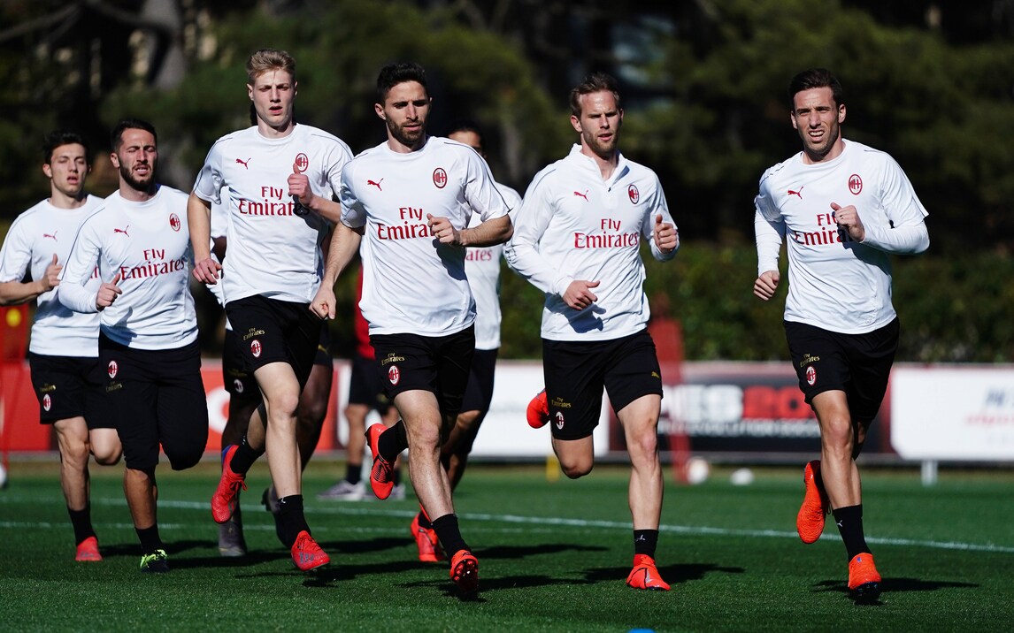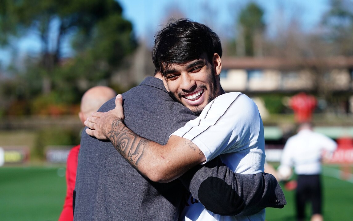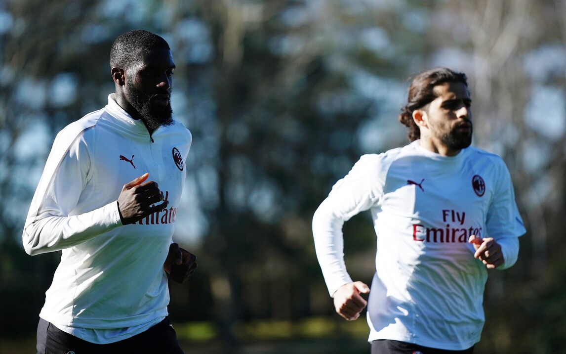 Il brasiliano palleggia mostrando tutta la sua classe, Kessie è "ai blocchi" e Maldini e Leonardo seguono da vicino il lavoro della squadra