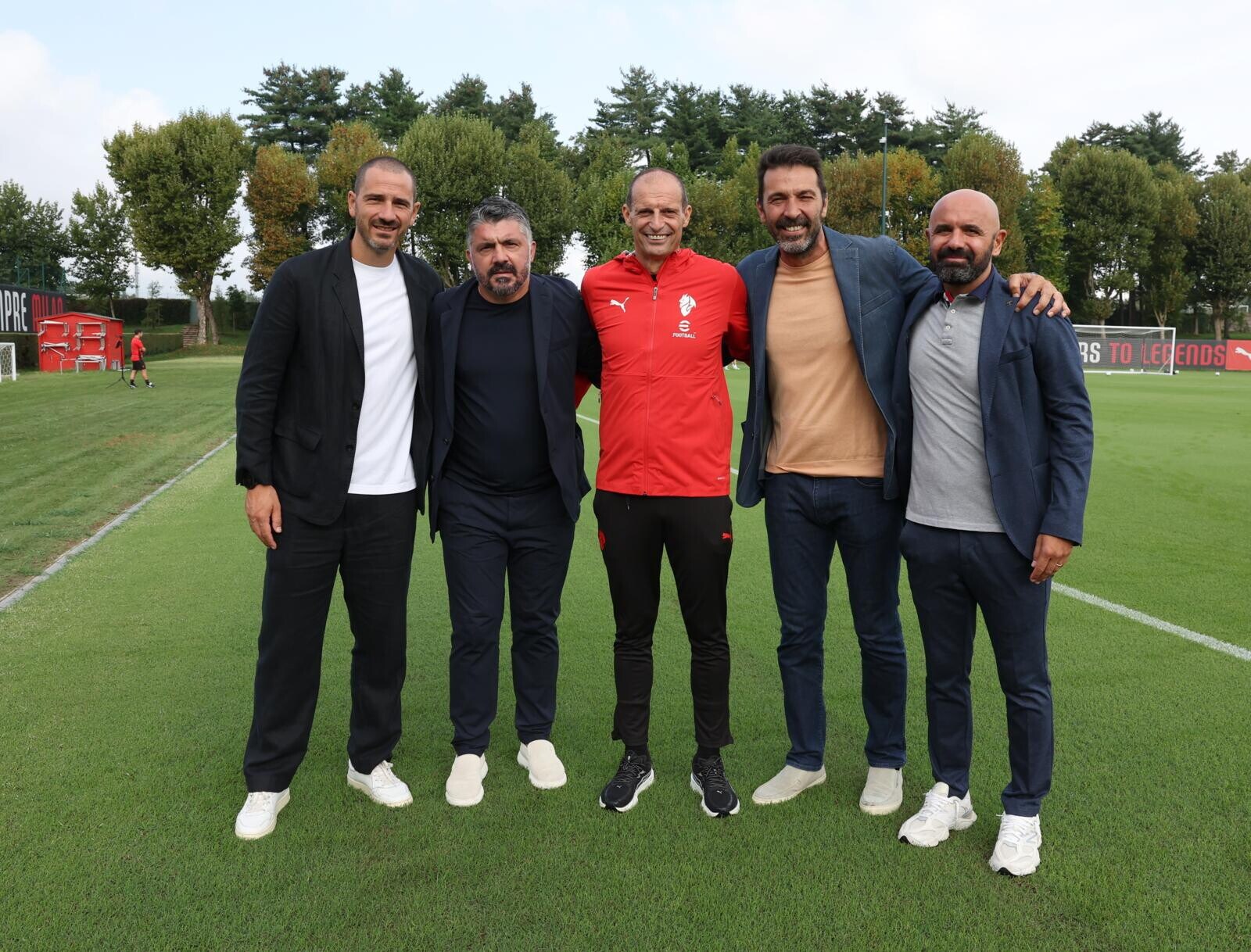 L'Italia incontra il Milan: Gattuso e Buffon con Allegri, Tare e i giocatori