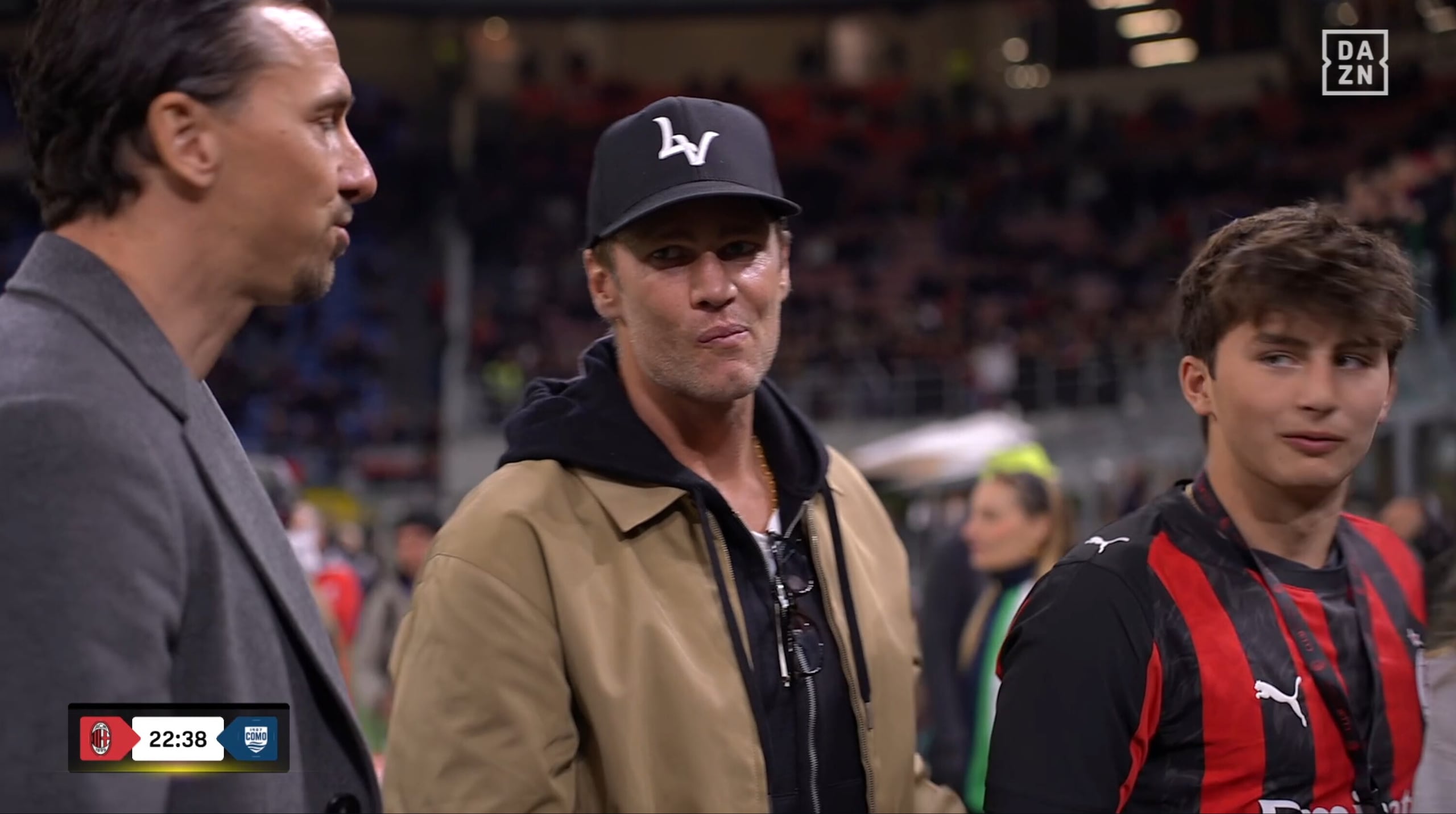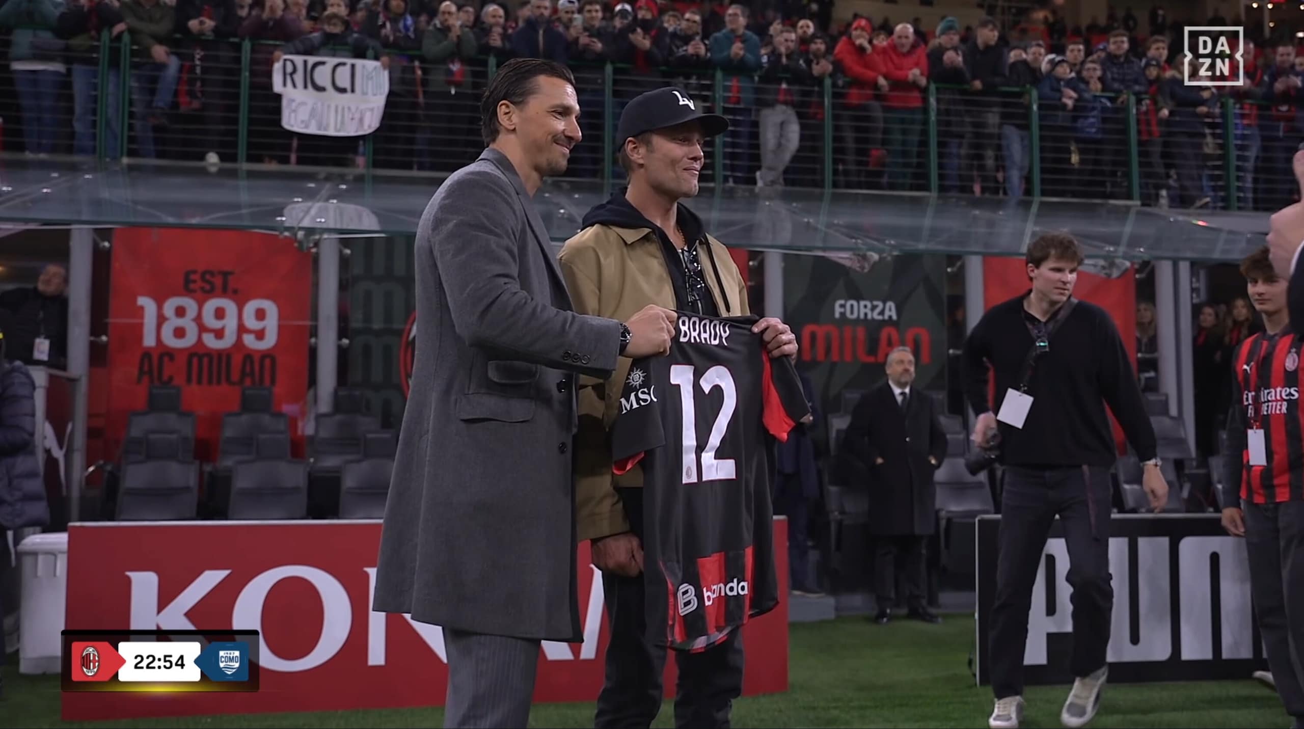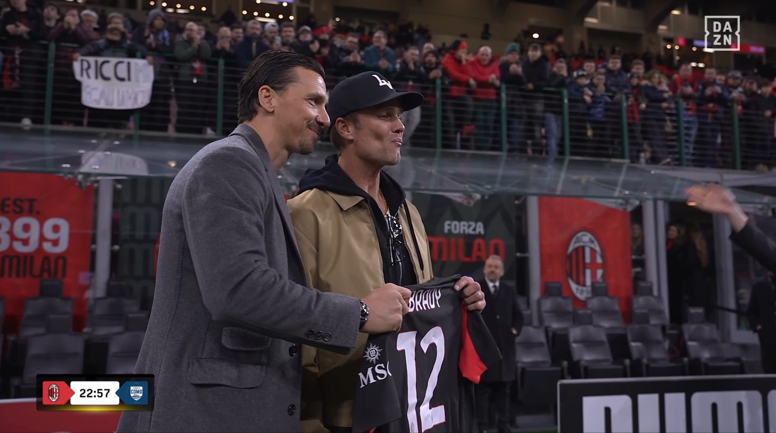 C'è Tom Brady a San Siro per Milan-Como e Ibrahimovic gli regala una maglia speciale