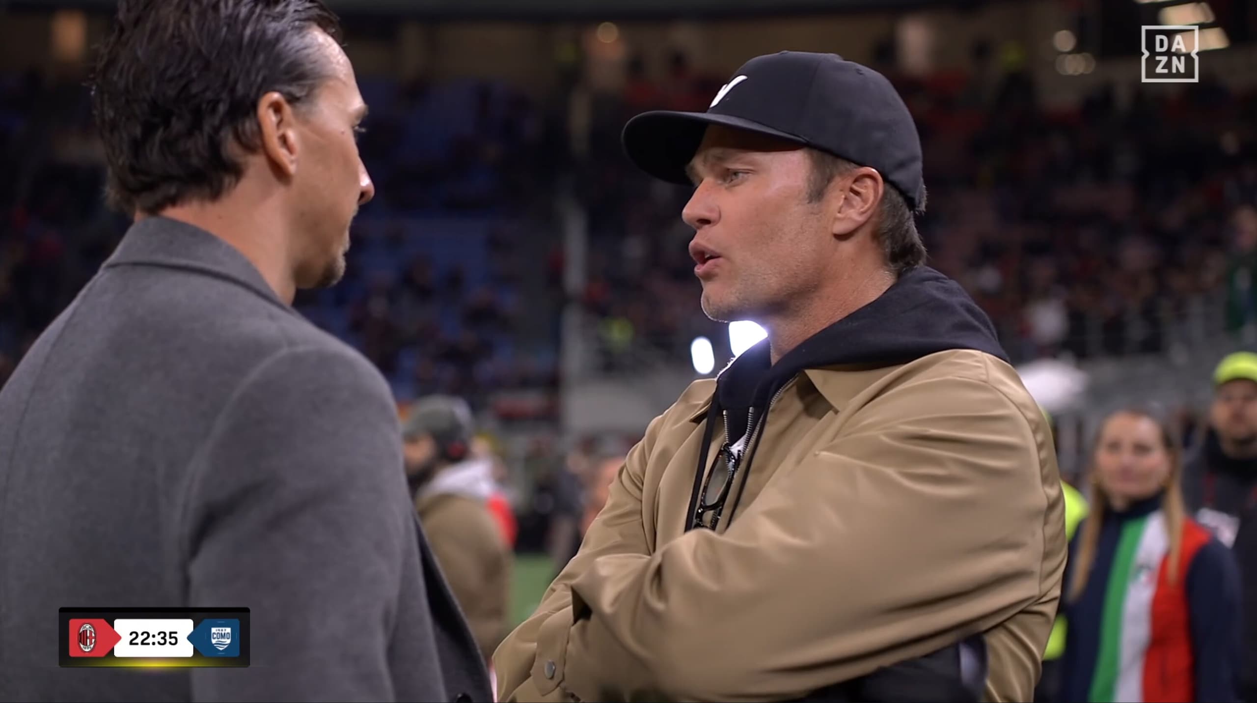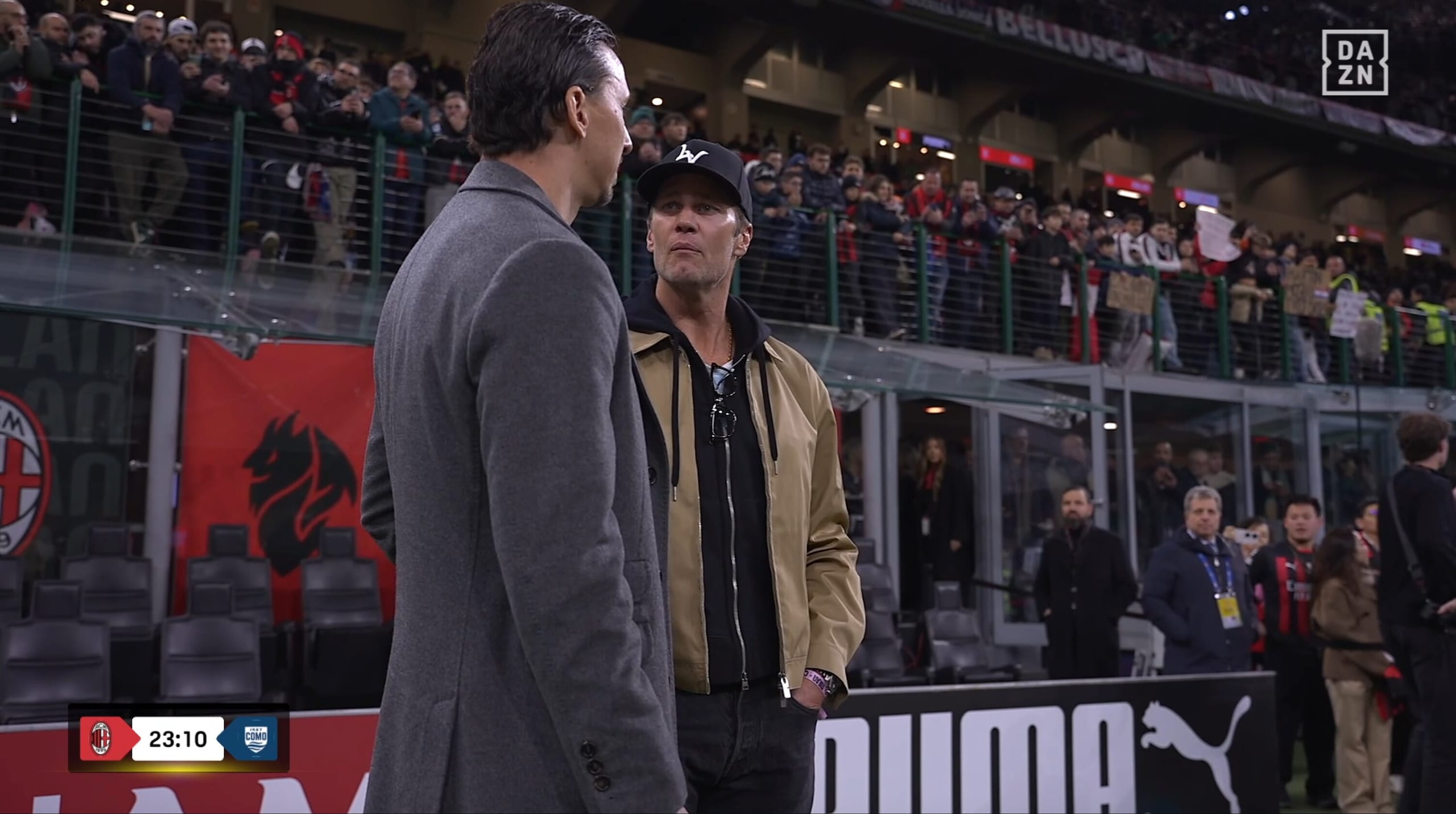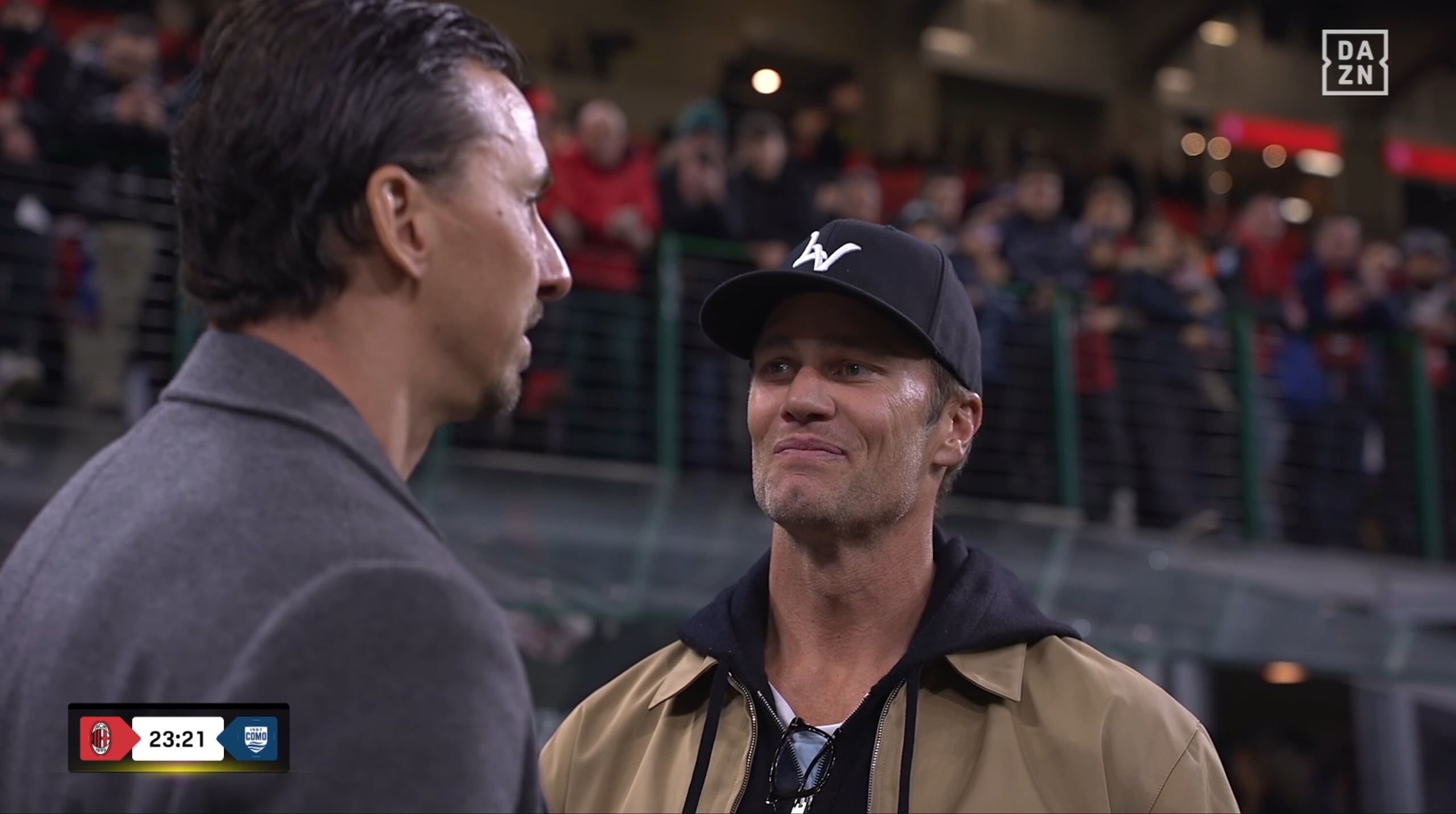C'è Tom Brady a San Siro per Milan-Como e Ibrahimovic gli regala una maglia speciale