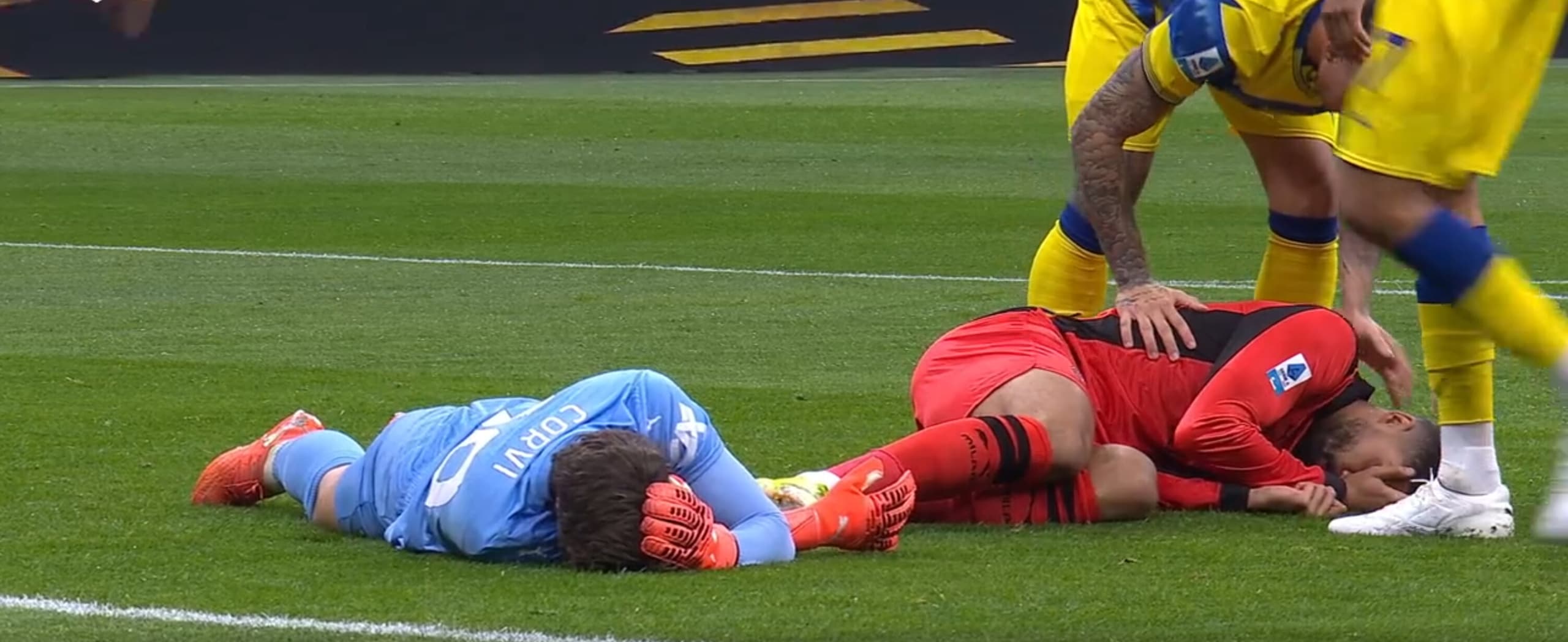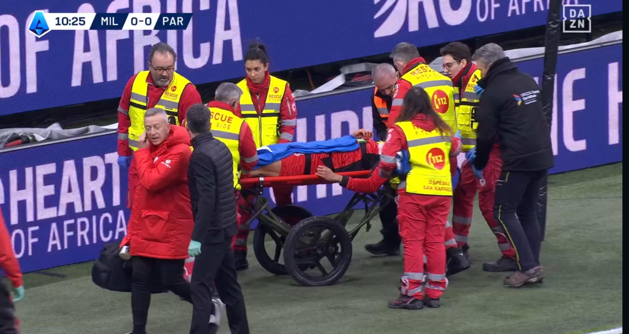 Che spavento per Loftus-Cheek: crolla a terra dopo un durissimo scontro con Corvi. L'uscita in barella tra gli applausi di San Siro