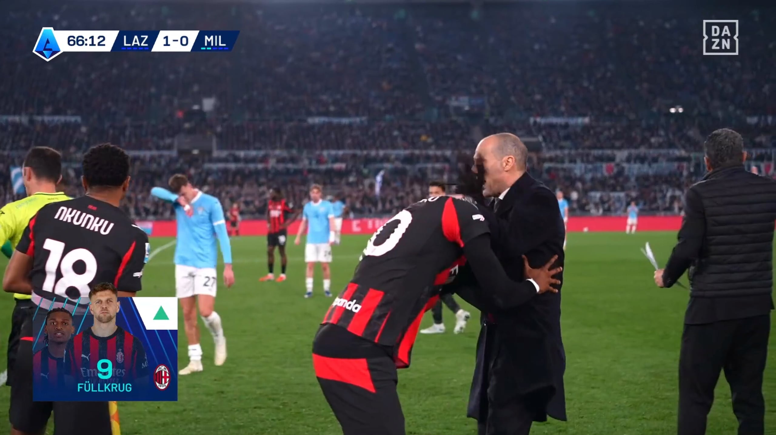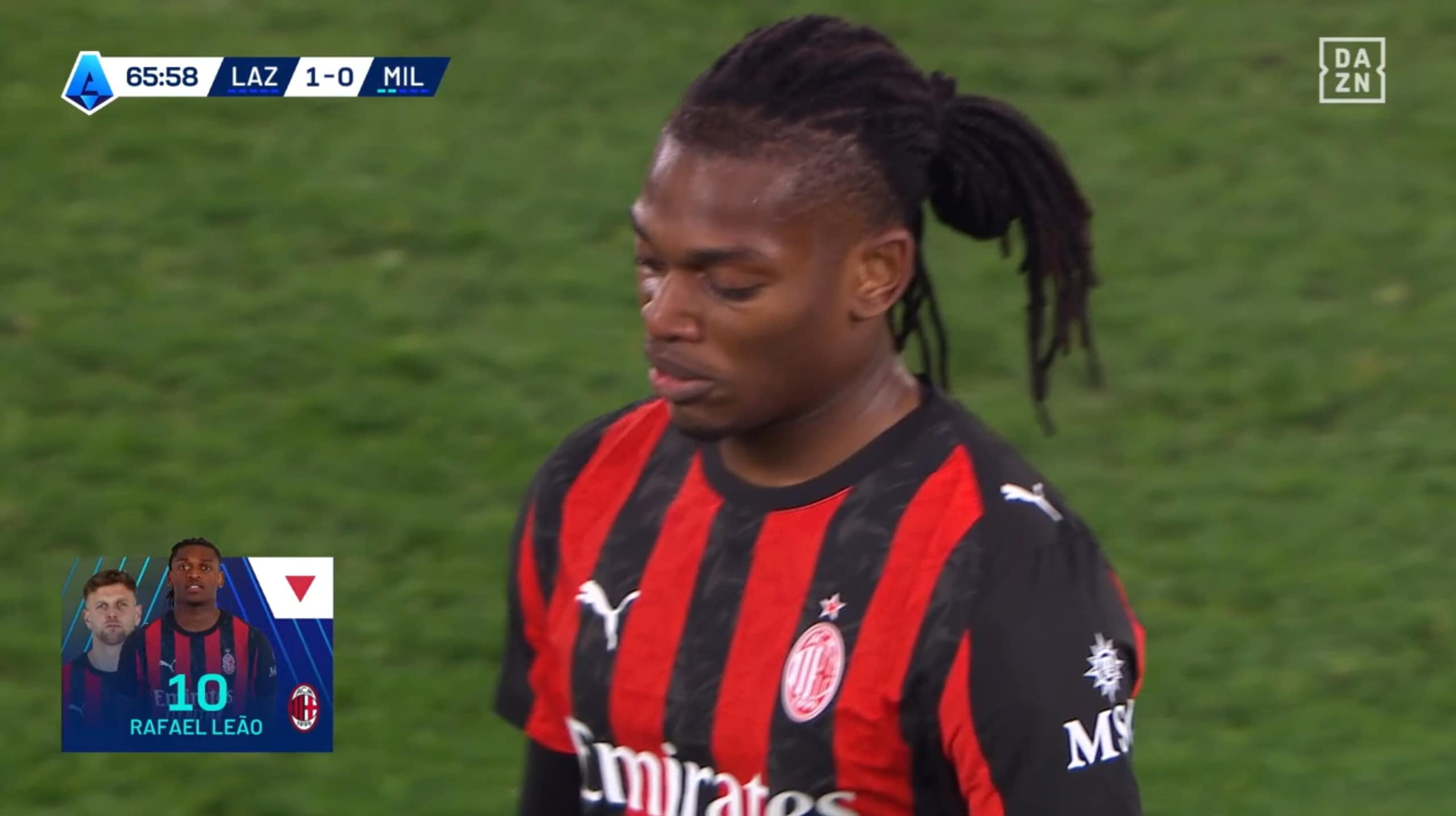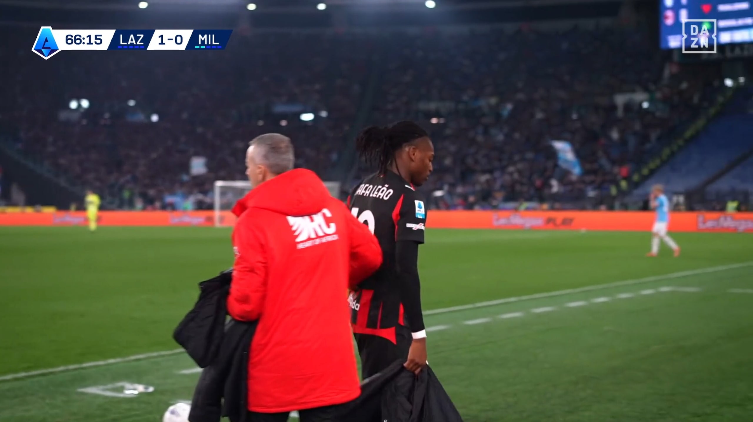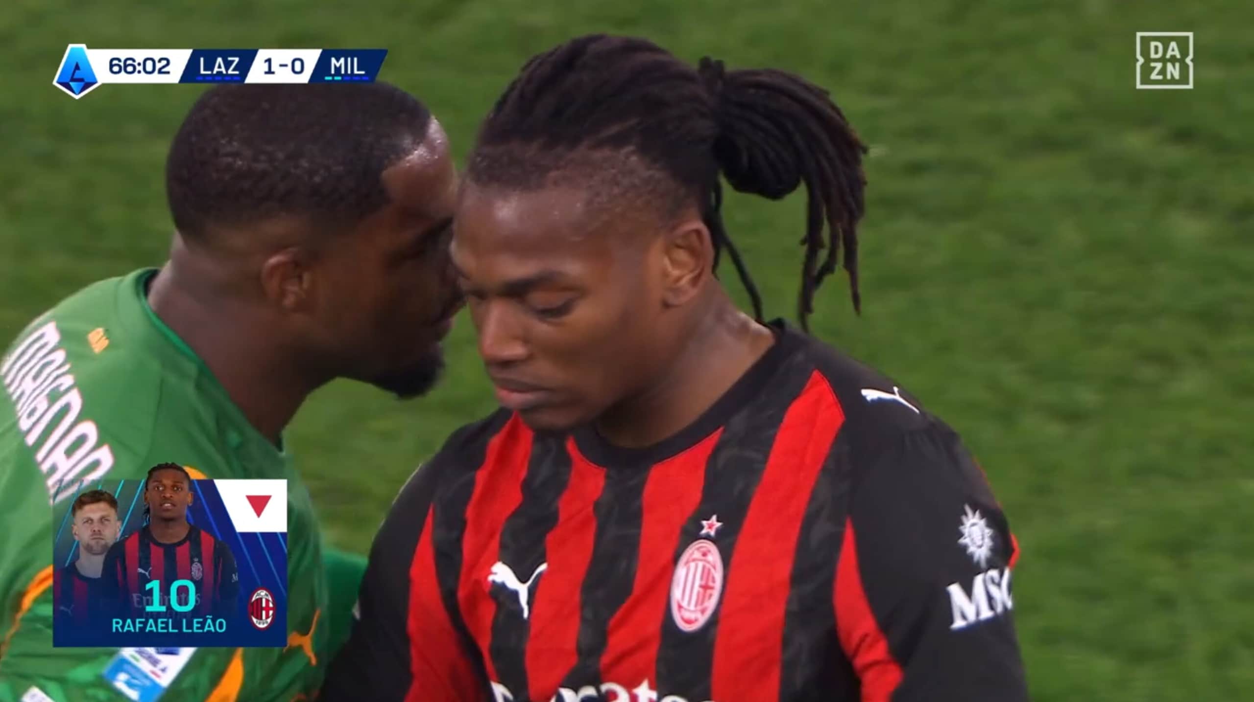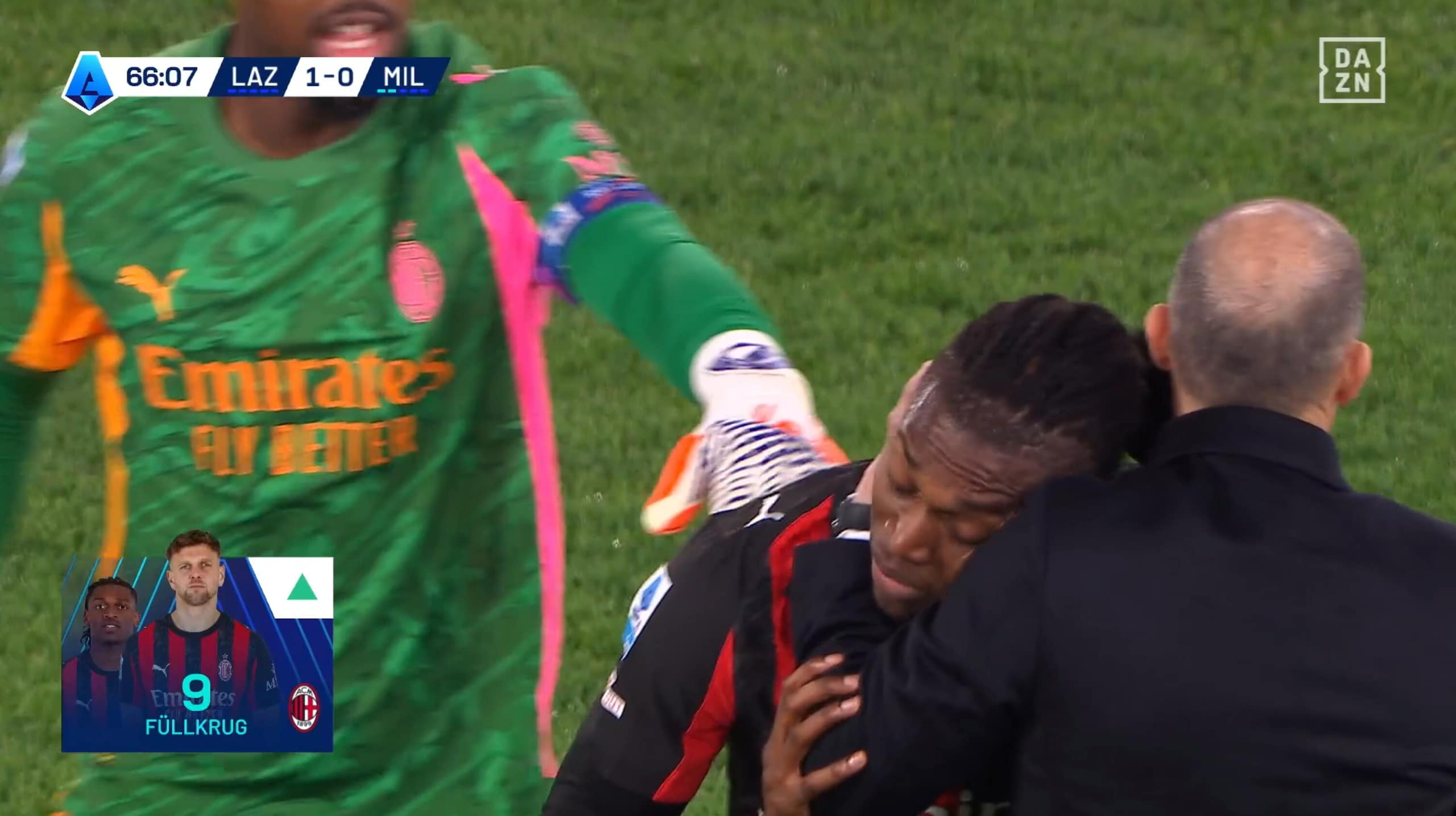 Leao stizzito dopo il cambio: Allegri e Maignan provano a calmarlo