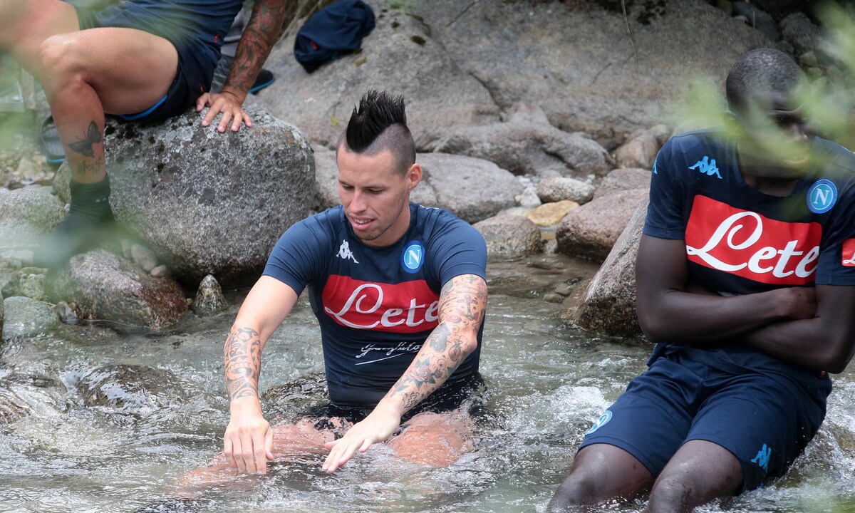 La pazza festa negli spogliatoi dei giocatori del Napoli dopo la vittoria in Supercoppa