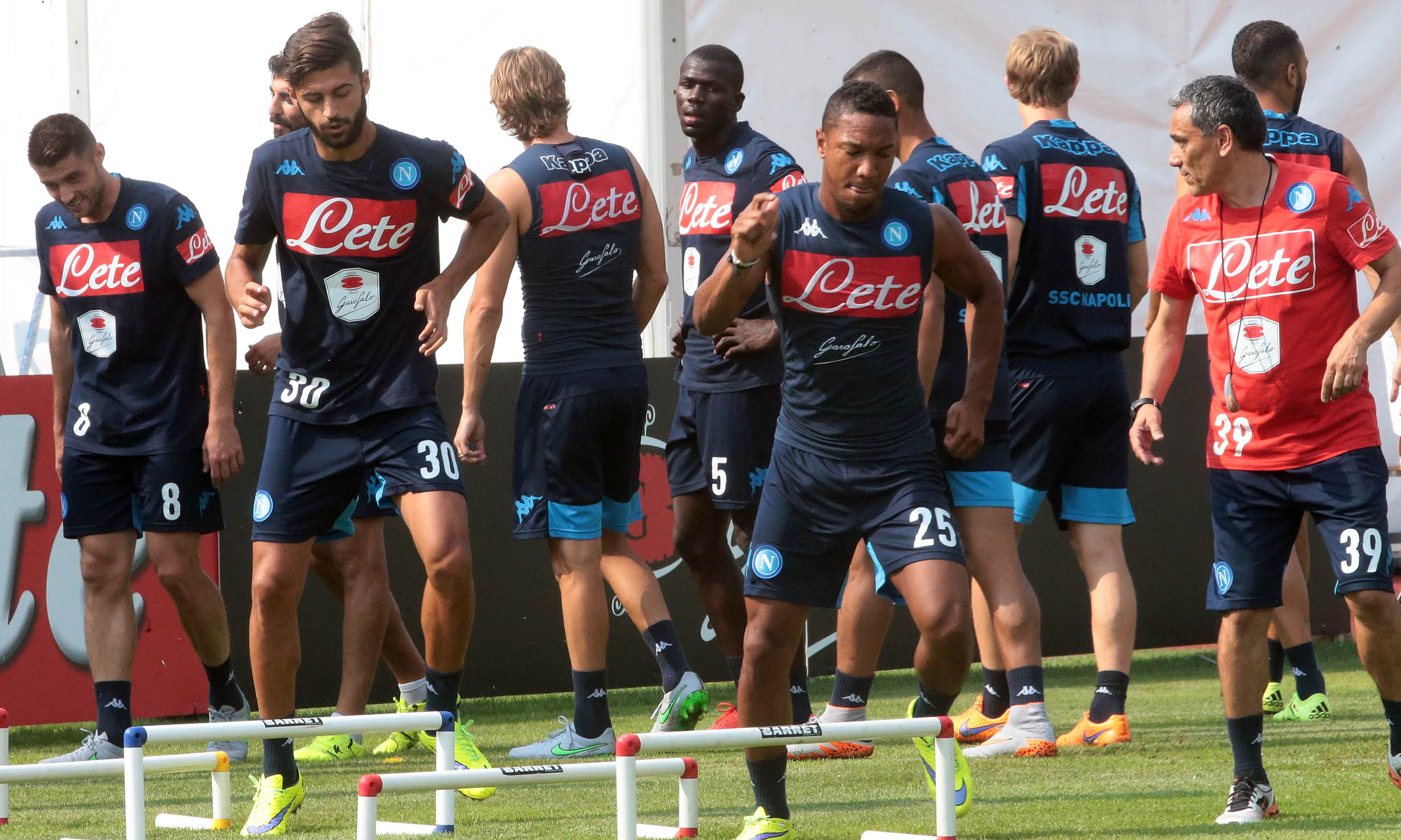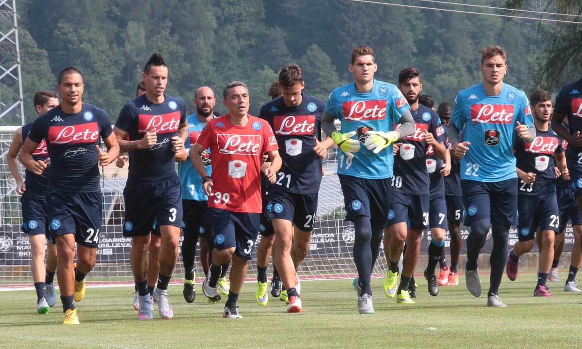 I giocatori azzurri si allenano durante il ritiro estivo a Dimaro