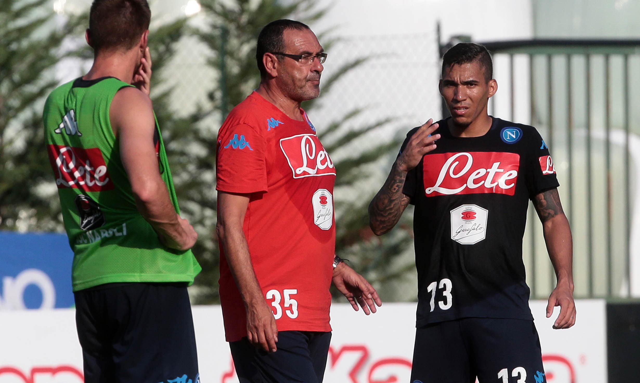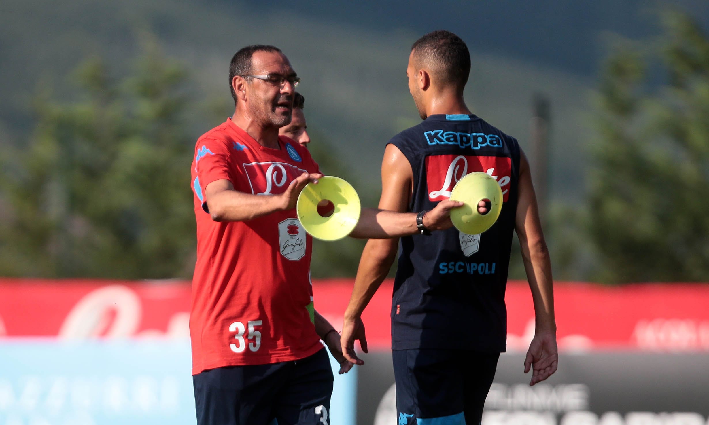 Piccoli tifosi azzurri chiedono l'autografo al nuovo tecnico prima dell'allenamento della squadra in ritiro in Trentino
