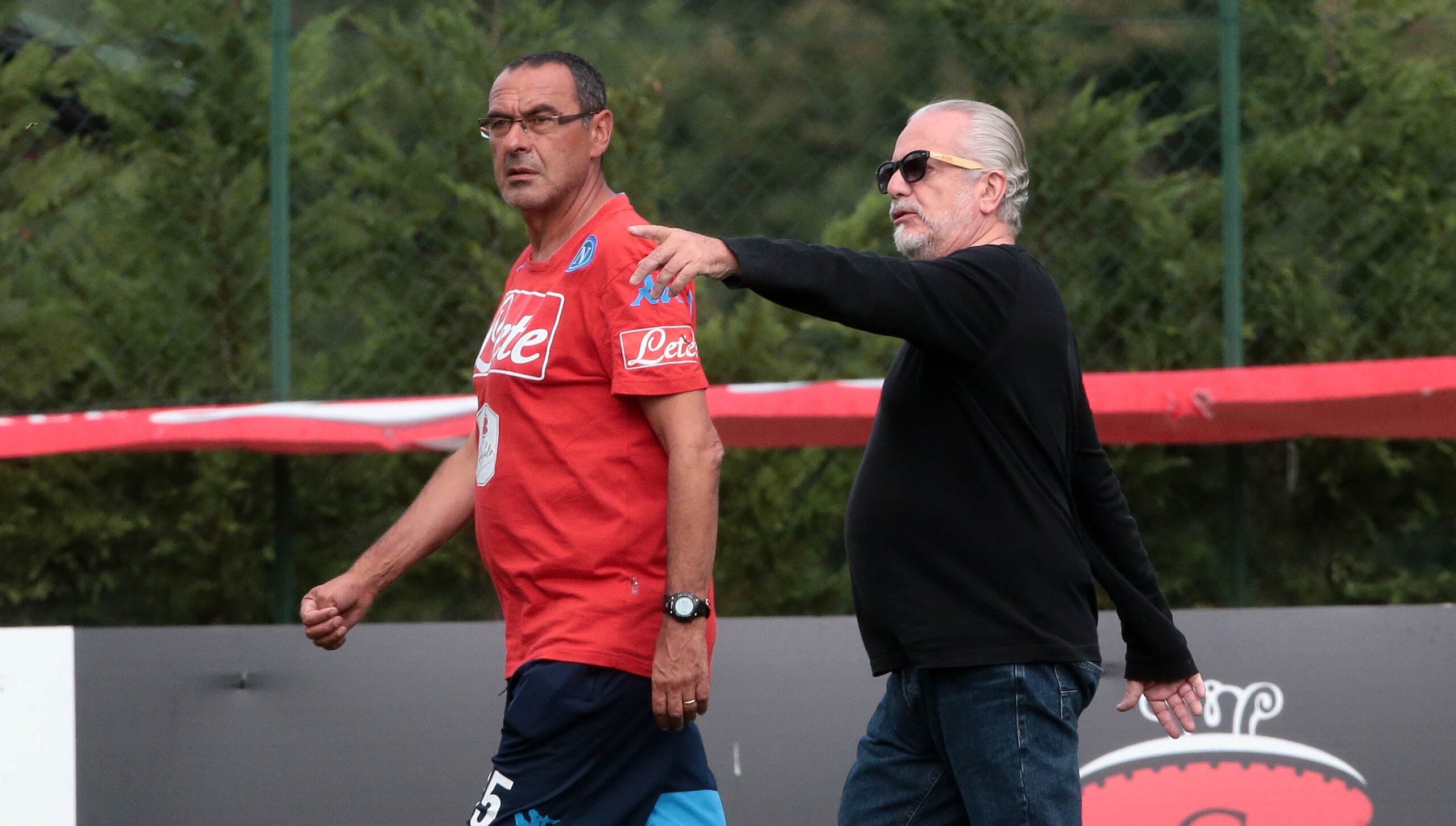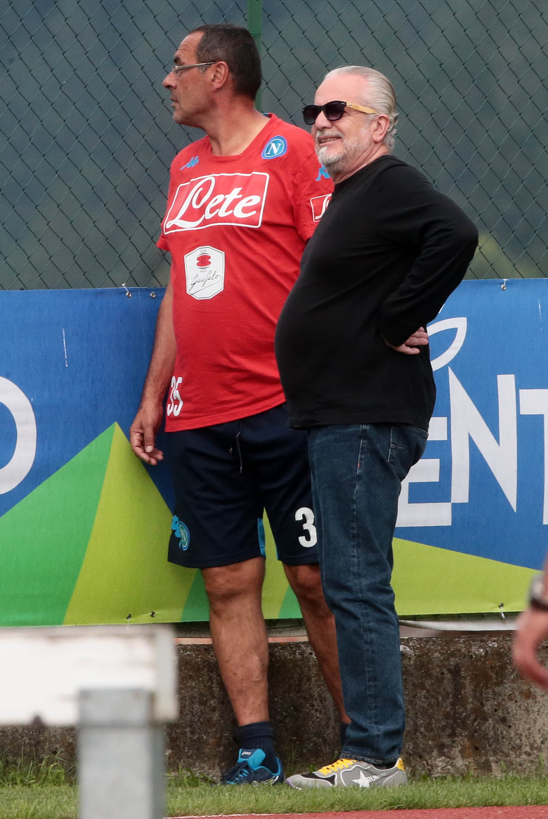 Colloquio tra il tecnico e il presidente del Napoli durante l'allenamento