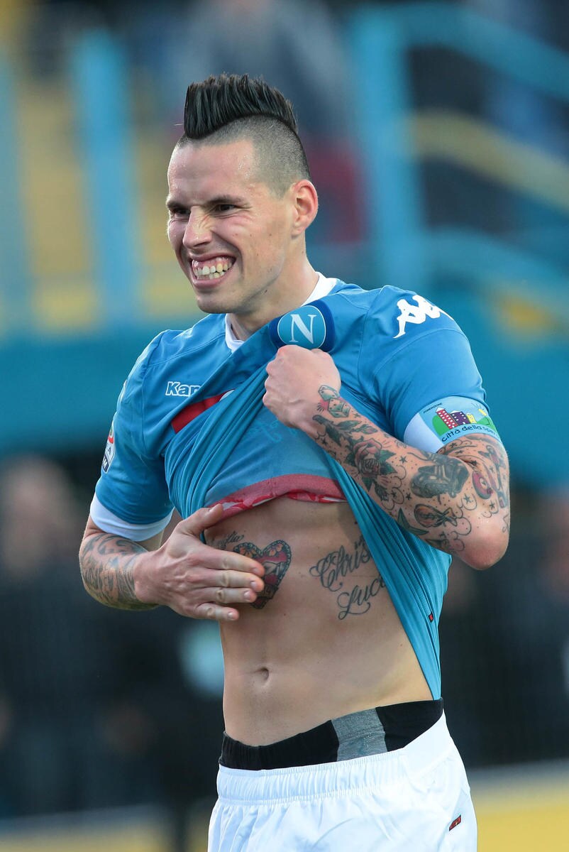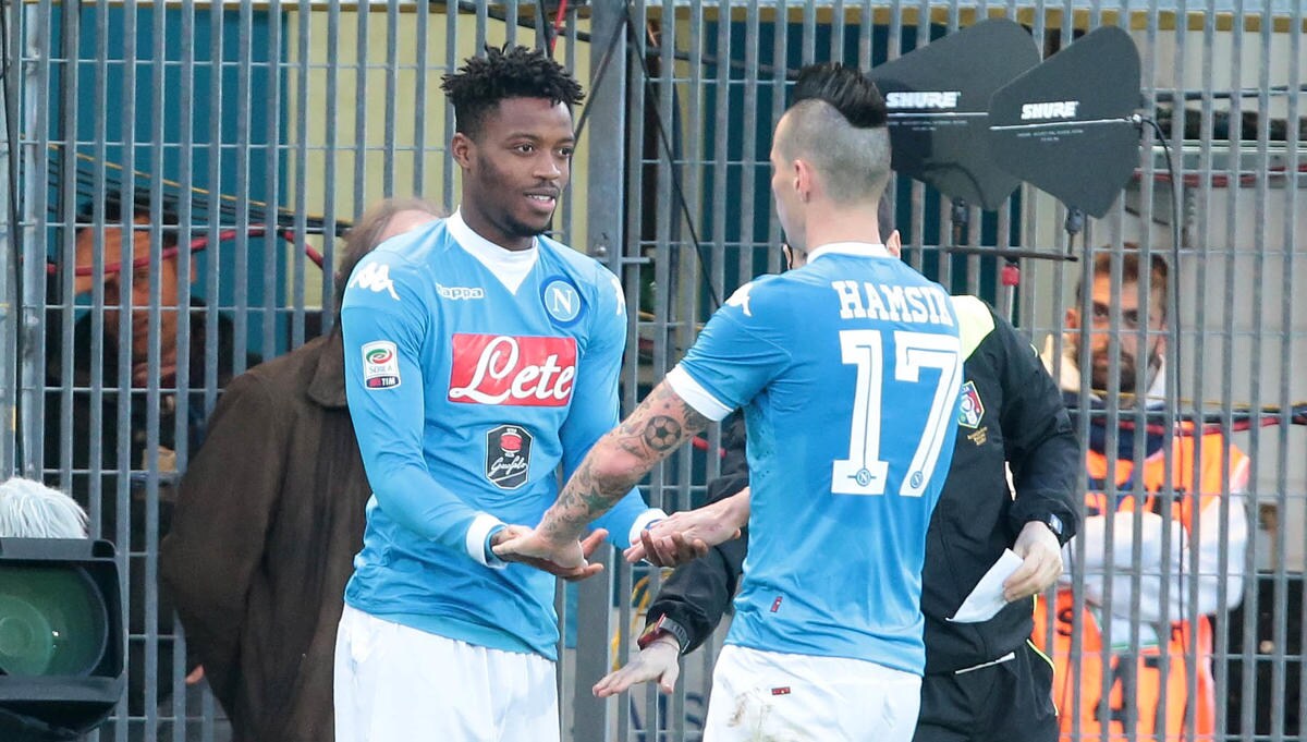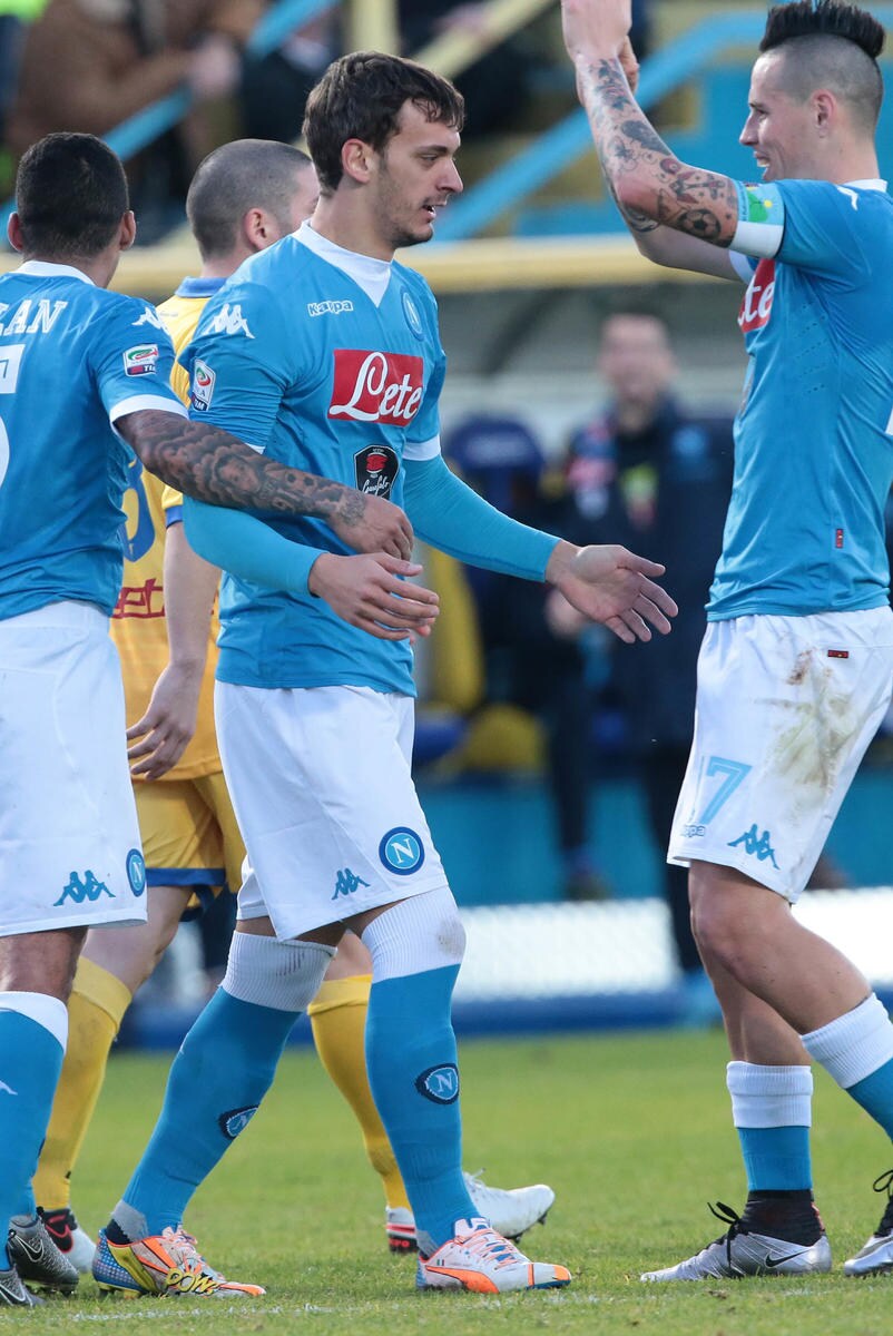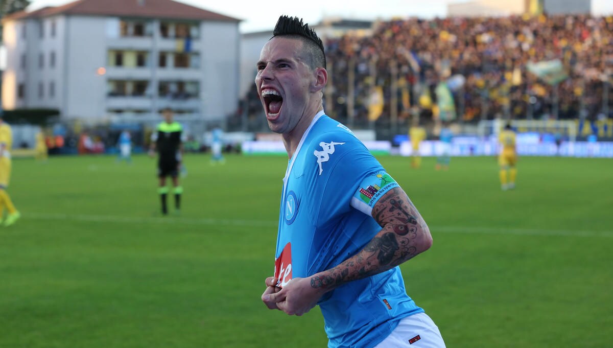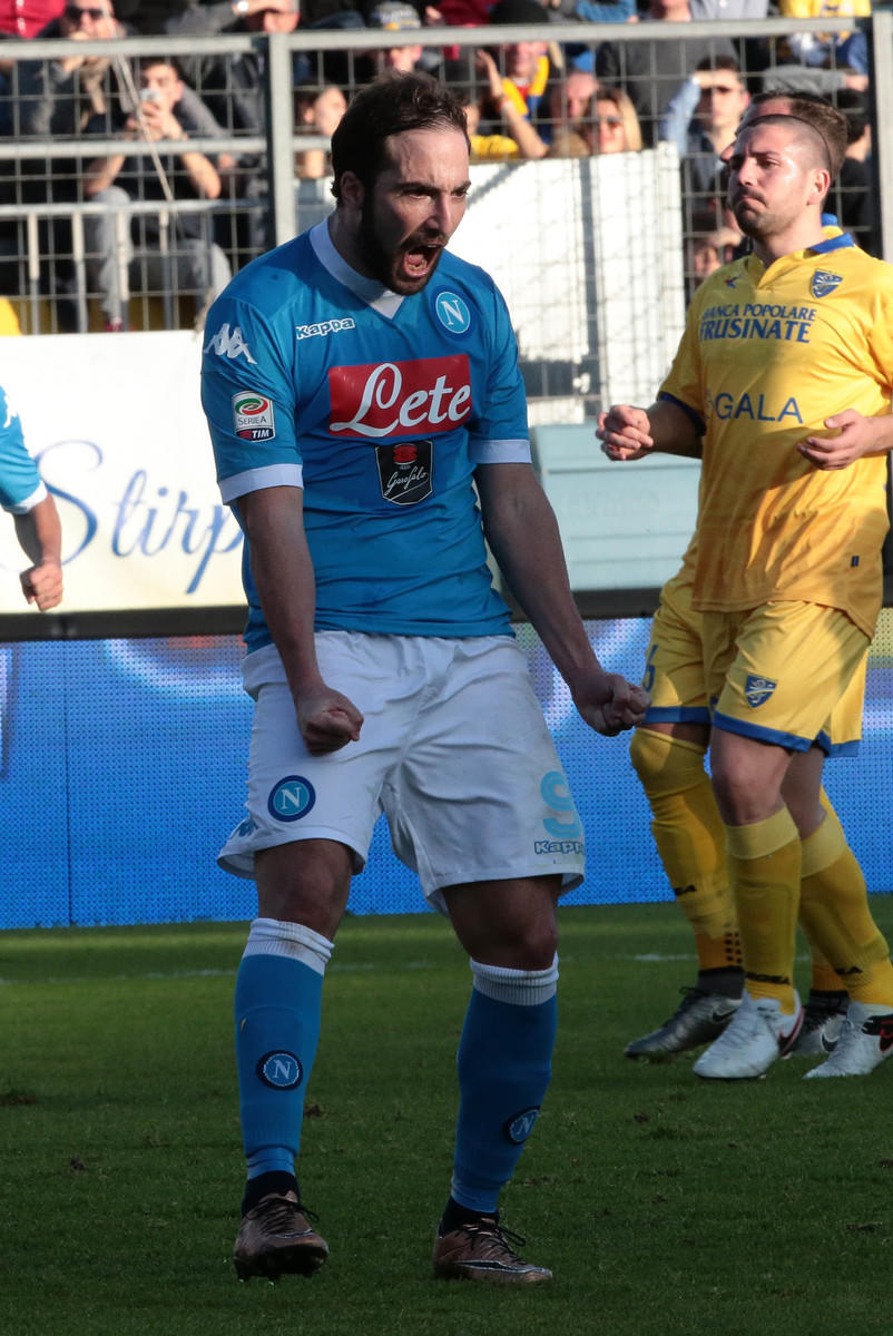 Higuain e compagni pazzi di gioia festeggiano davanti ai tifosi azzurri la vittoria contro il Frosinone e il titolo d'inverno