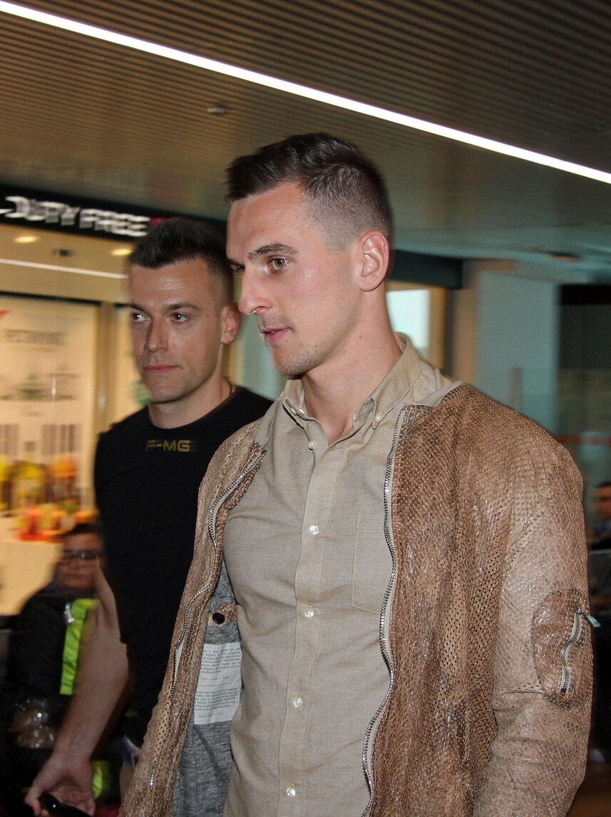 L'attaccante polacco atterra a Fiumicino dopo l'infortunio al ginocchio