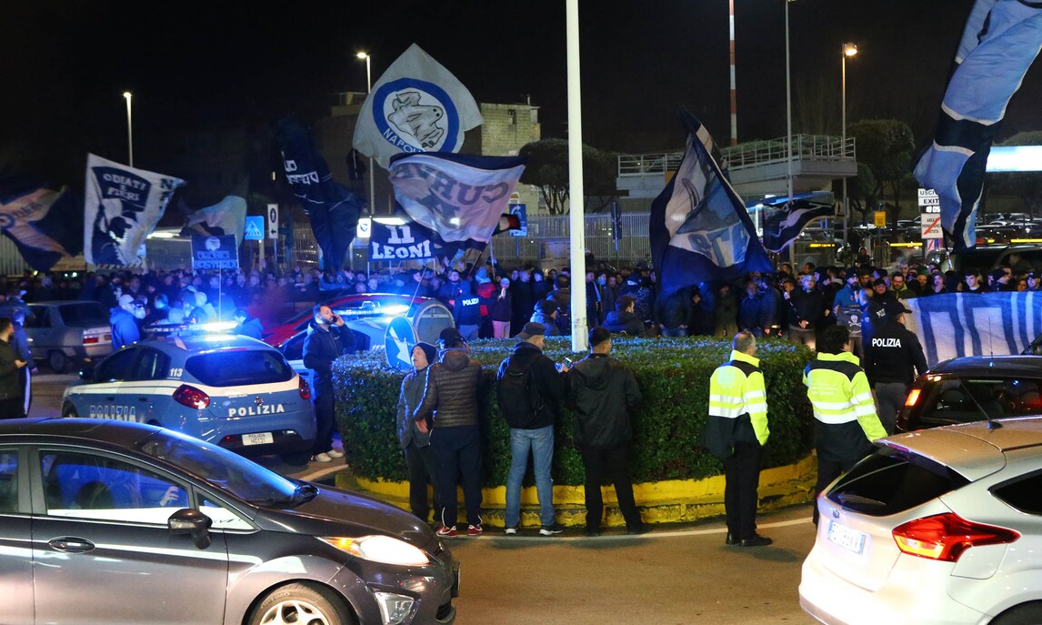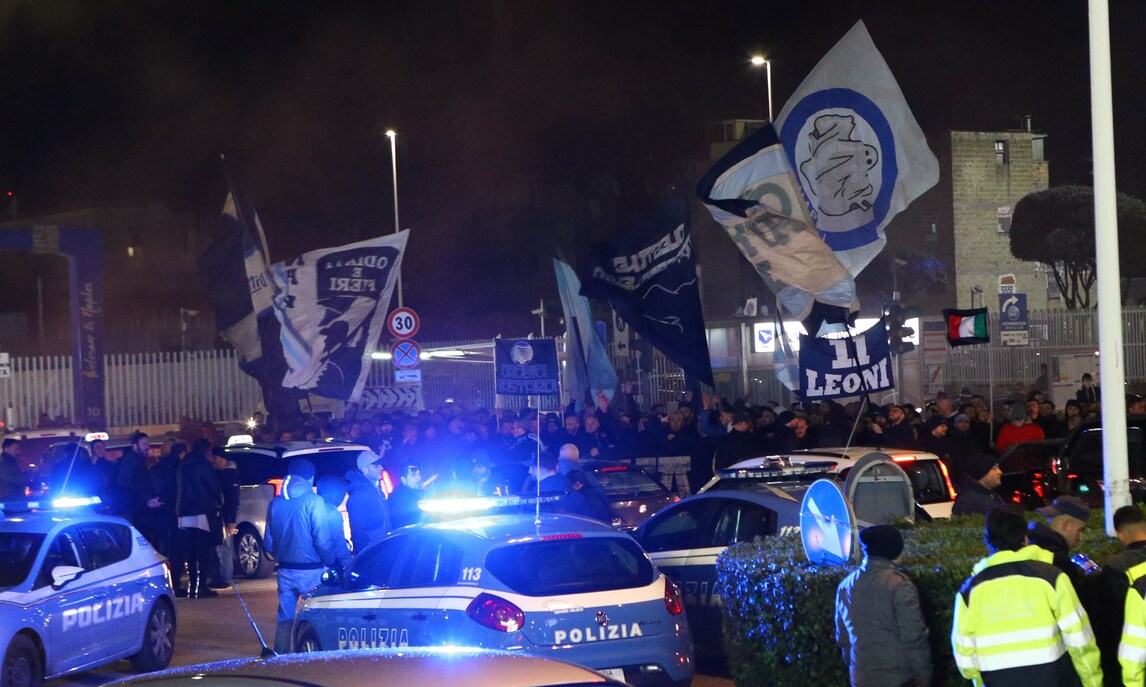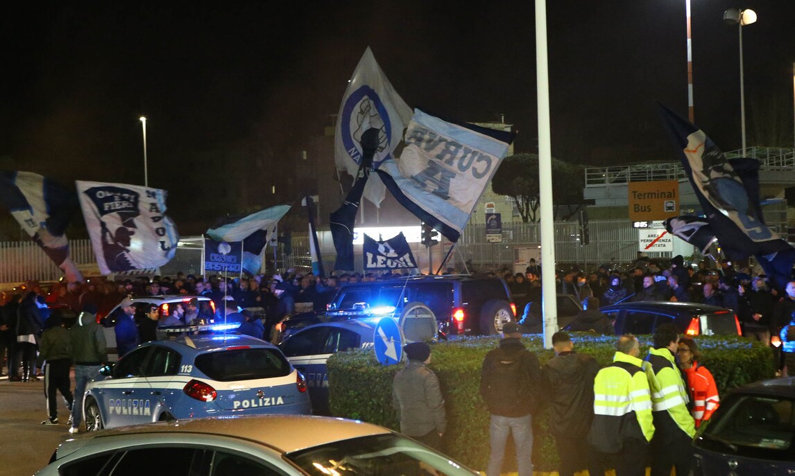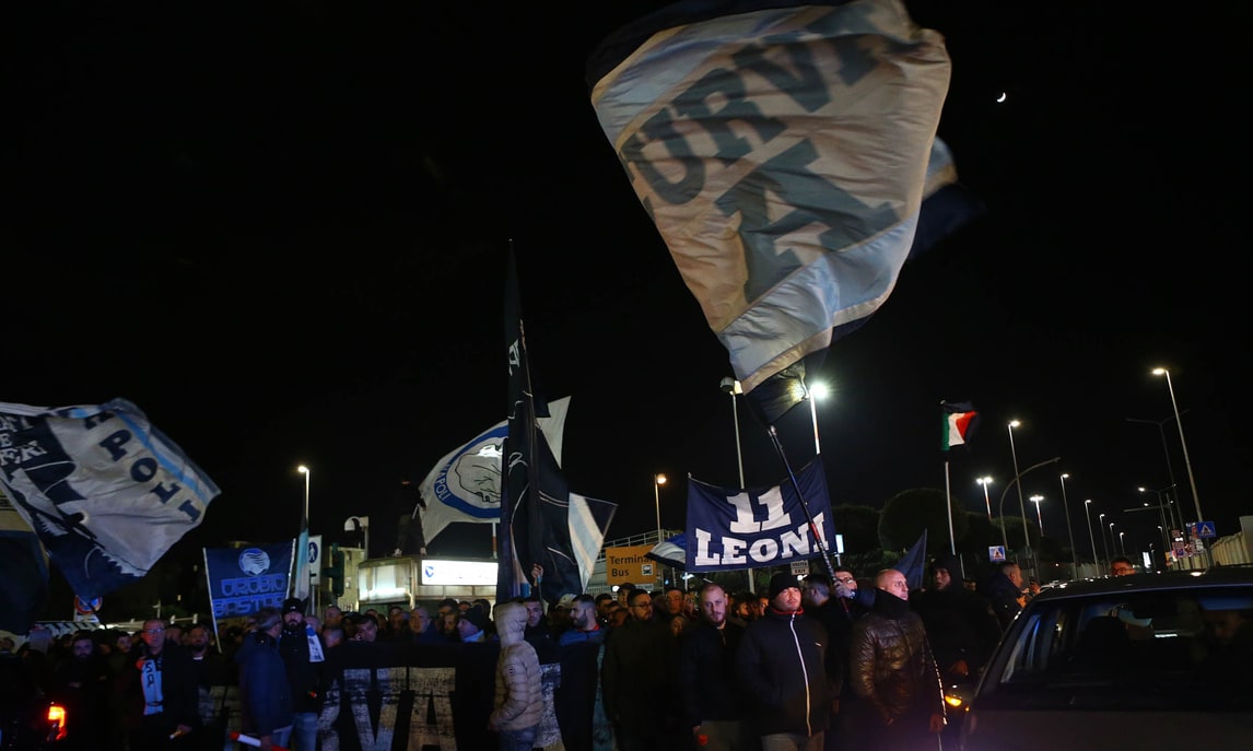 Nel pomeriggio, circa 600 tifosi all'esterno dell'aeroporto hanno atteso l'arrivo della squadra da Bergamo per festeggiare l'importante vittoria contro l'Atalanta