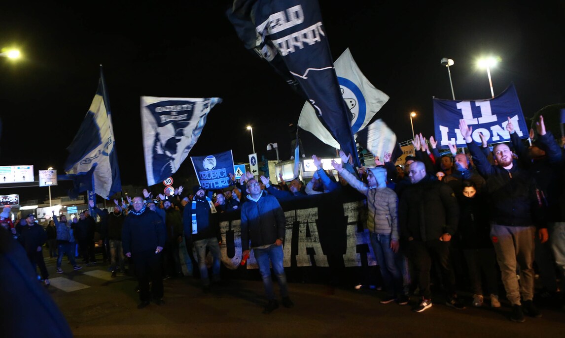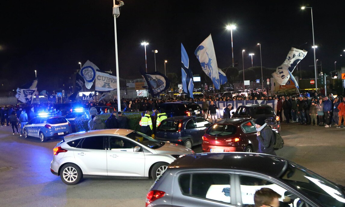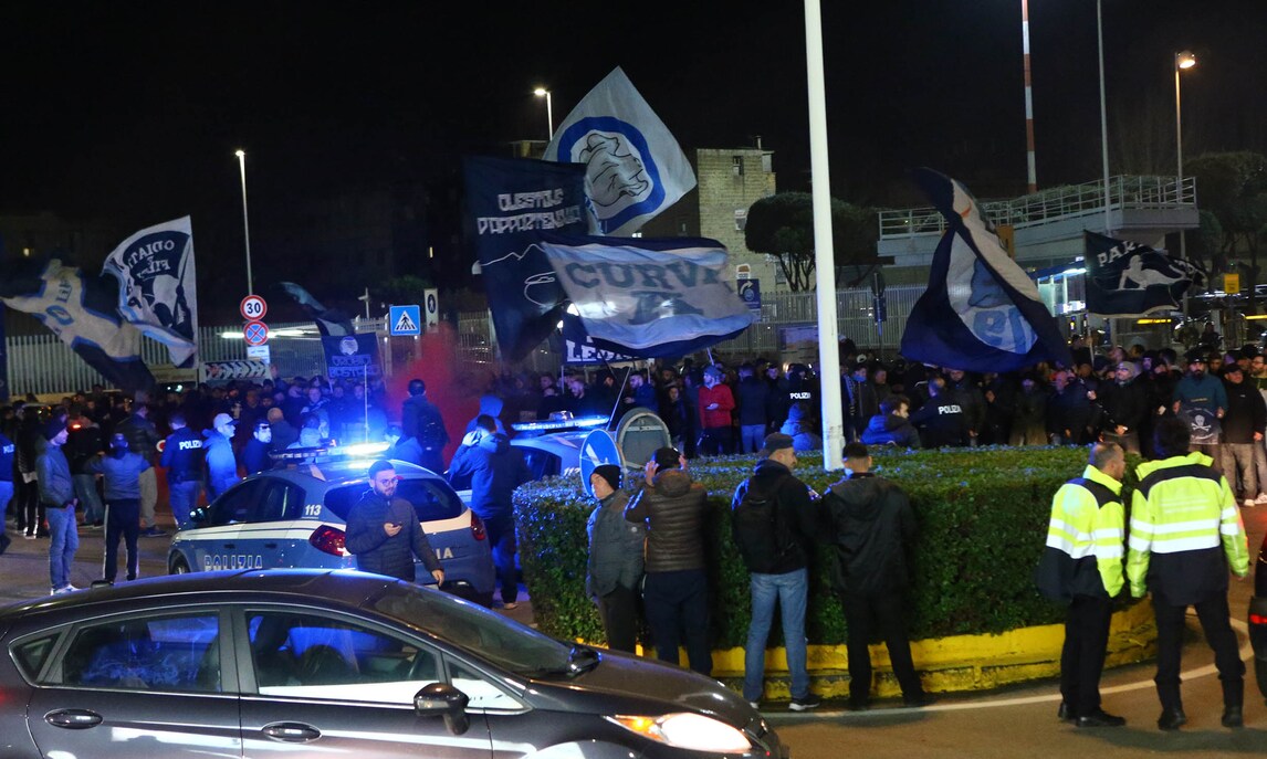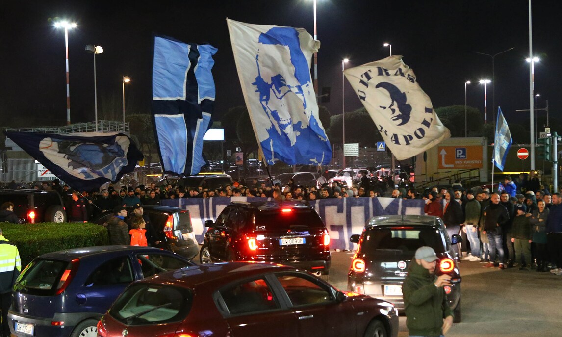 Nel pomeriggio, circa 600 tifosi all'esterno dell'aeroporto hanno atteso l'arrivo della squadra da Bergamo per festeggiare l'importante vittoria contro l'Atalanta