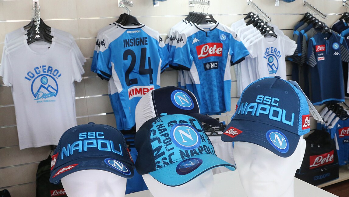 Napoli, la maglia di Insigne esposta nello store di Dimaro