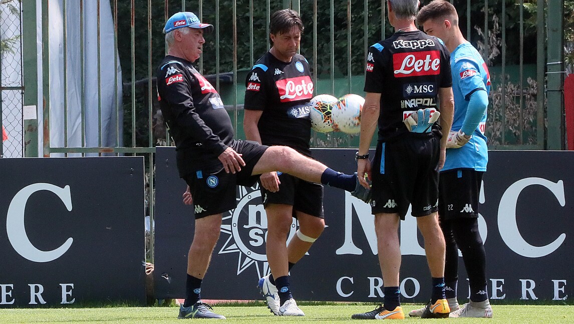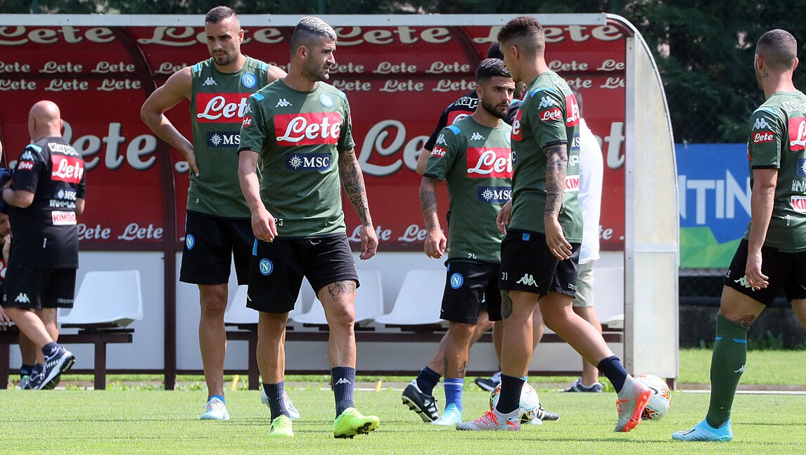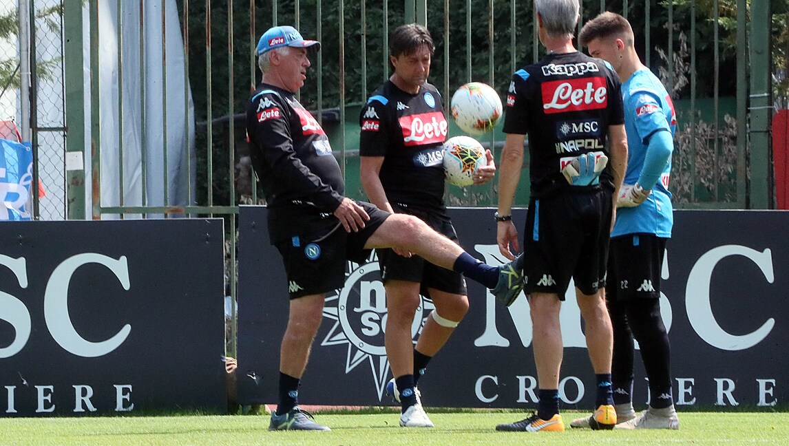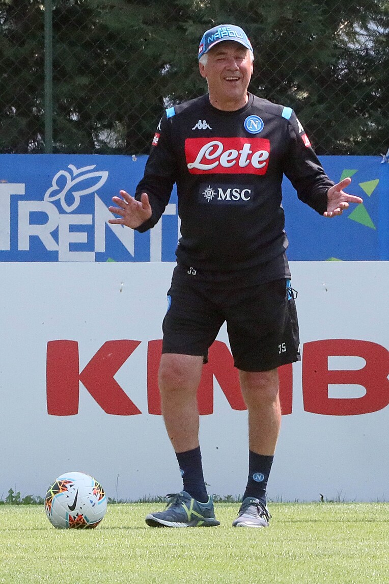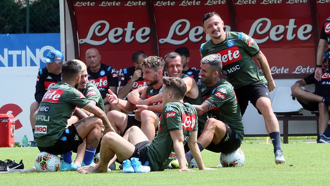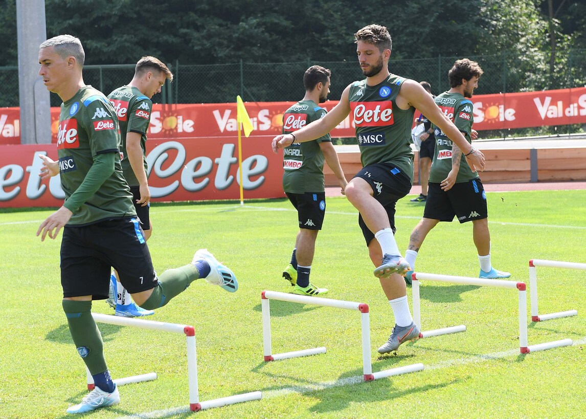 Ancelotti si "avvinghia" a Mario Rui, poi tutti su Mertens. Sorrisi e clima sereno nel ritiro in Trentino Alto Adige