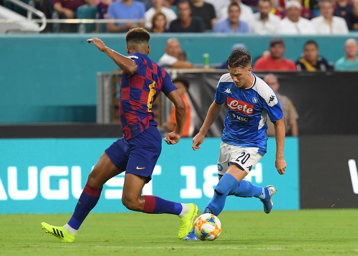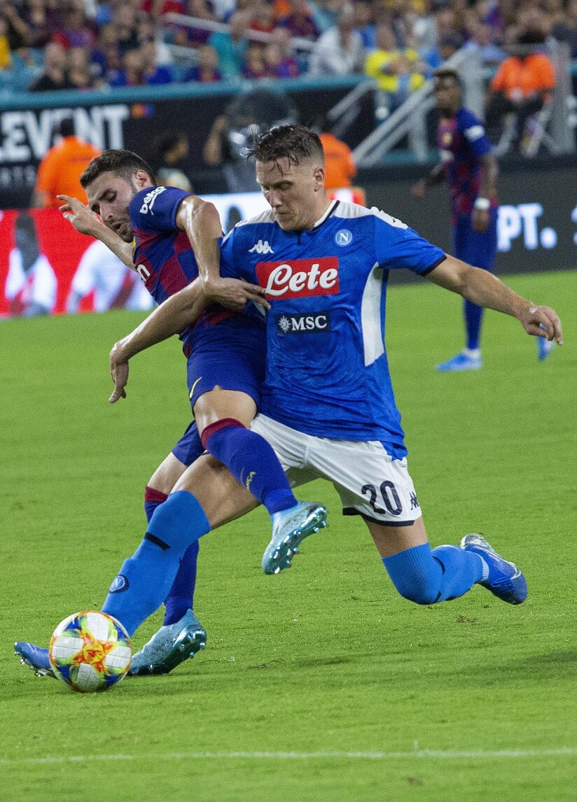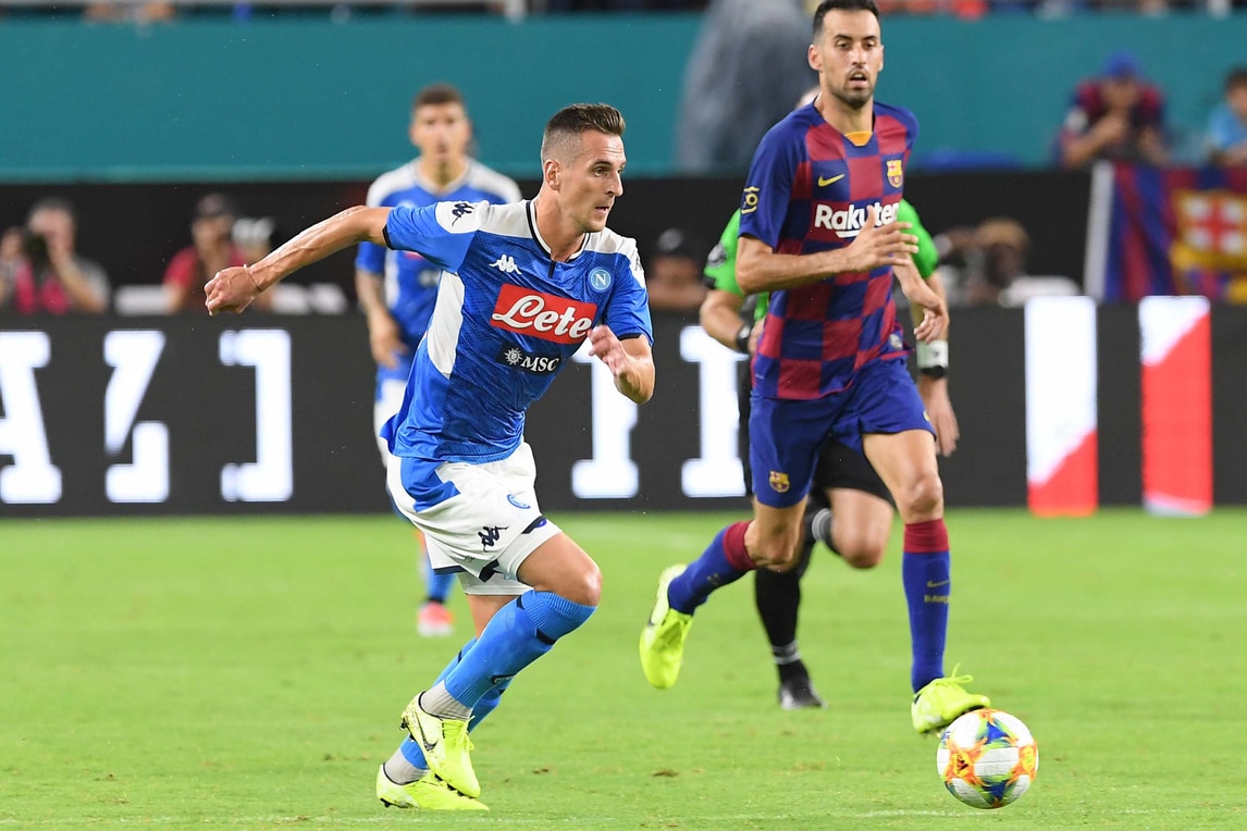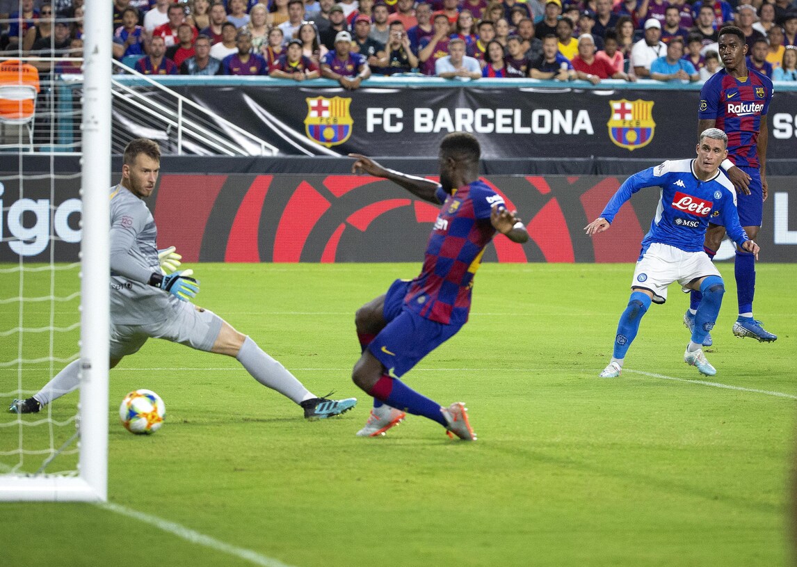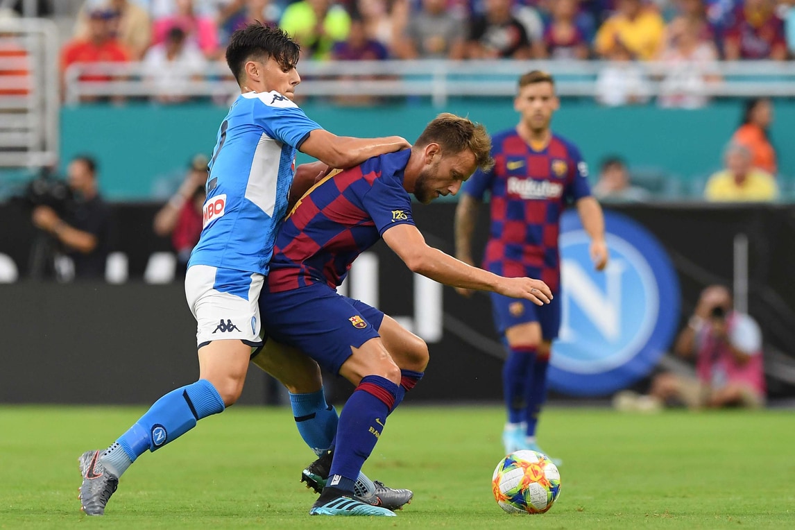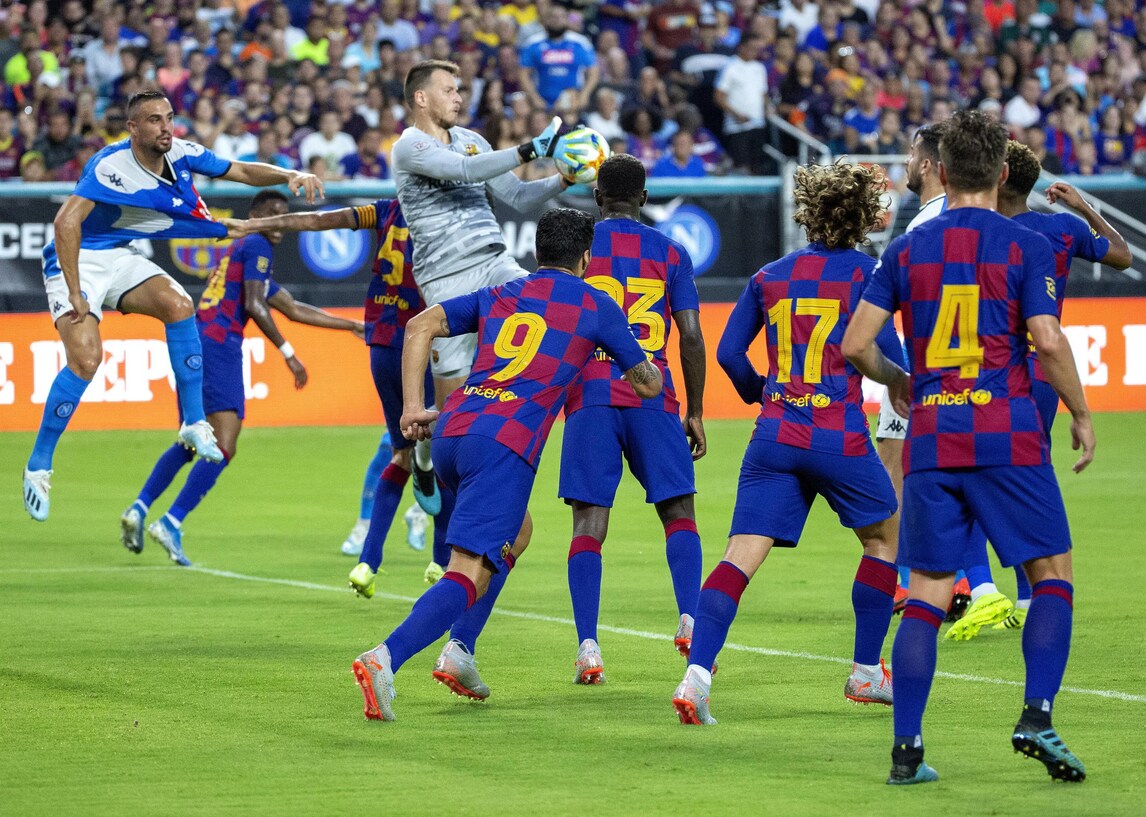 Le foto della sfida giocata all'Hard Rock Stadium e vinta 2-1 dai blaugrana con gol di Busquets e Rakitic. Inutile la rete azzurra propiziata da Callejon (autogol di Umtiti)