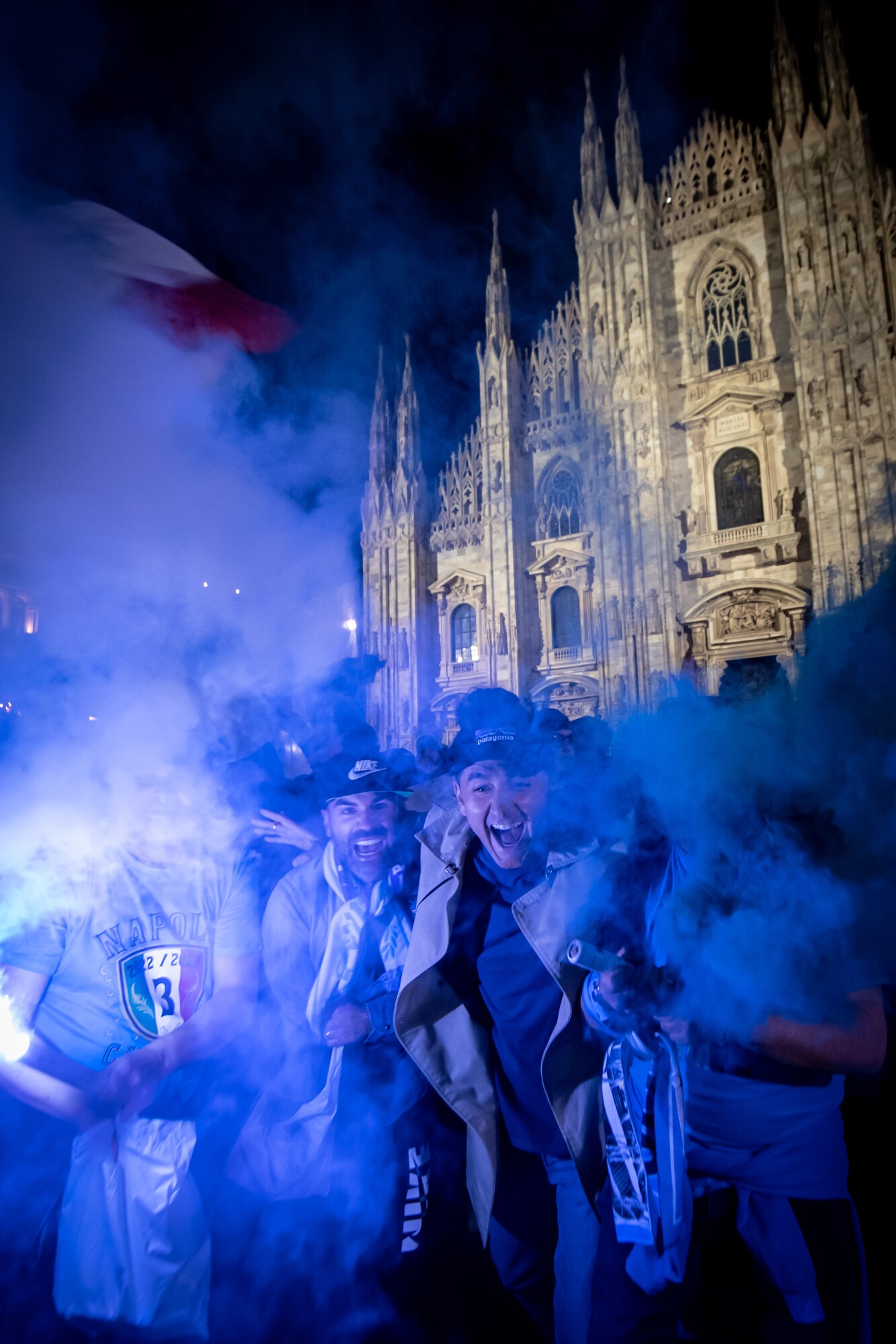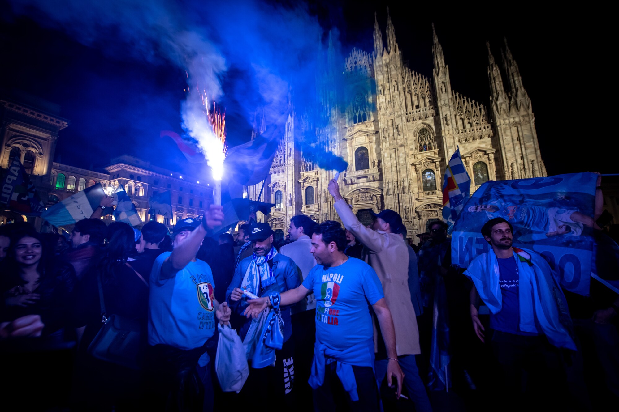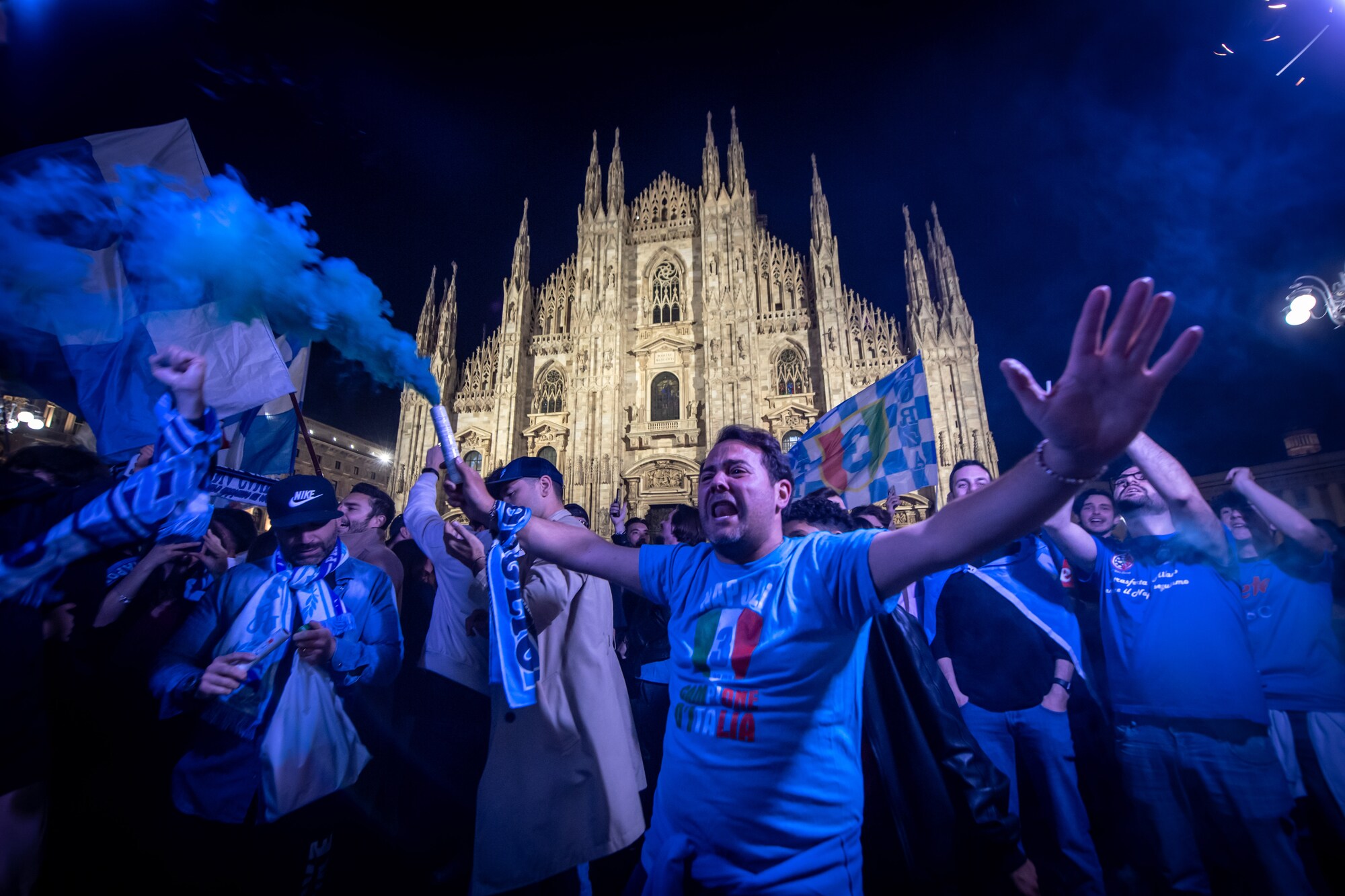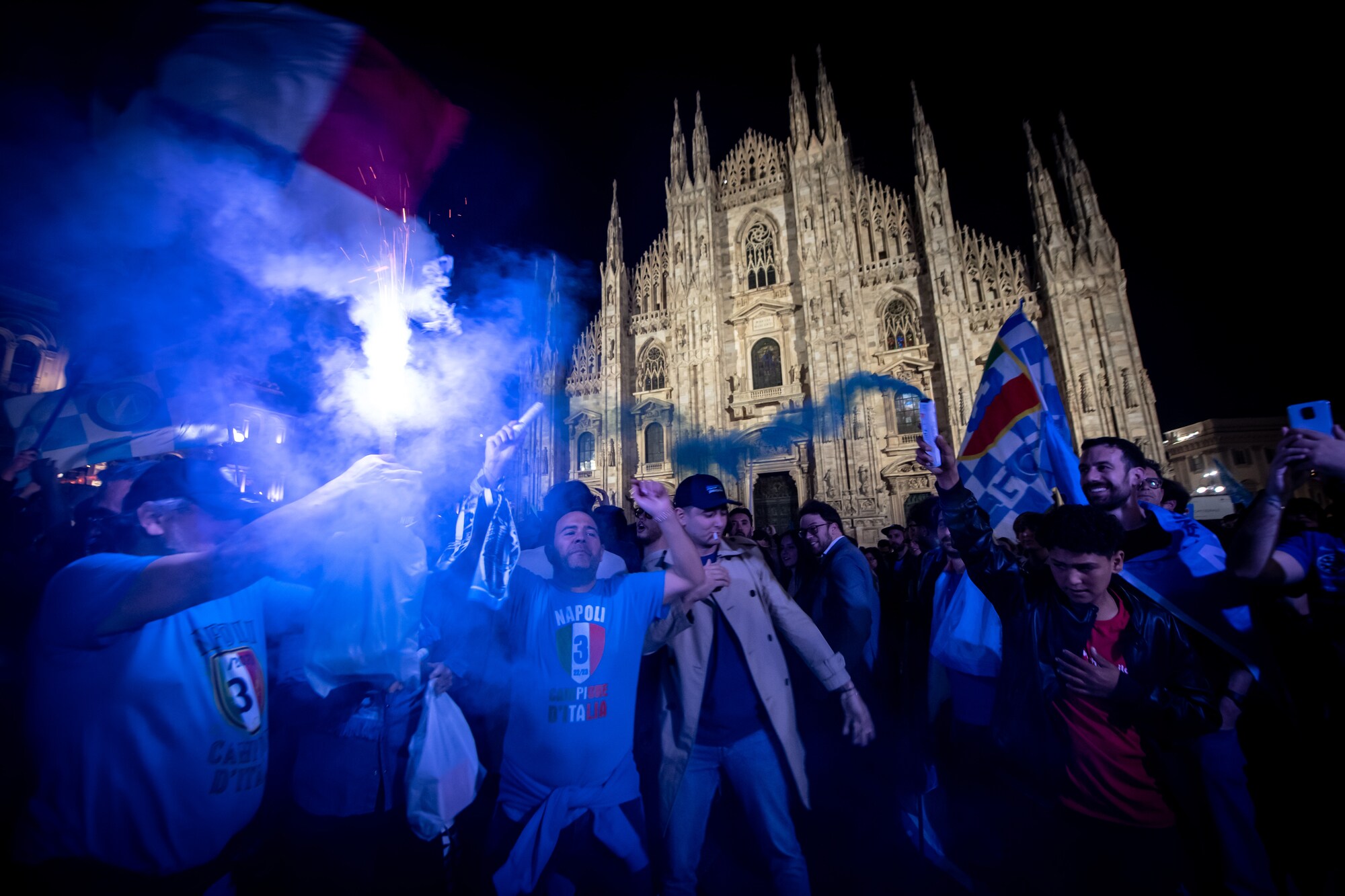 I tifosi azzurri di tutta Italia stanno festeggiando per il titolo e Piazza Duomo è stata invasa dai supporters della squadra di Spalletti