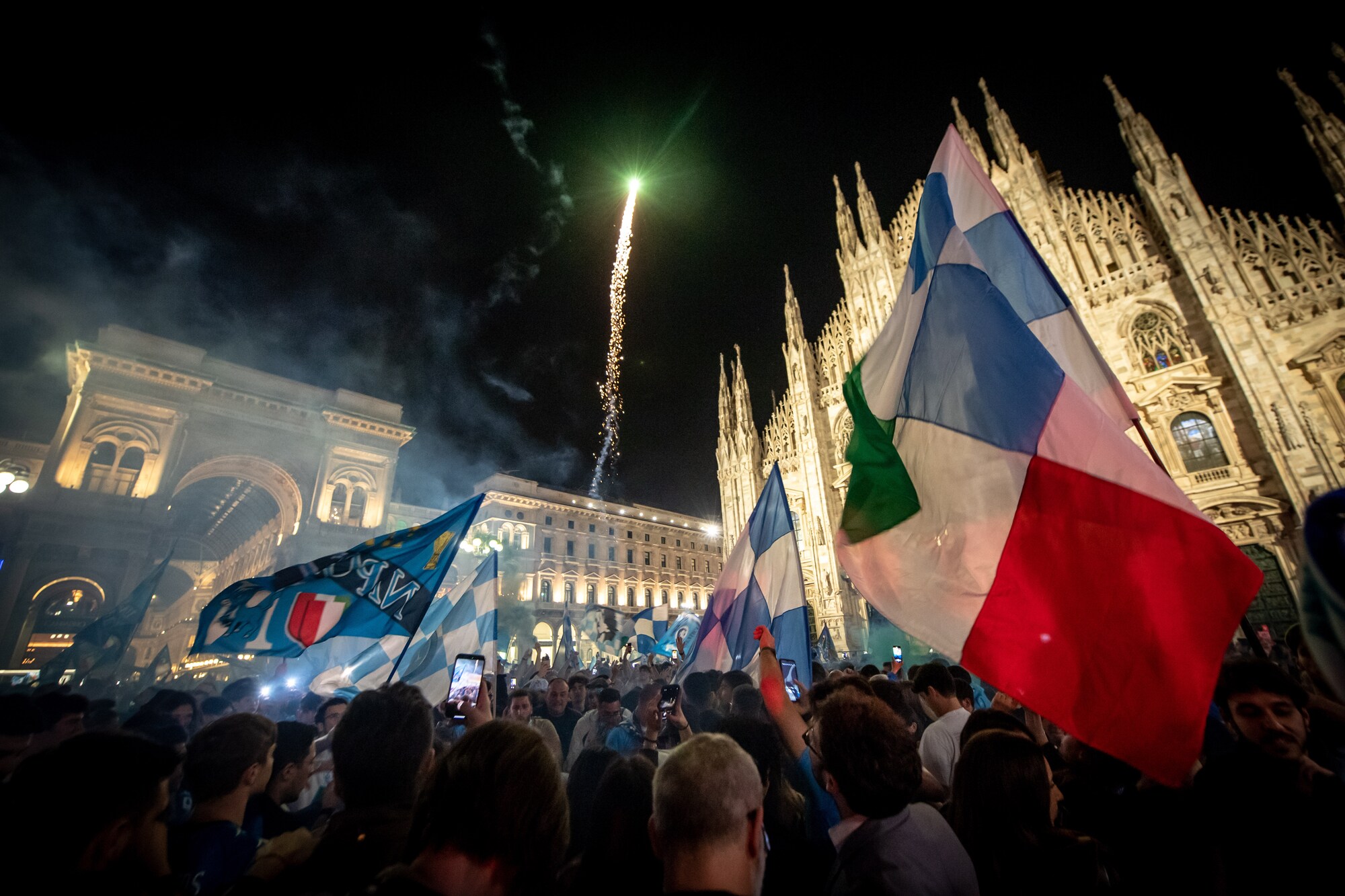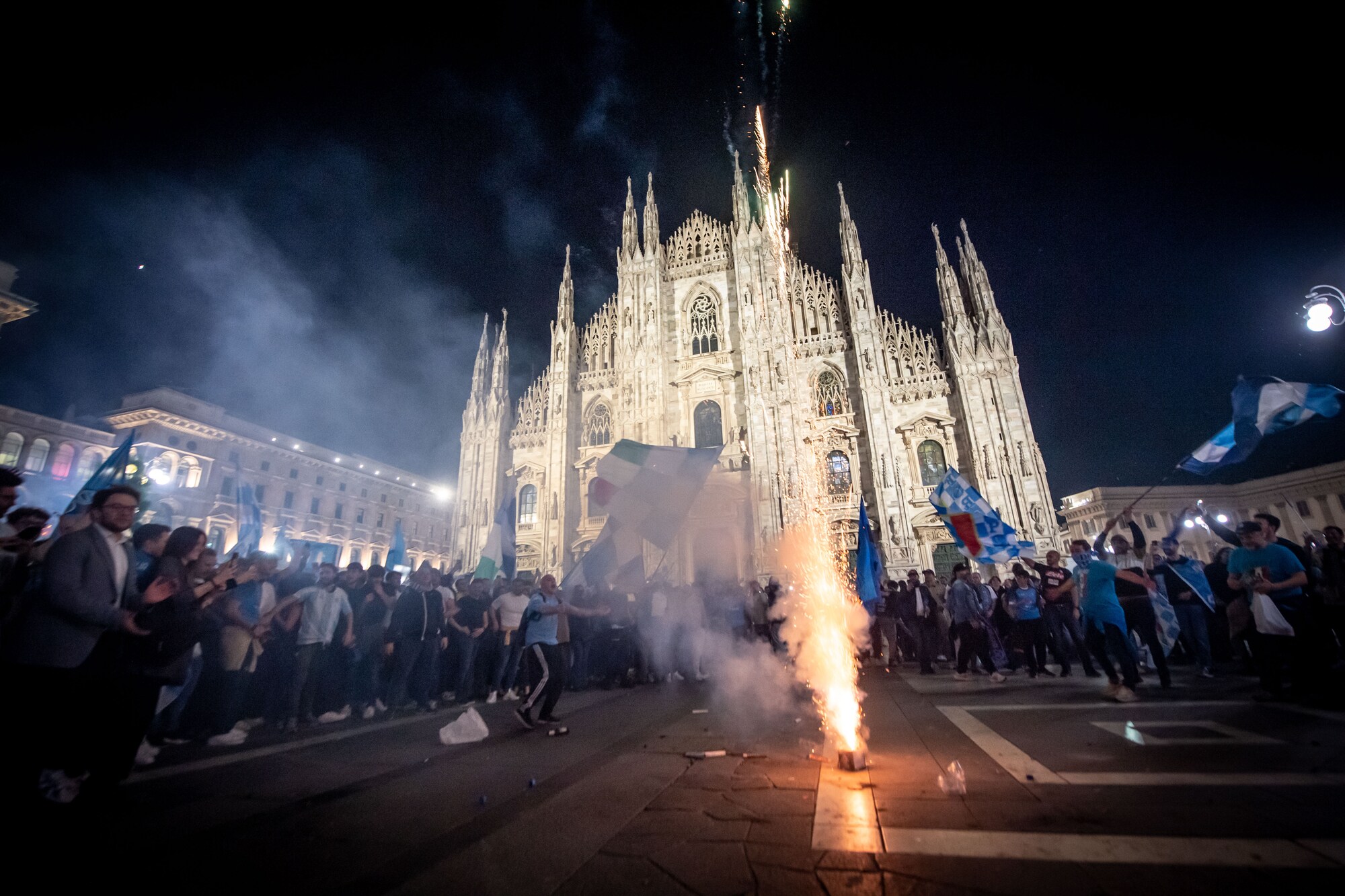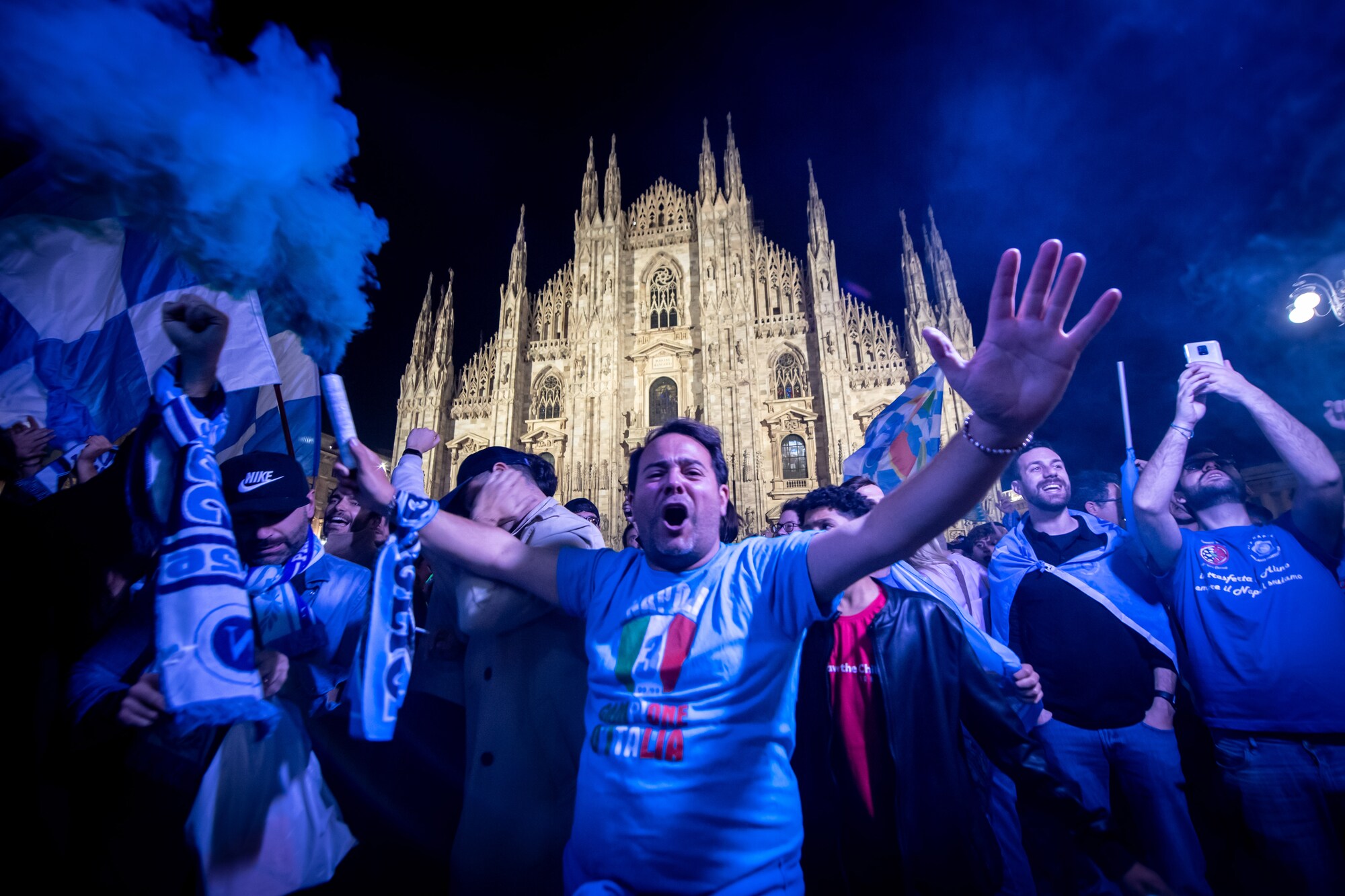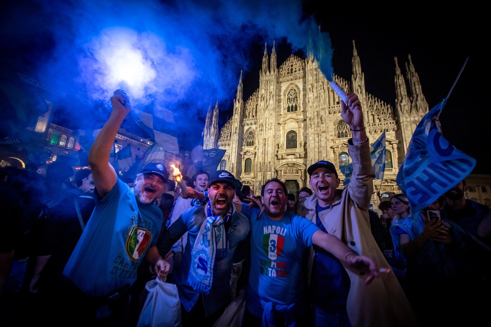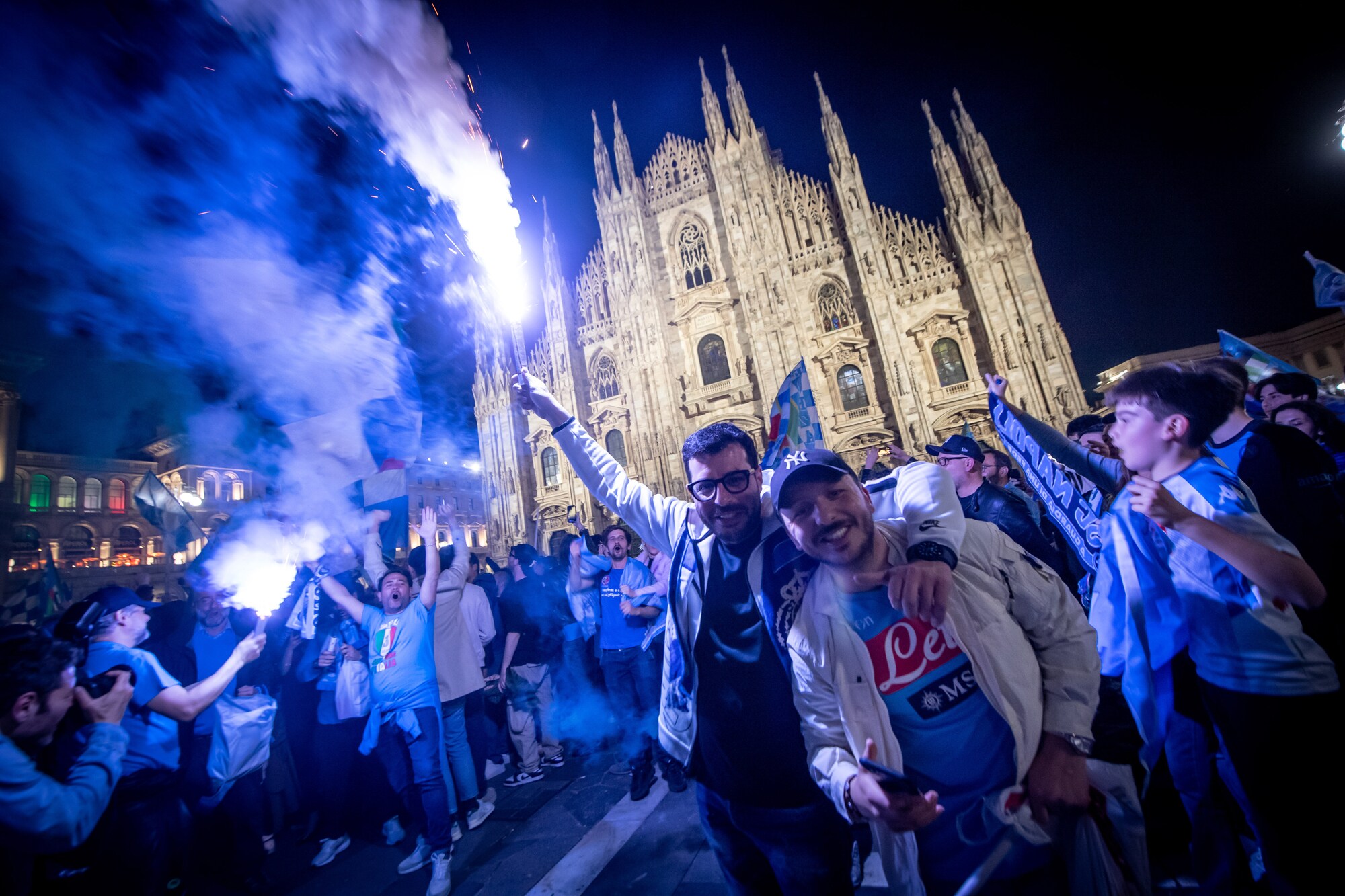 I tifosi azzurri di tutta Italia stanno festeggiando per il titolo e Piazza Duomo è stata invasa dai supporters della squadra di Spalletti