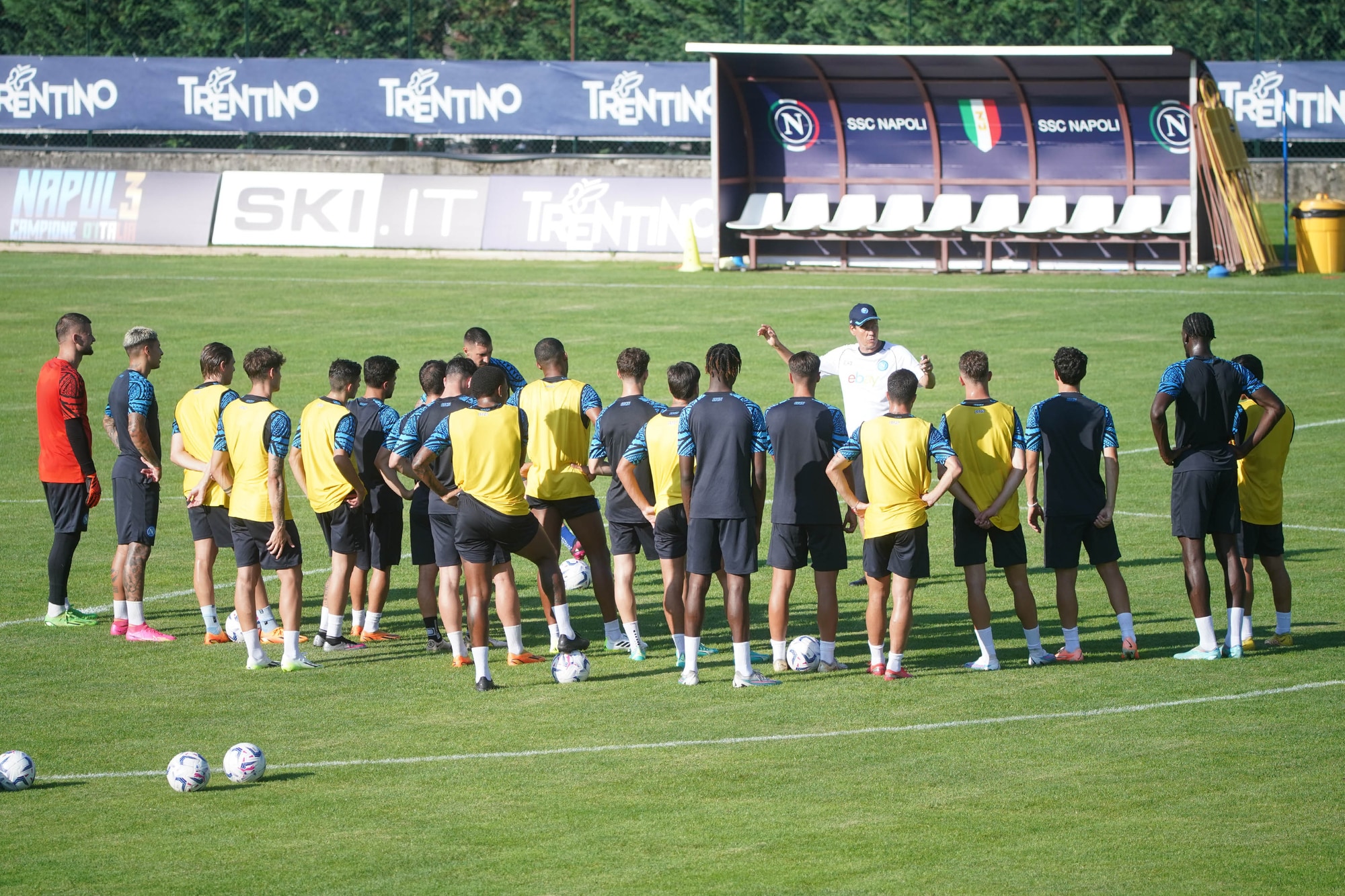 Continua la preparazione estiva per gli azzurri a Dimaro tra le Dolomiti della Val di Sole. La settimana inizia con l'arrivo di Simeone e con due lavori differenziati per Lozano e Anguissa, tra palestra e campo. Rudi Garcia questo pomeriggio ha spinto i suoi ragazzi verso un lavoro tattico finalizzato al tiro in porta