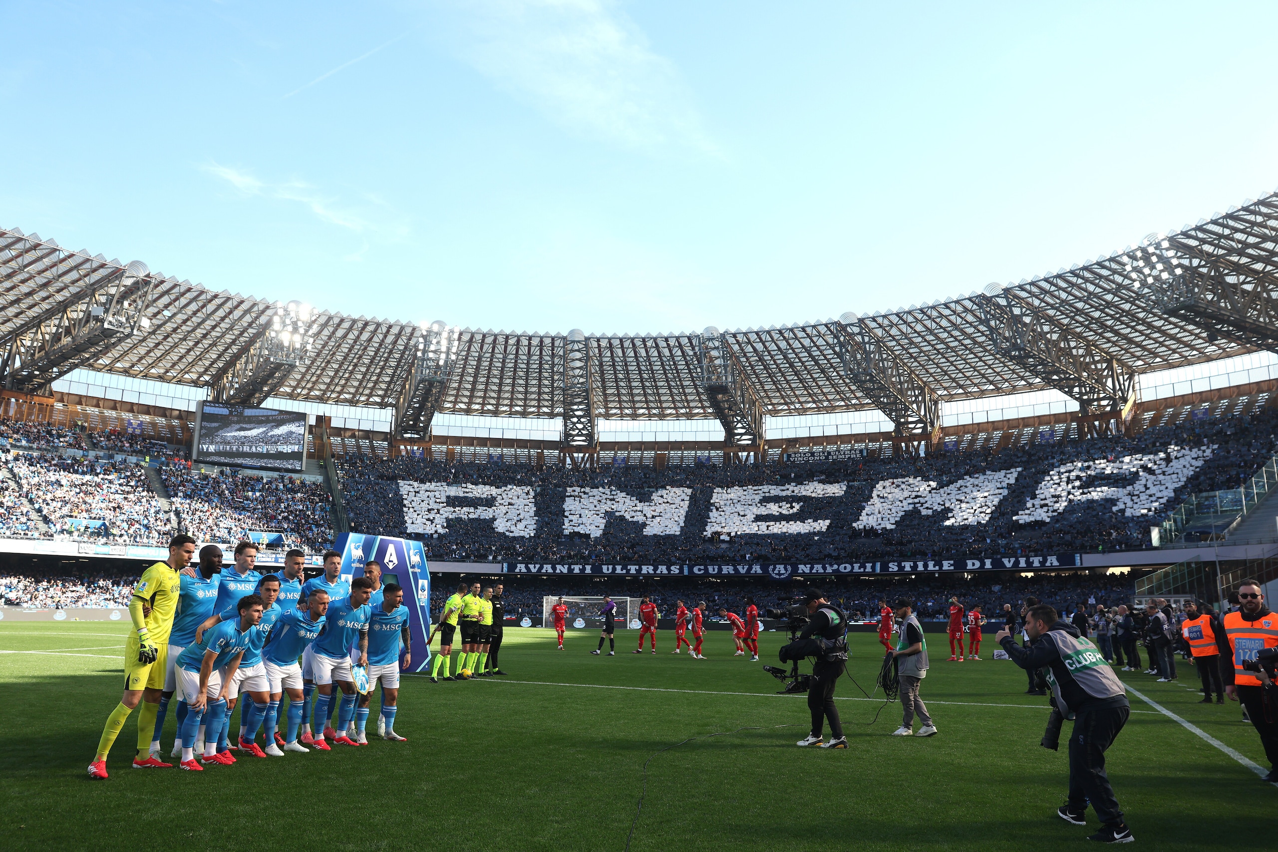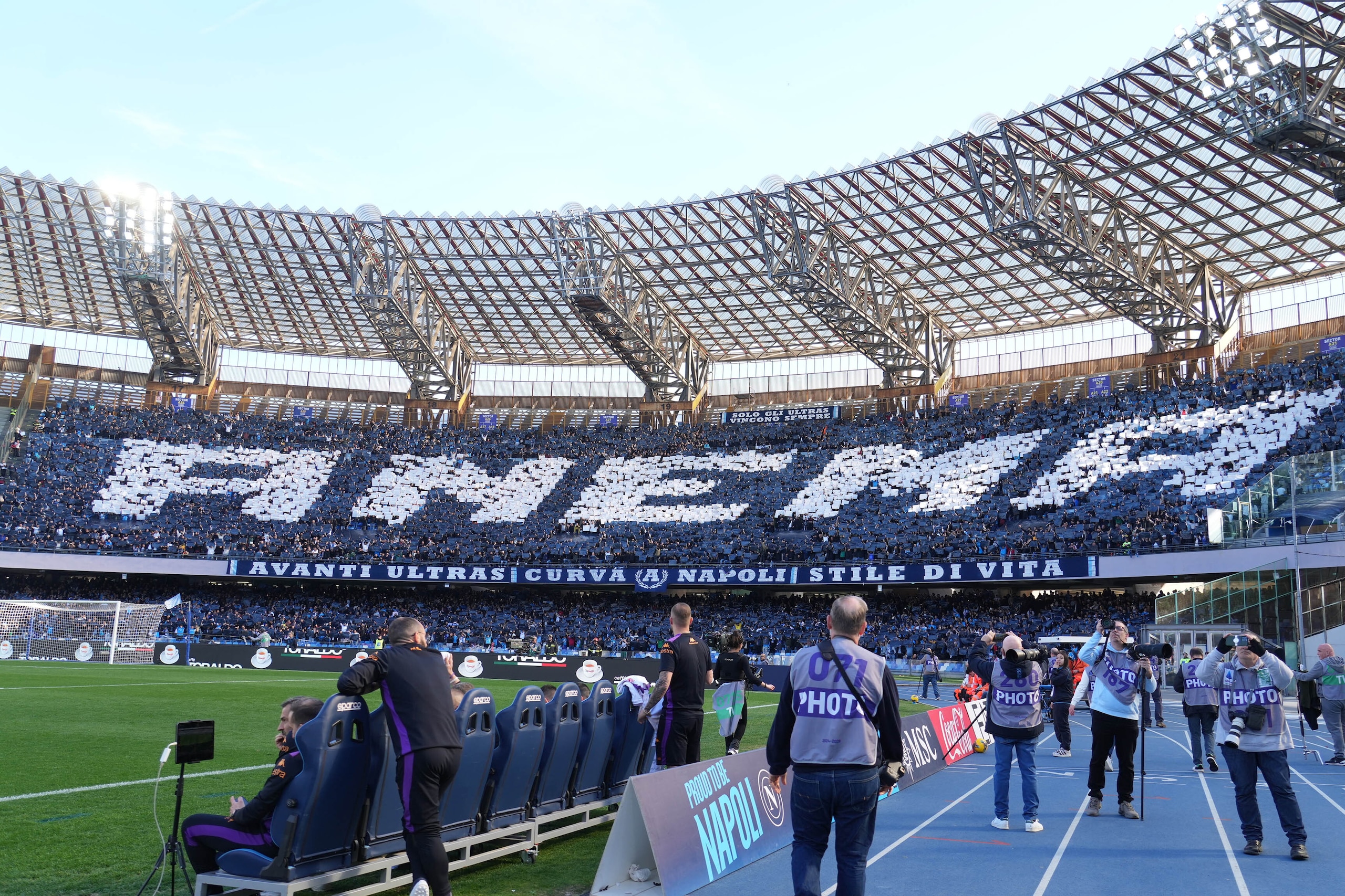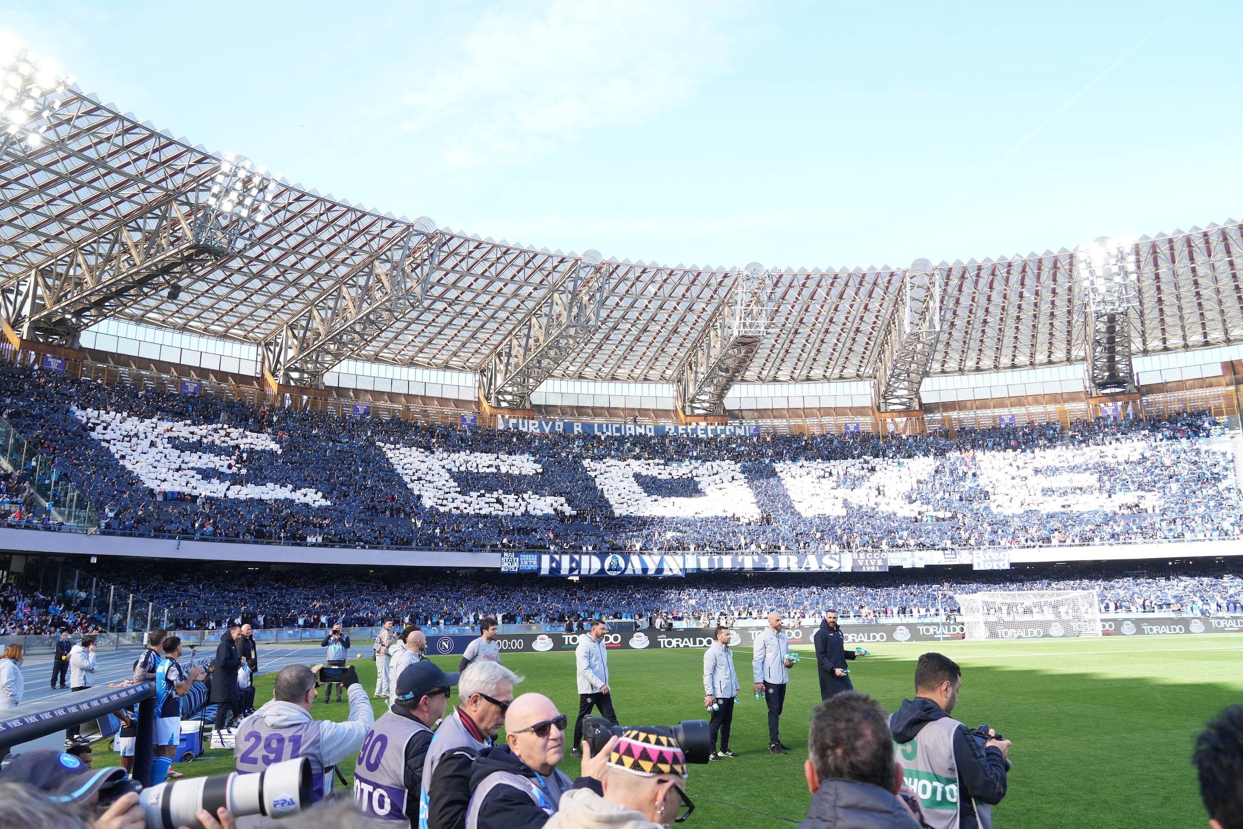 Spettacolare scenografia allestita dai sostenitori azzurri nelle due curve dello stadio in occasione della sfida valida per la 28ª giornata di Serie A: le immagini