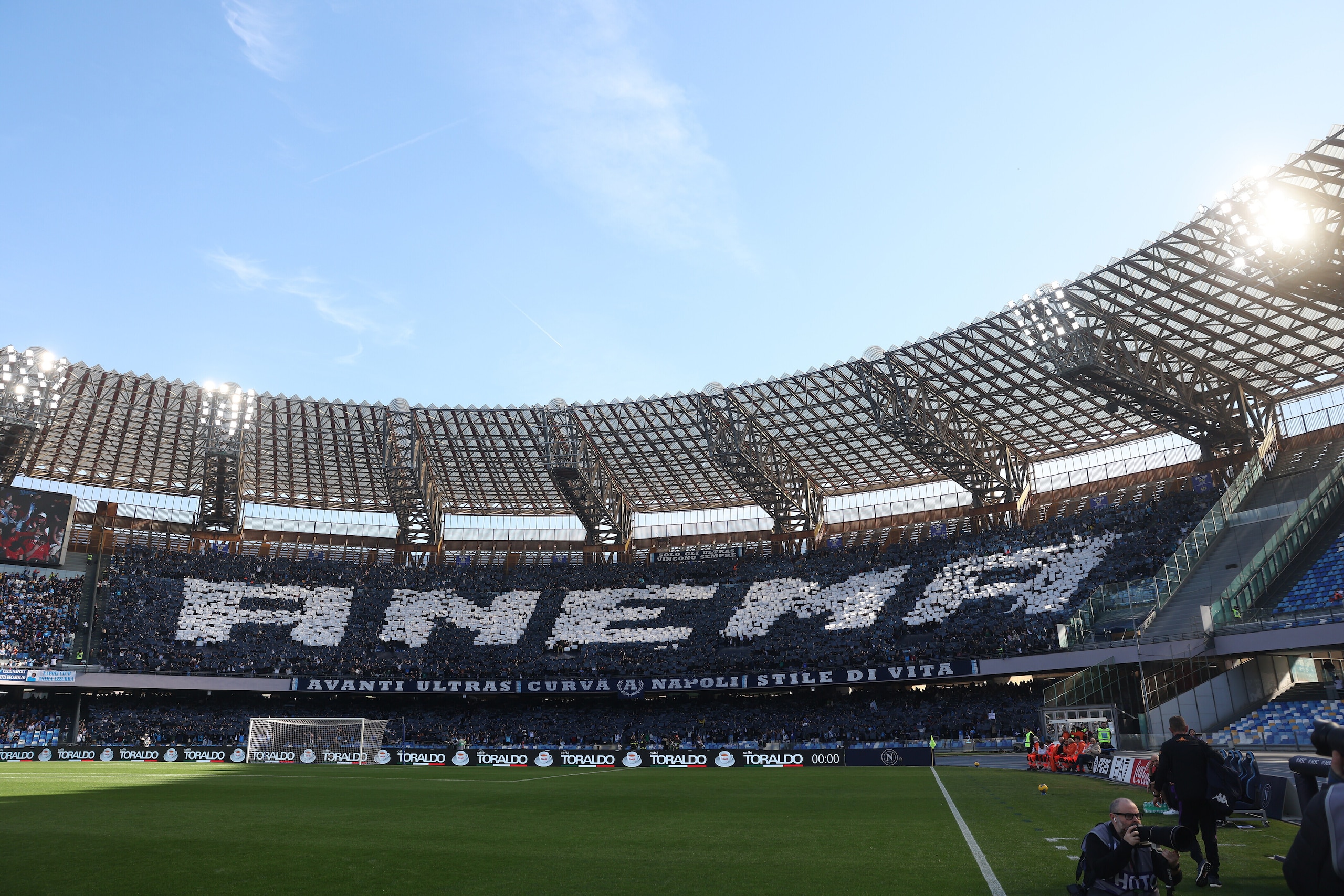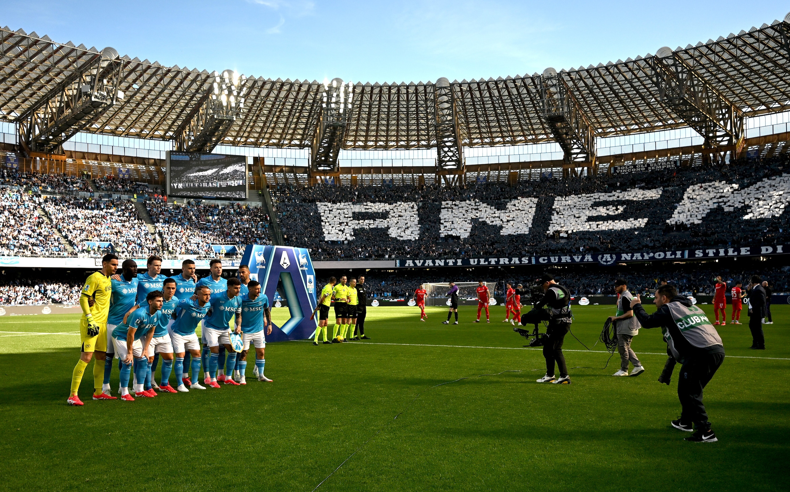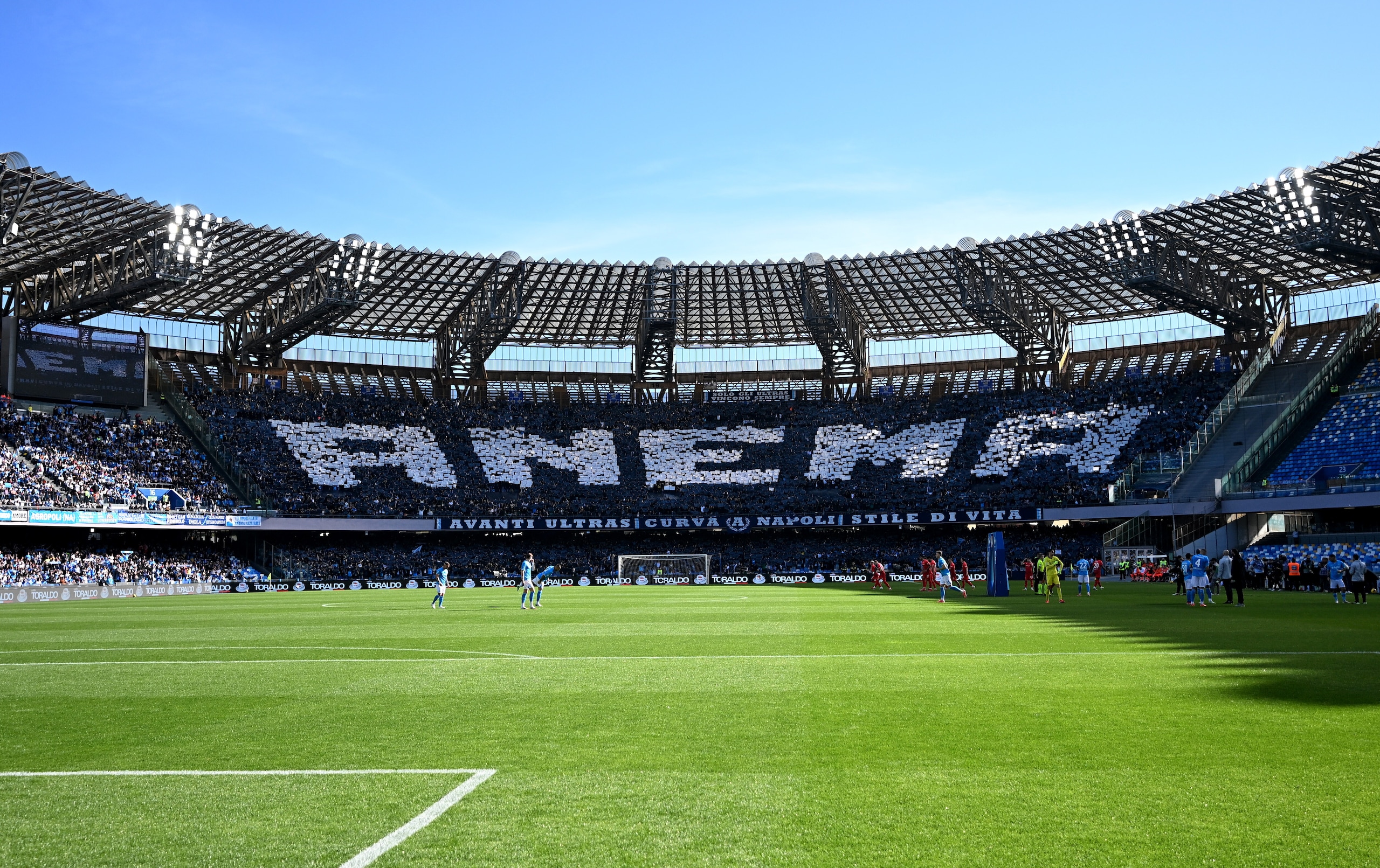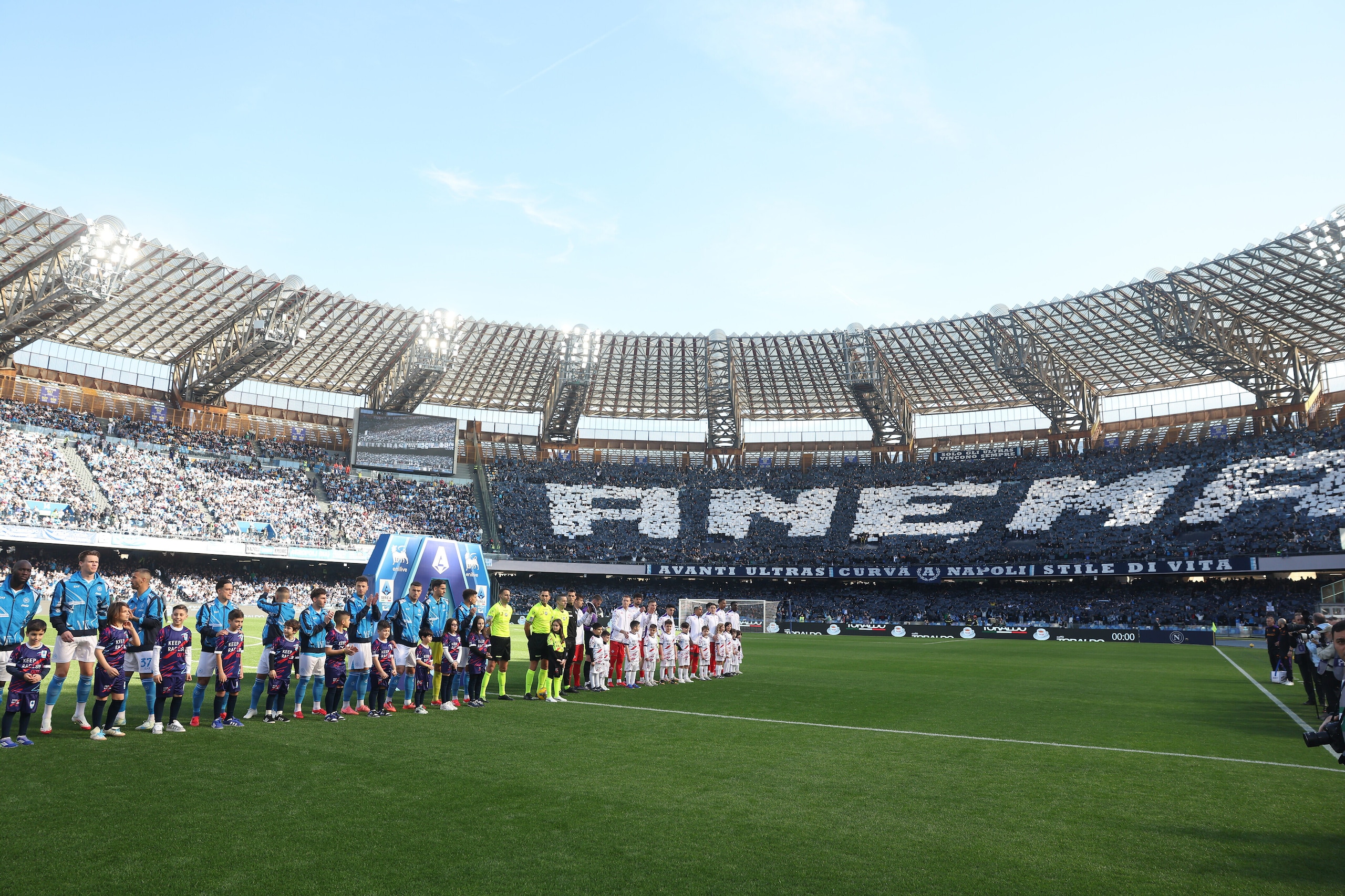 Spettacolare scenografia allestita dai sostenitori azzurri nelle due curve dello stadio in occasione della sfida valida per la 28ª giornata di Serie A: le immagini