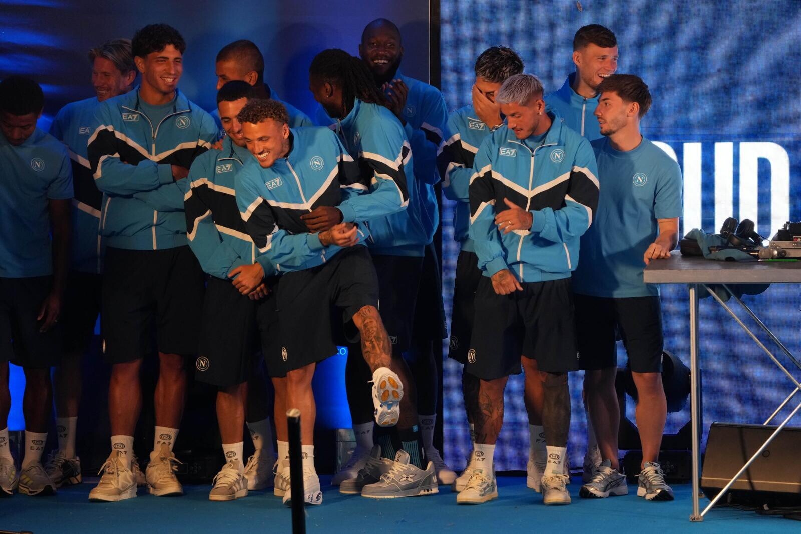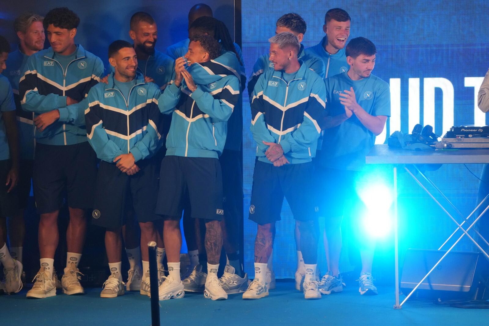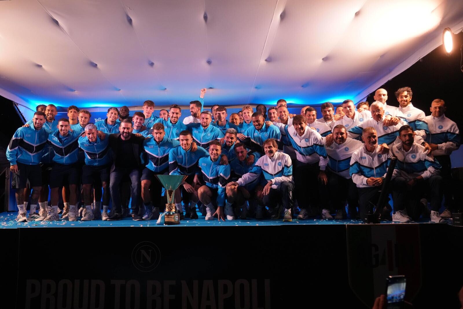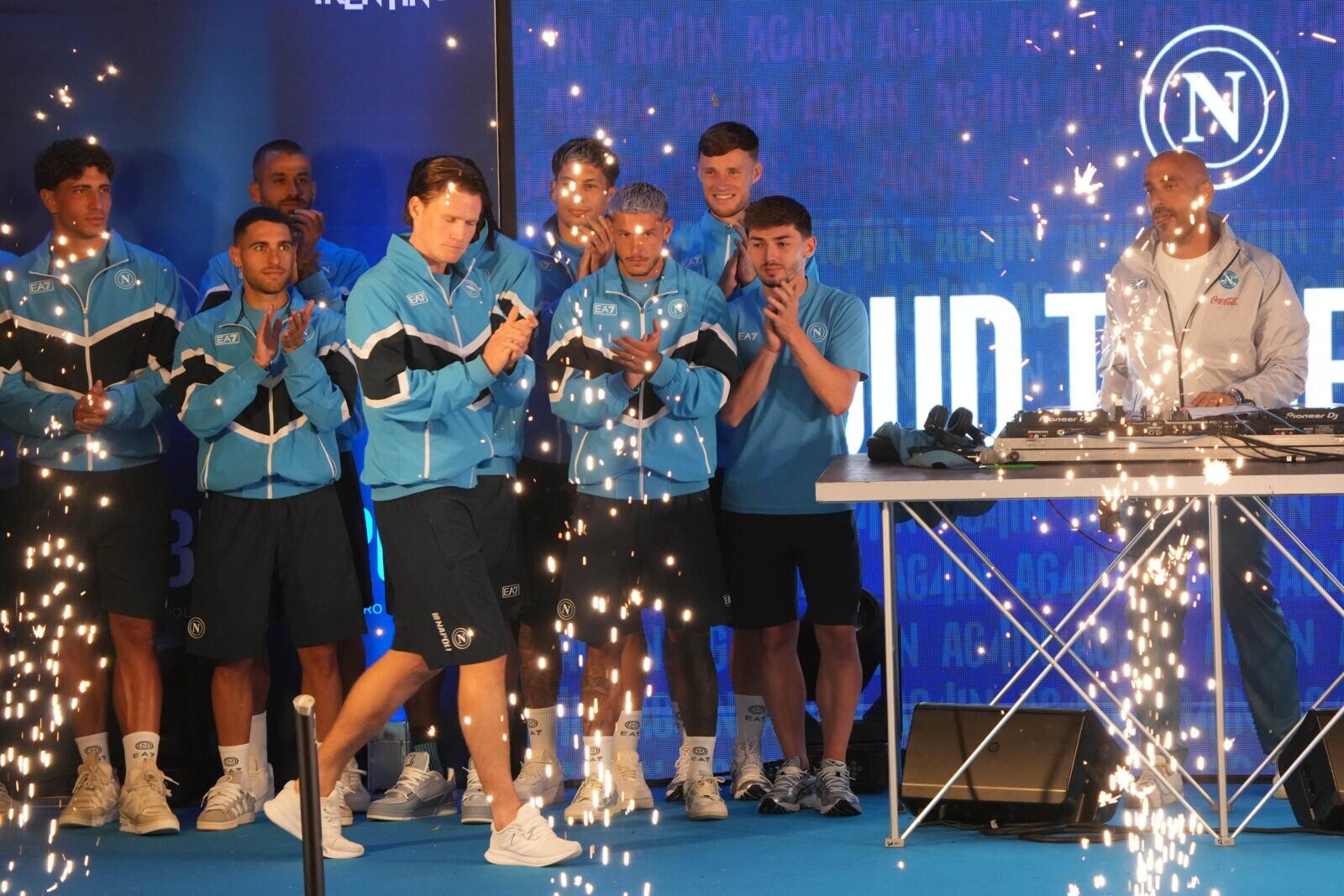 Conte, Oriali, Di Lorenzo, i nuovi acquisti e tutta la squadra salgono sul palco acclamati dai sostenitori azzurri presenti in ritiro: tutte le foto