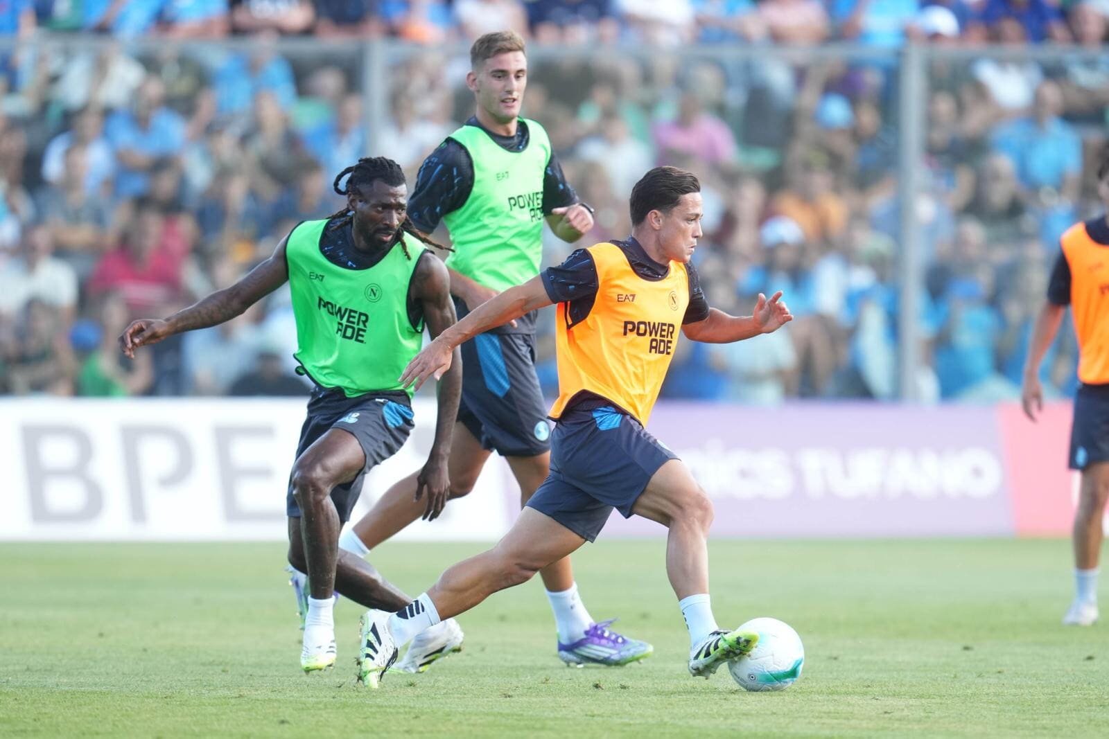 Doppia seduta agli ordini di Conte con ben nove assenti: Meret, Spinazzola, McTominay, Buongiorno, Olivera, Vergara, Juan Jesus, Marianucci e Gilmour