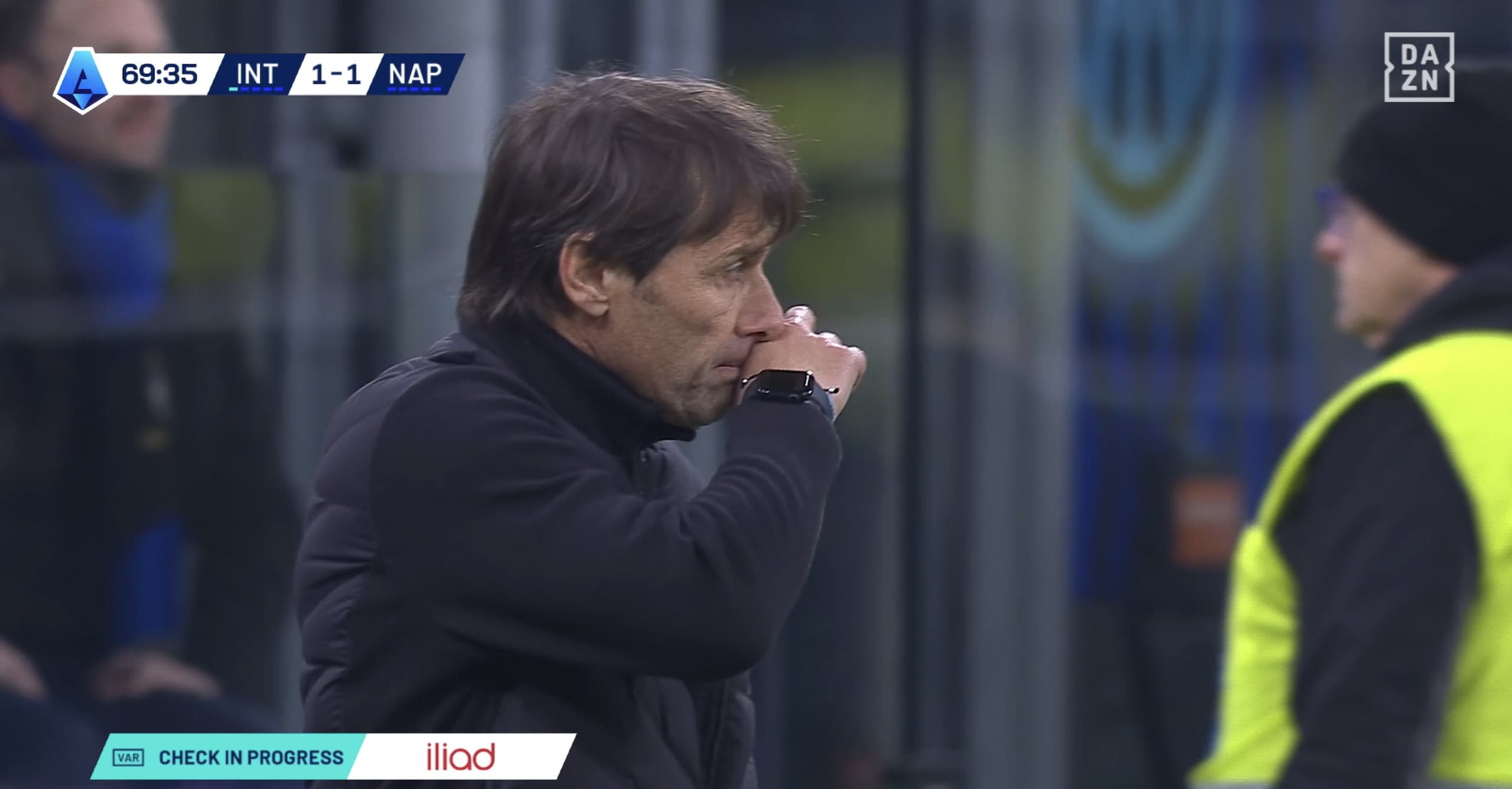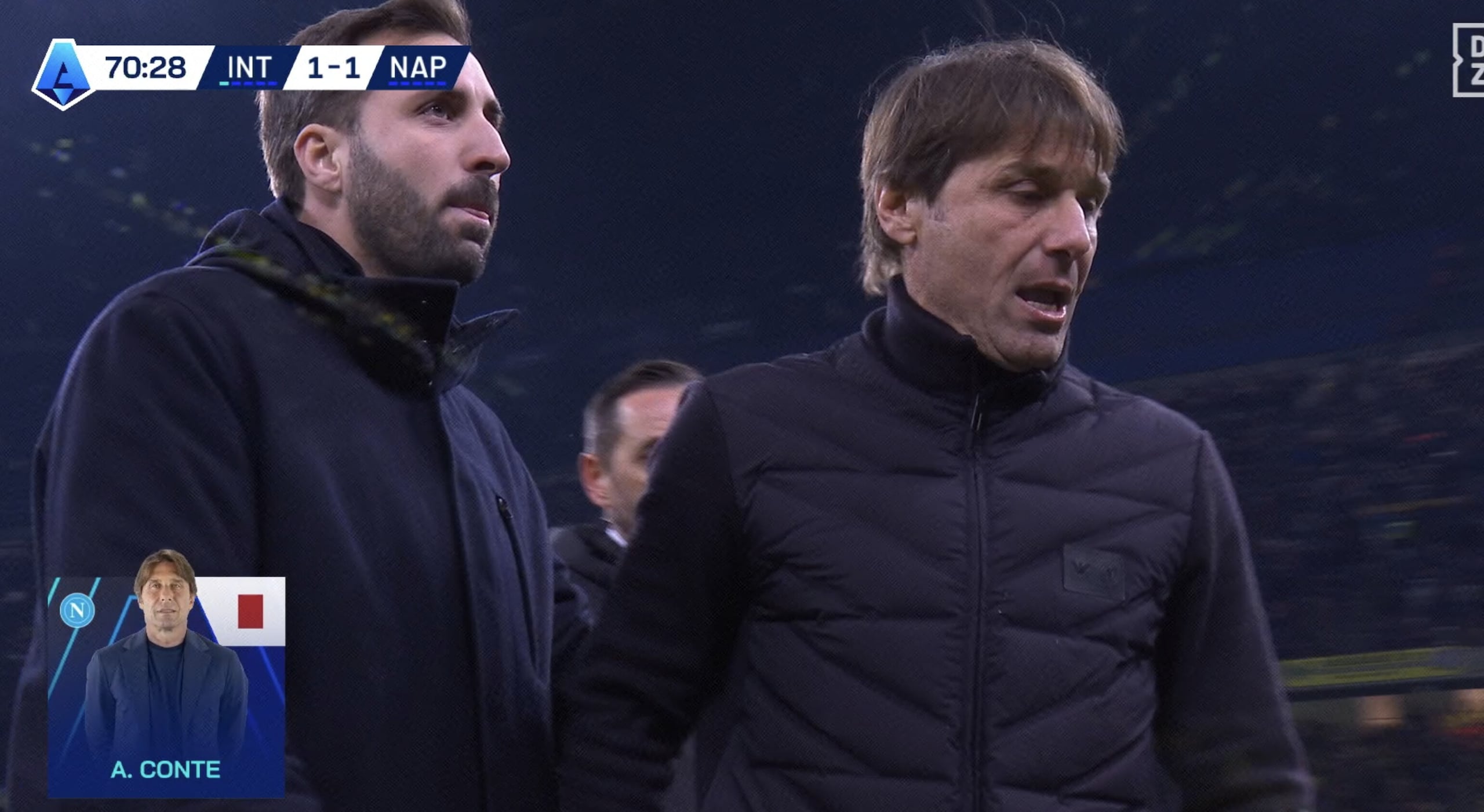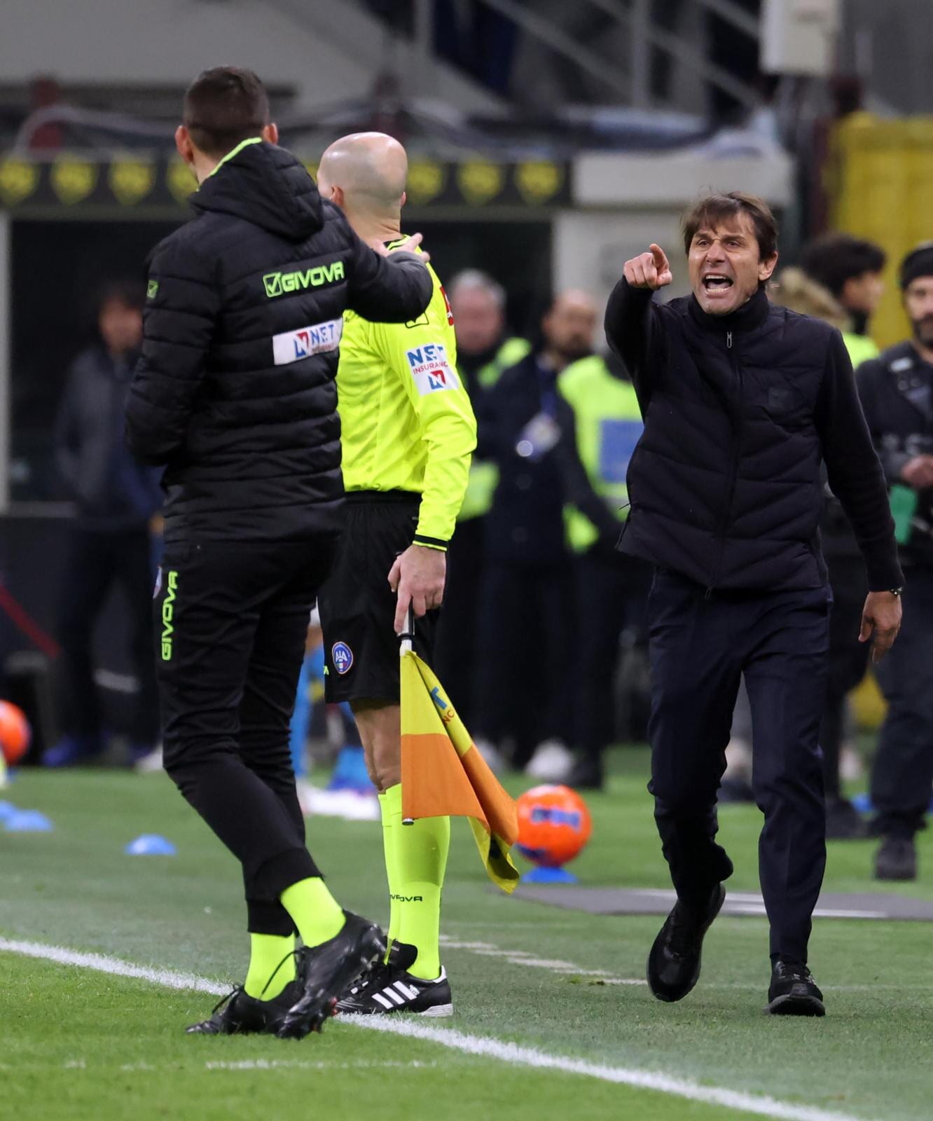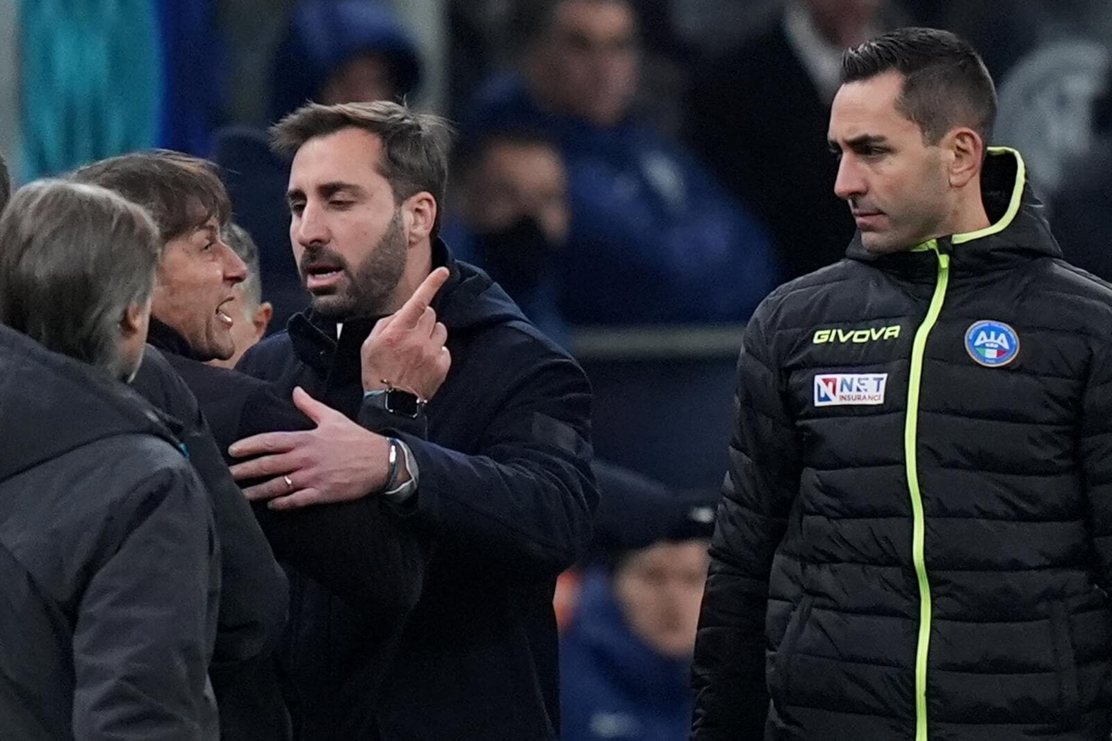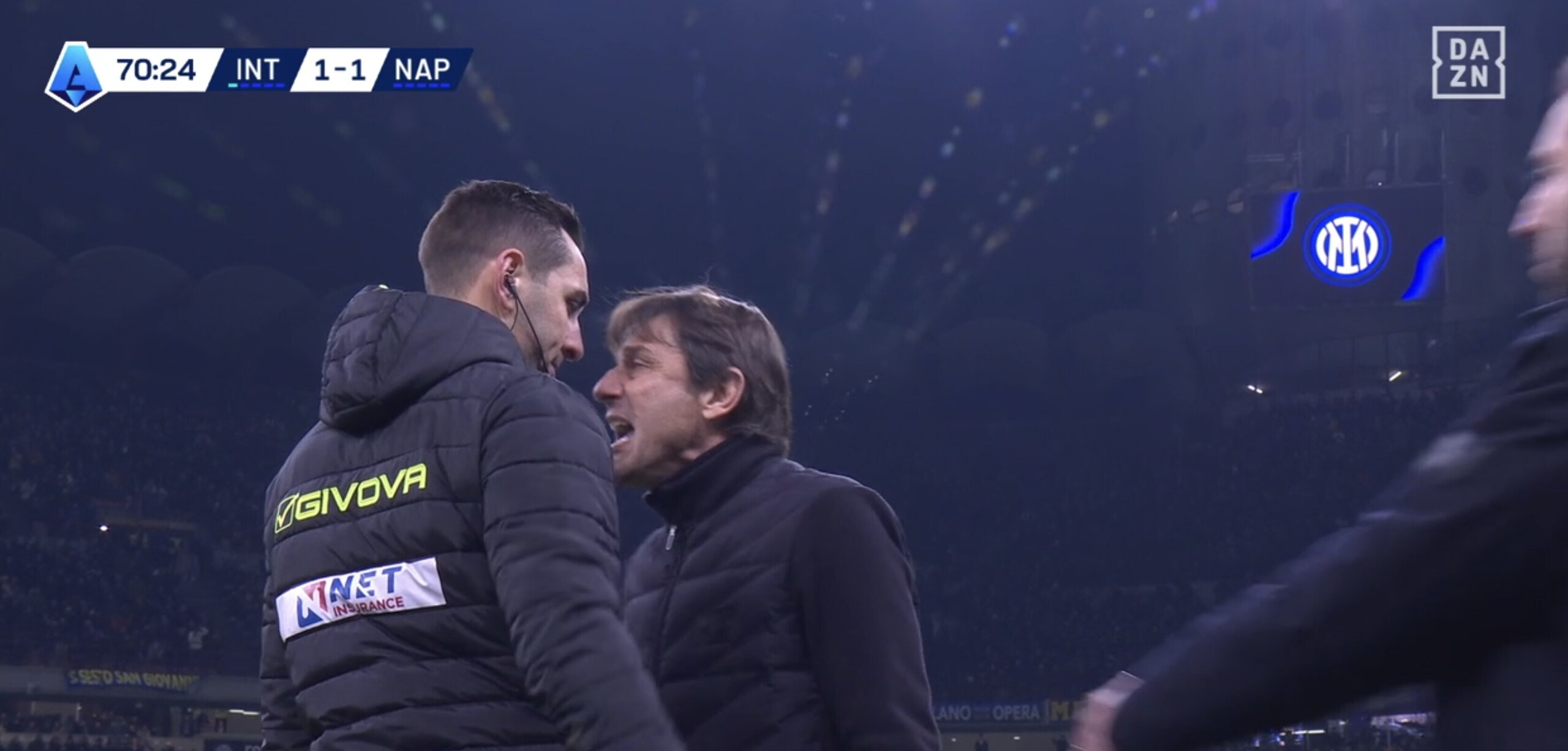 Conte faccia a faccia con il quarto uomo dopo il rigore assegnato all'Inter, Doveri estrae il rosso: la fotosequenza