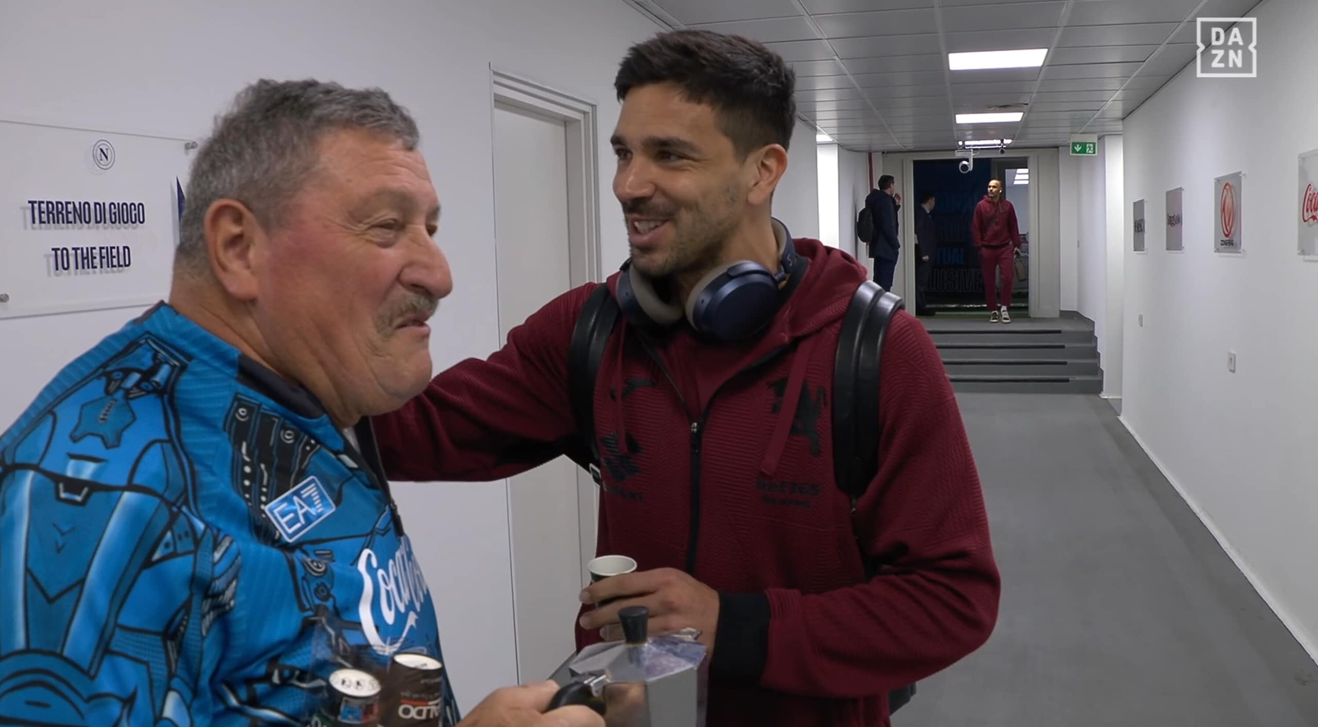 Tommaso Starace, abbracci e caffé offerto a Simeone prima di Napoli-Torino
