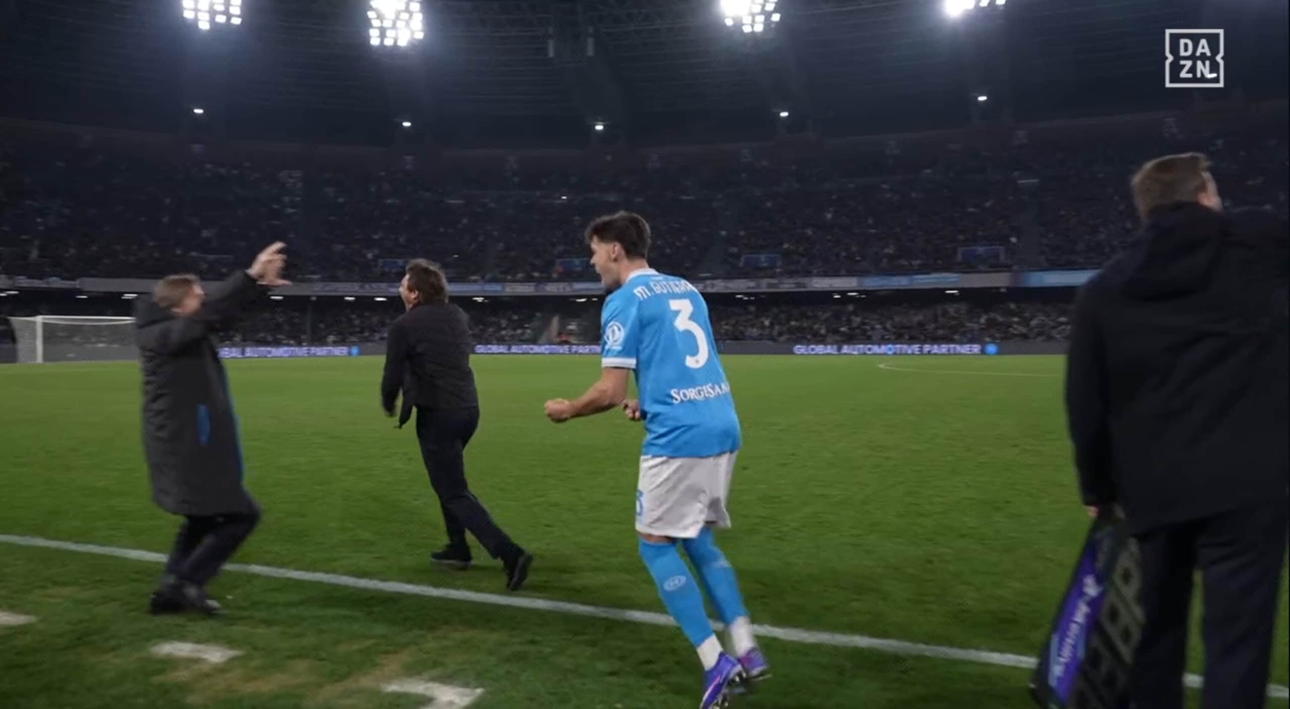 Conte impazzisce dopo il gol di Elmas e lascia Gutierrez da solo per andare ad esultare