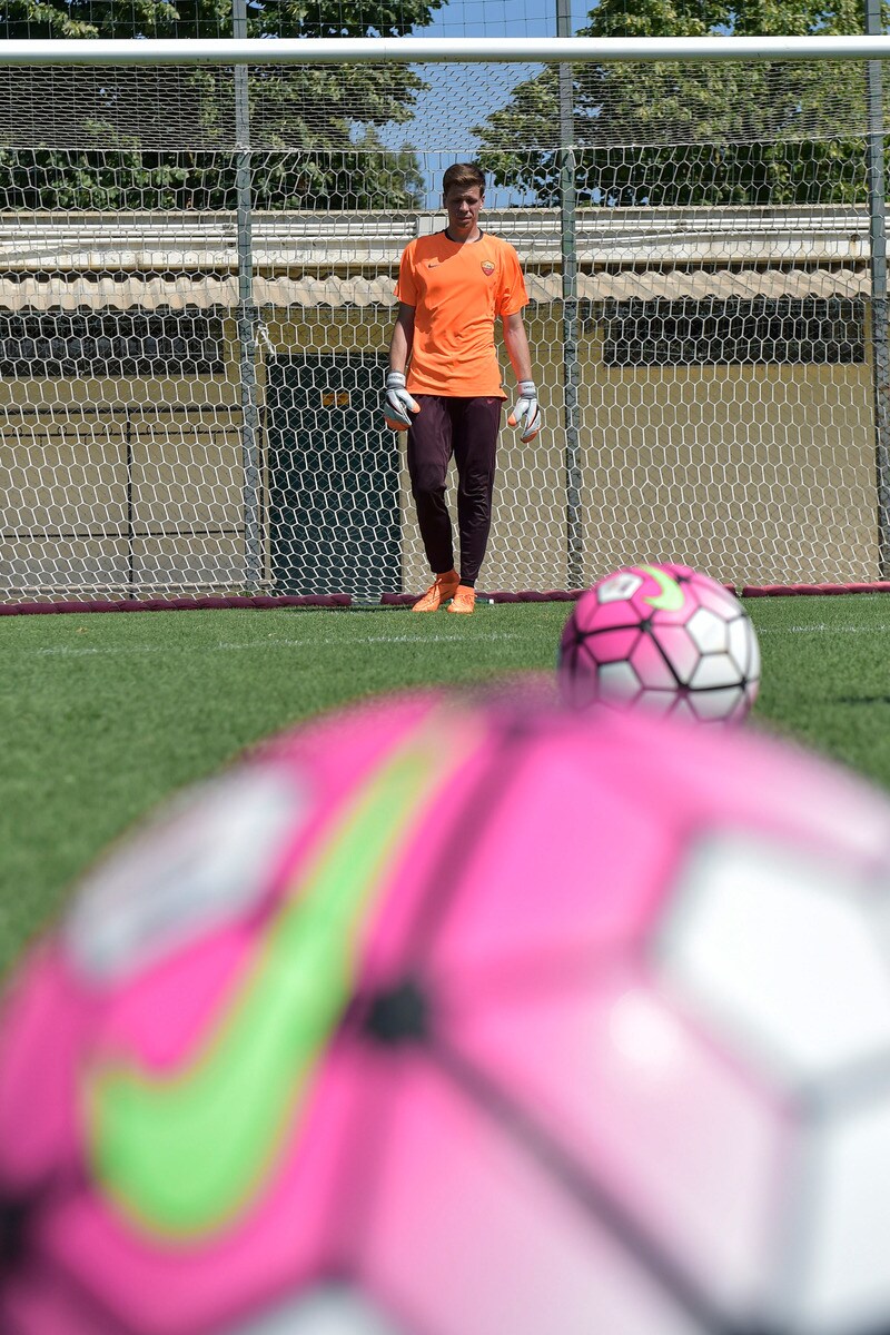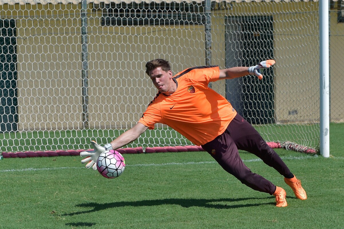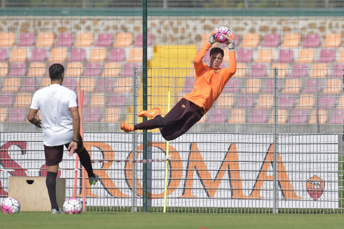 Il portiere polacco a Trigoria, tra campo e microfoni