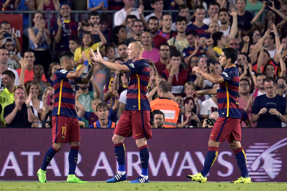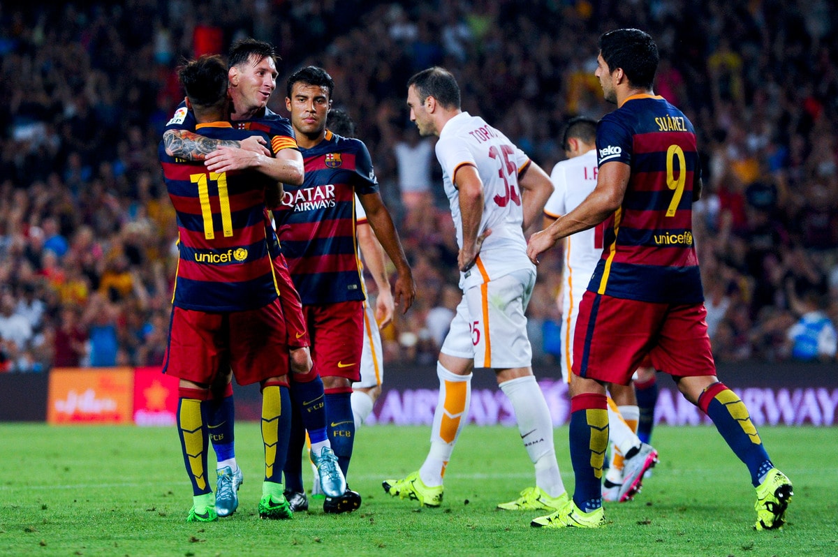 Neymar, Messi e Rakitic danno il successo ai blaugrana nel trofeo Gamper contro i giallorossi di Garcia
