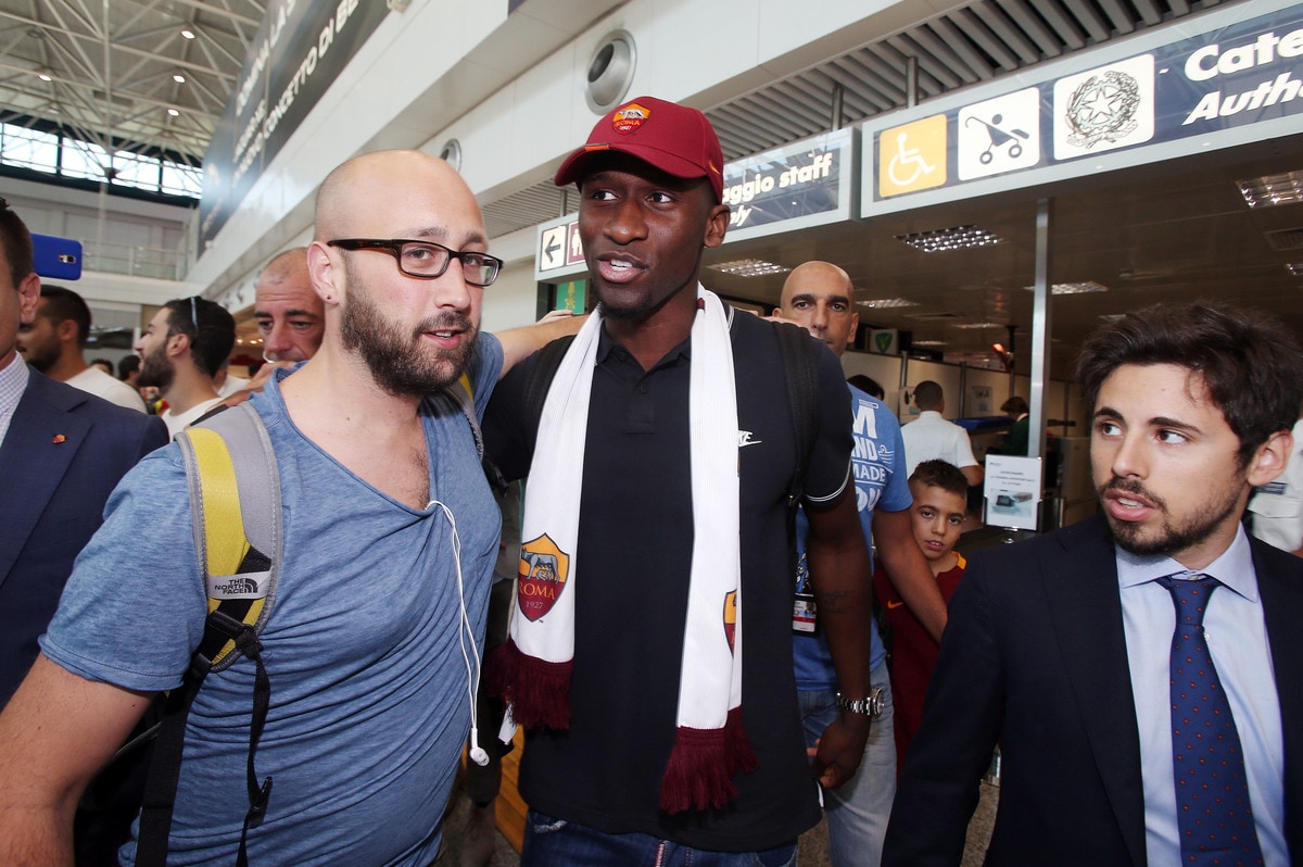 Rudiger sbarca a Fiumicino con la sciarpa della Roma
