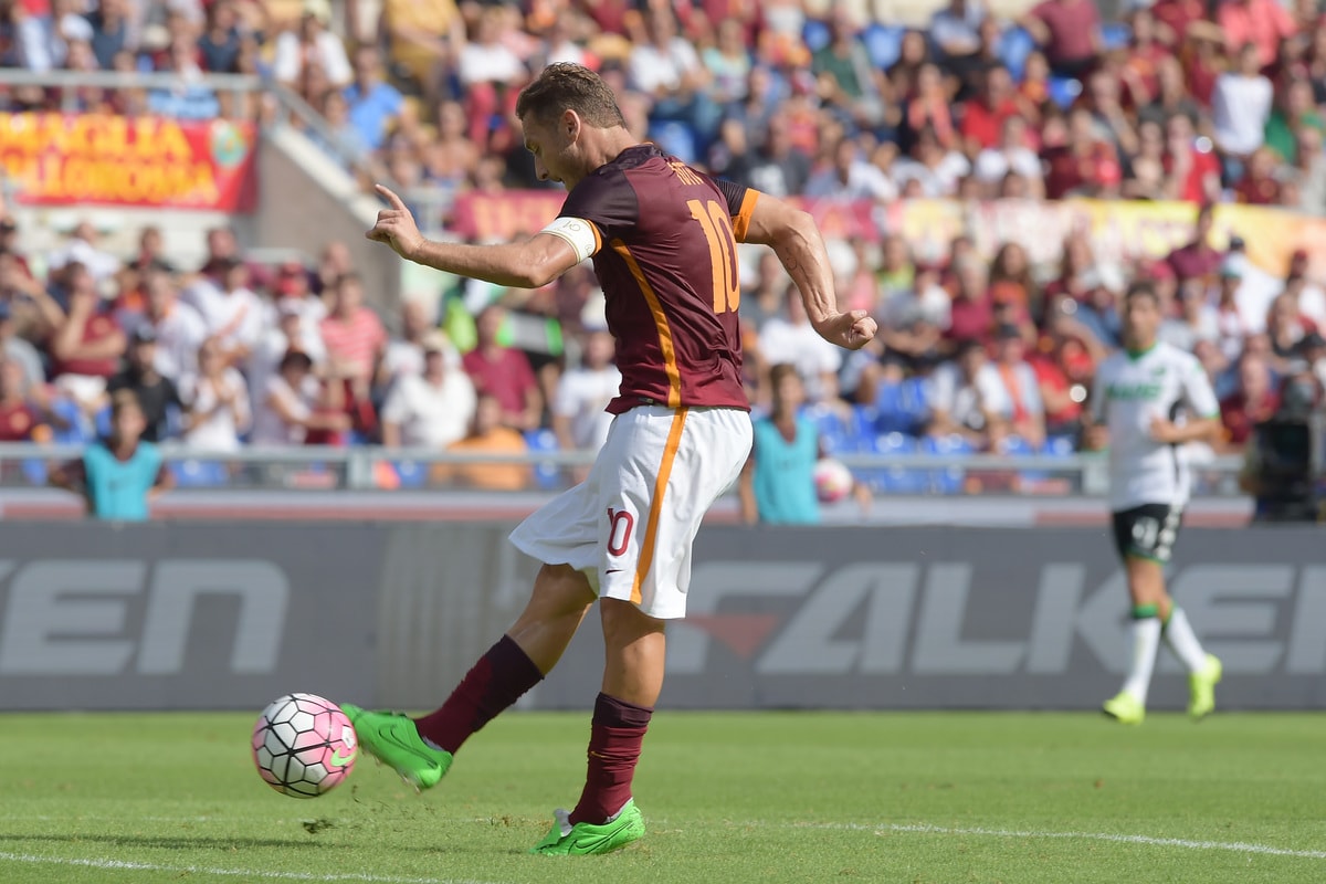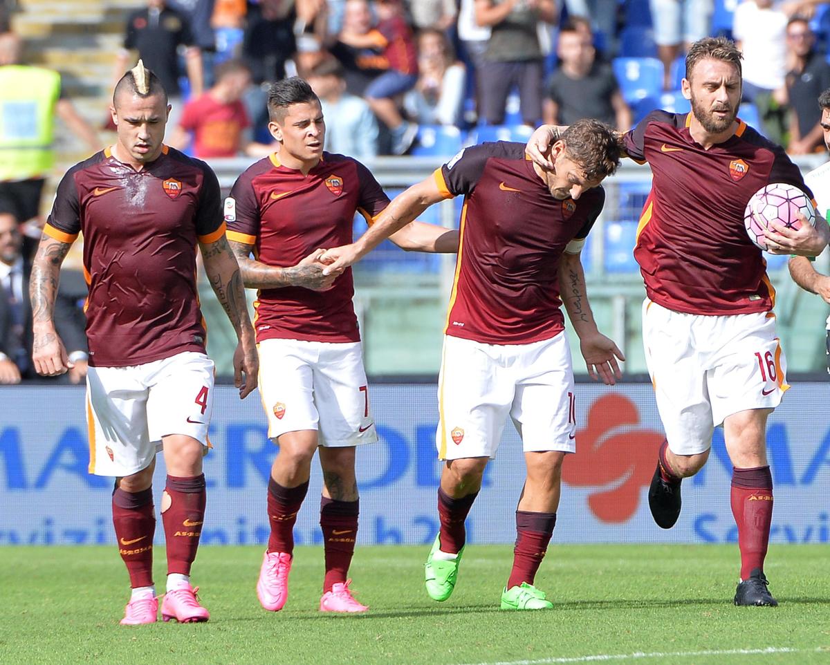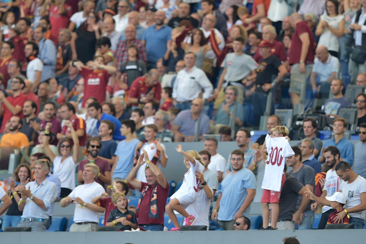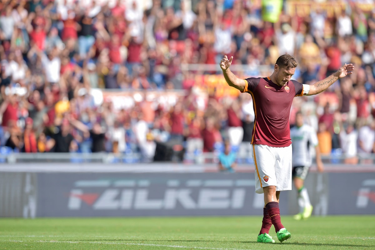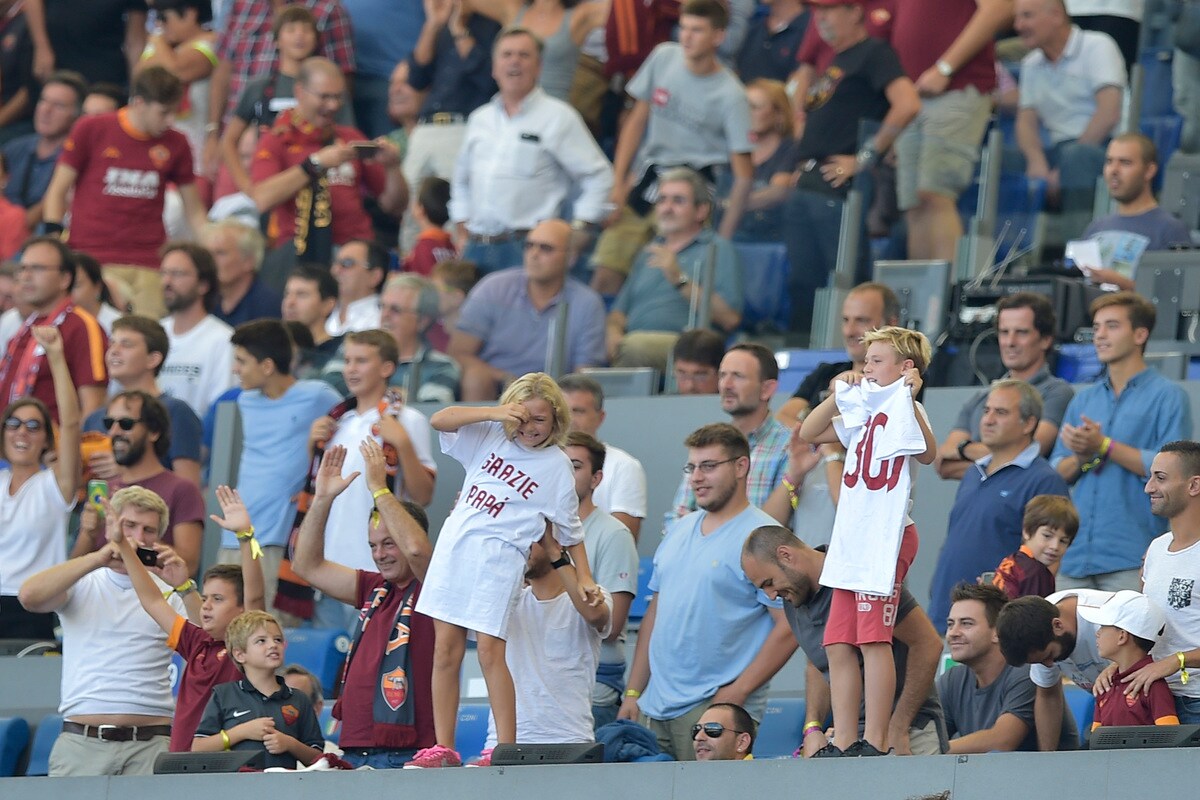 I figli del capitano giallorosso festeggiano il 300° gol del padre, segnato all'Olimpico contro il Sassuolo