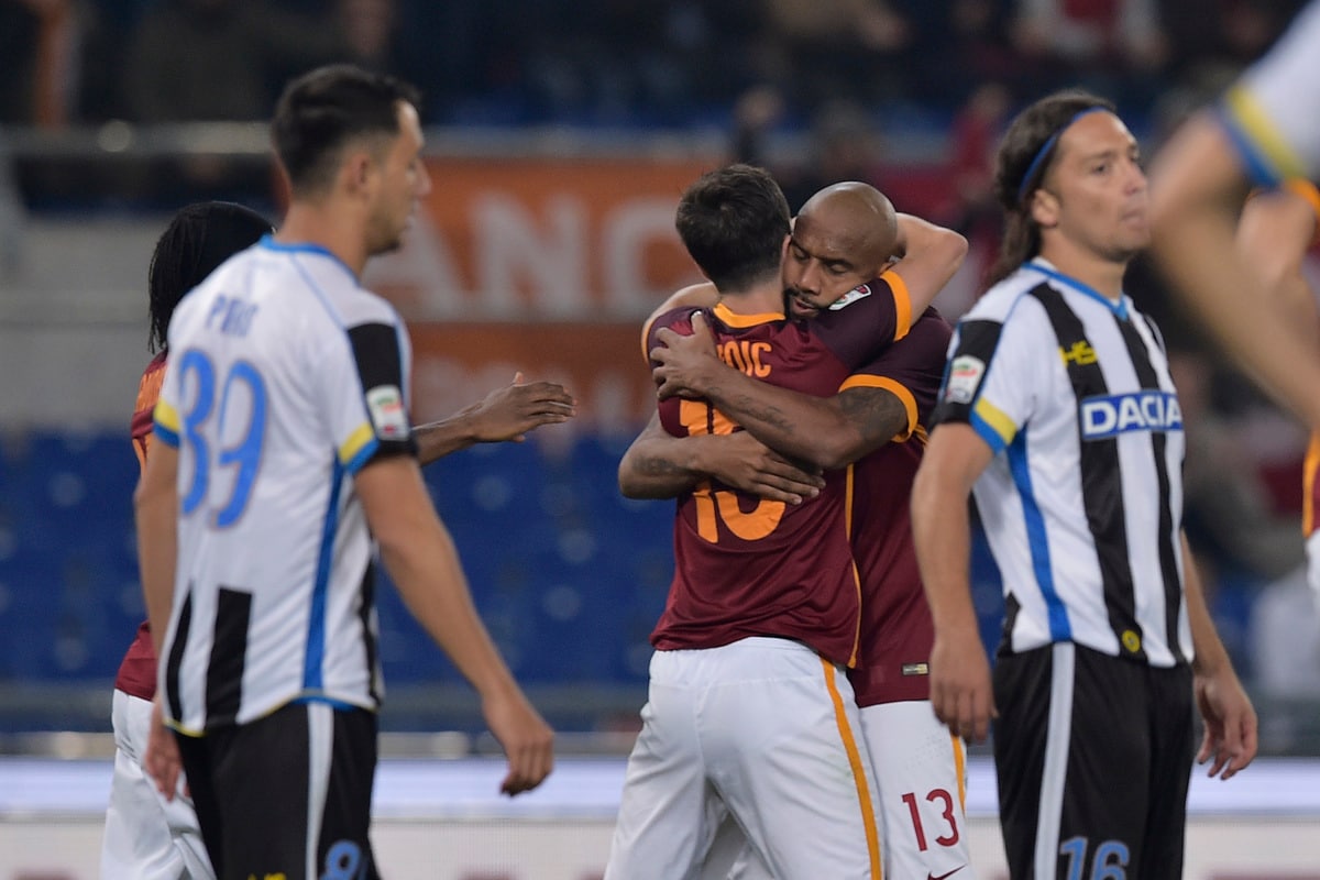 Il gesto del difensore della Roma dopo la rete contro l'Udinese