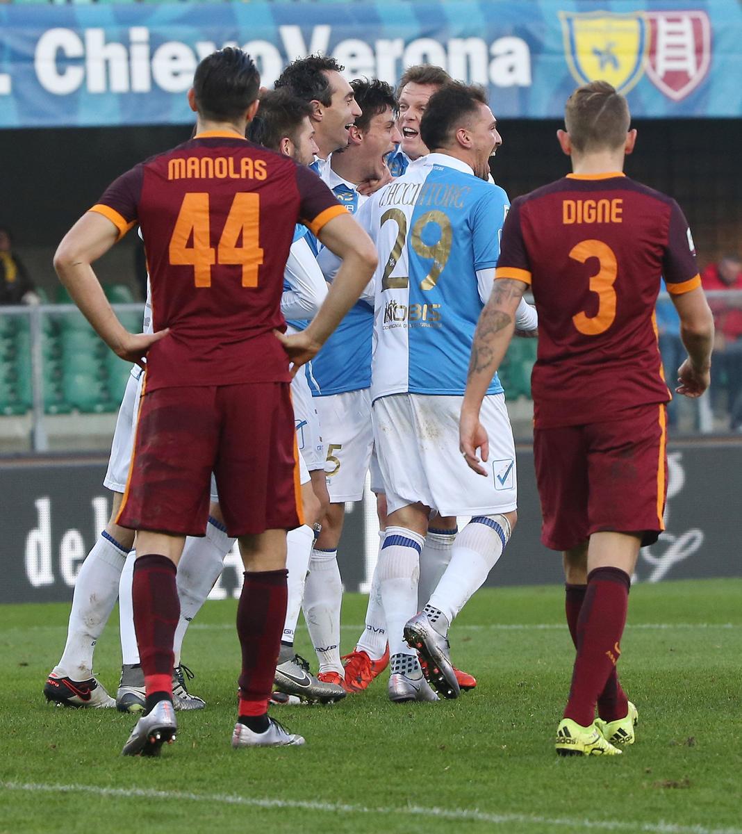 Le foto più belle della sfida del Bentegodi terminata 3-3. Ai giallorossi non bastano le reti di Sadiq, Florenzi e Iago Falque