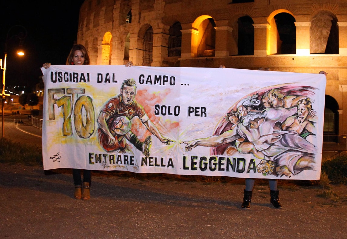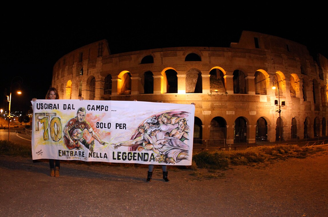 Roma, striscione al Colosseo per Totti