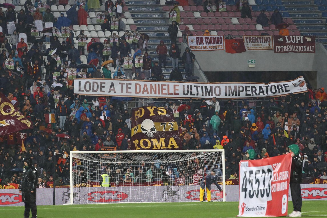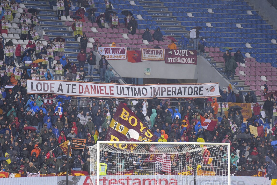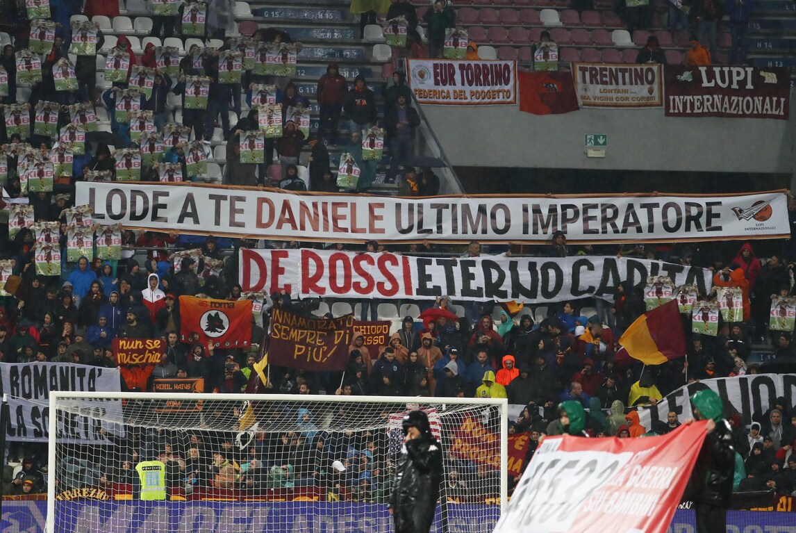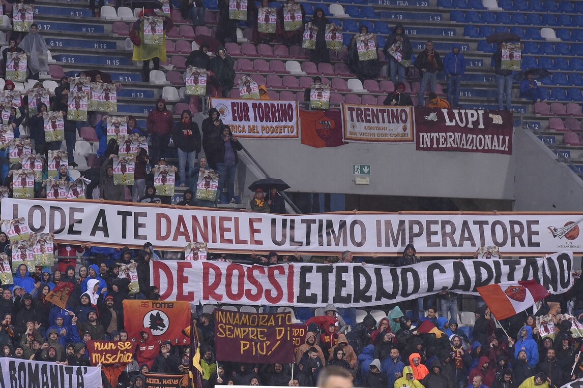 Roma, striscioni per De Rossi: «Lode a te, ultimo imperatore»