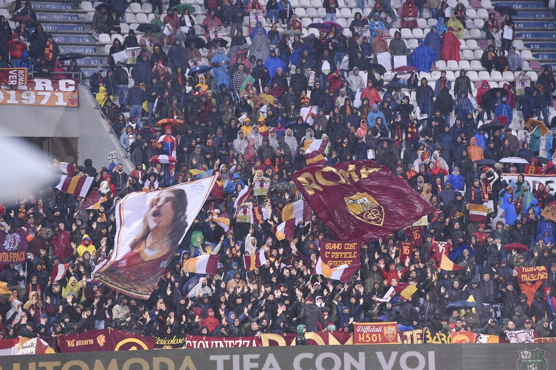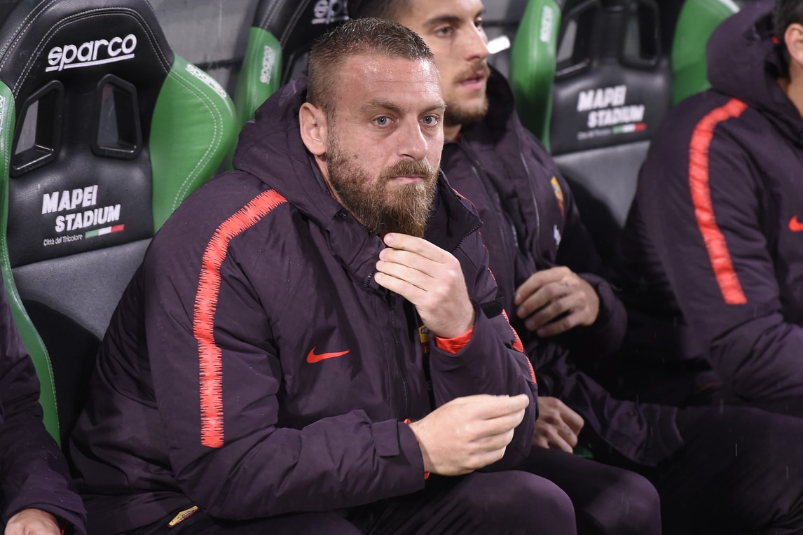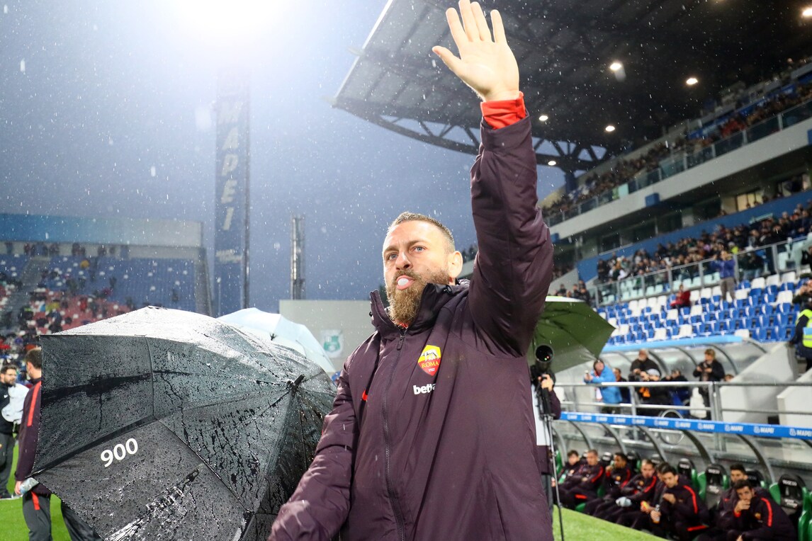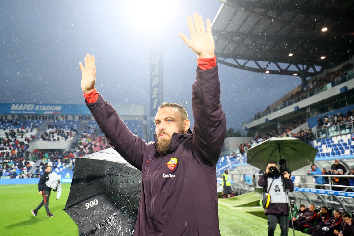 Tanti i messaggi e i cori per il capitano giallorosso in occasione della trasferta di Reggio Emilia contro il Sassuolo: lui si alza dalla panchina e ringrazia commosso