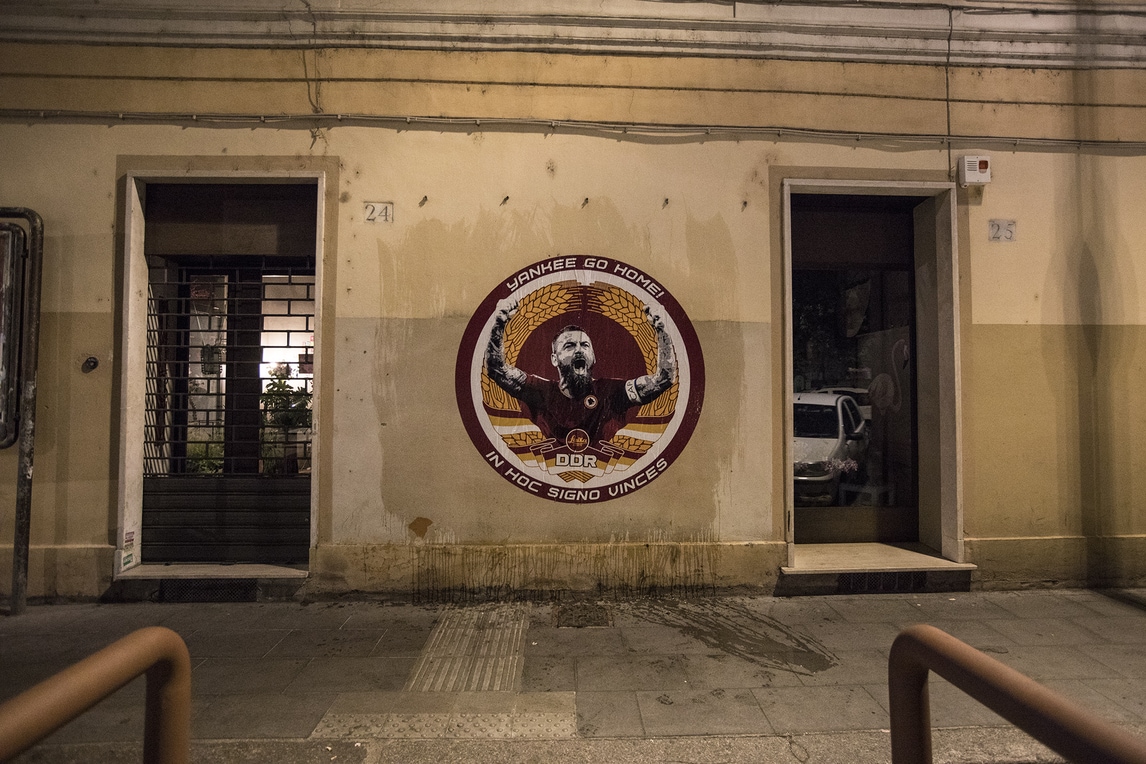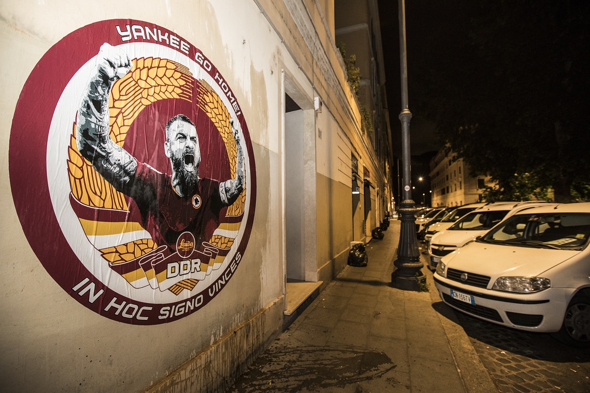 L’opera, comparsa nella notte, è stata realizzata da Laika, realtà emergente nel panorama della street-art romana. La scritta “Yankee go home” è palesemente riferita al presidente Pallotta. «Mi sembrava doveroso nei confronti di chi in tutta la sua carriera si è fatto beffe del falso perbenismo e dei disvalori del calcio moderno» ha detto l’artista
