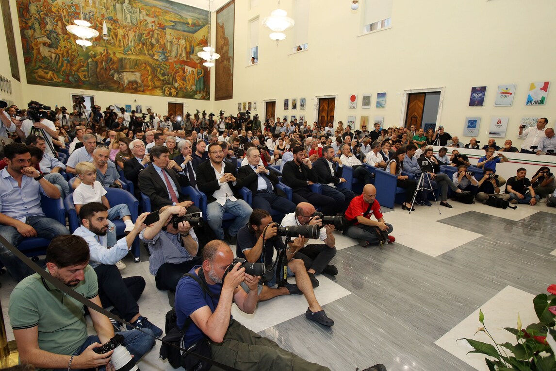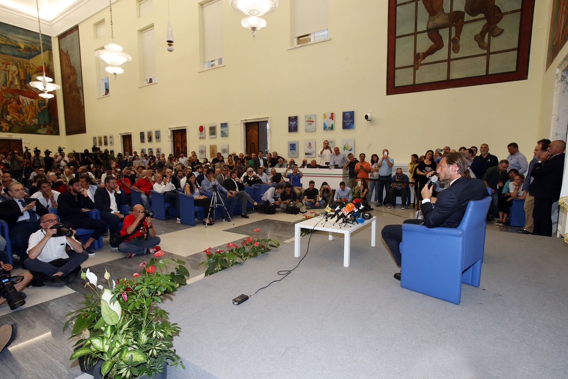 Le immagini di Francesco Totti nel salone d'Onore del Coni per l'addio alla Roma