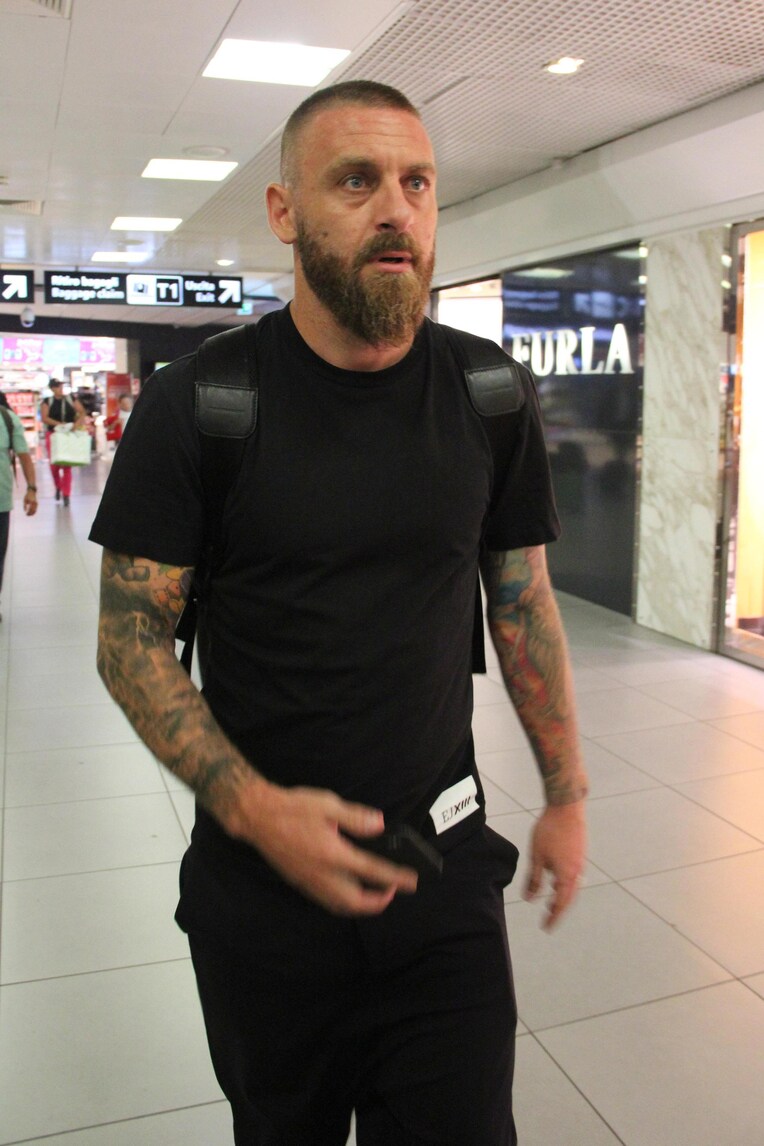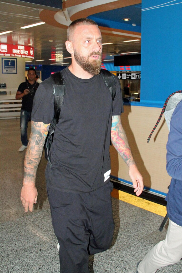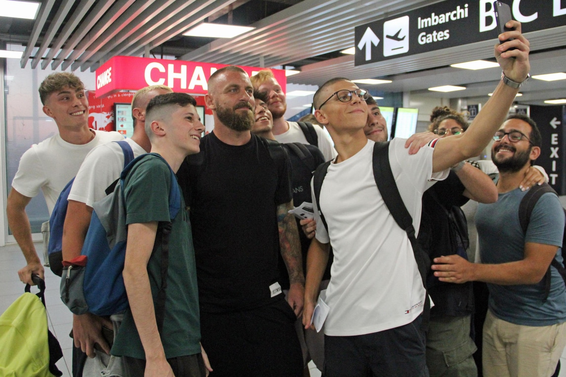 Il centrocampista a Fiumicino con la moglie per volare a Buenos Aires