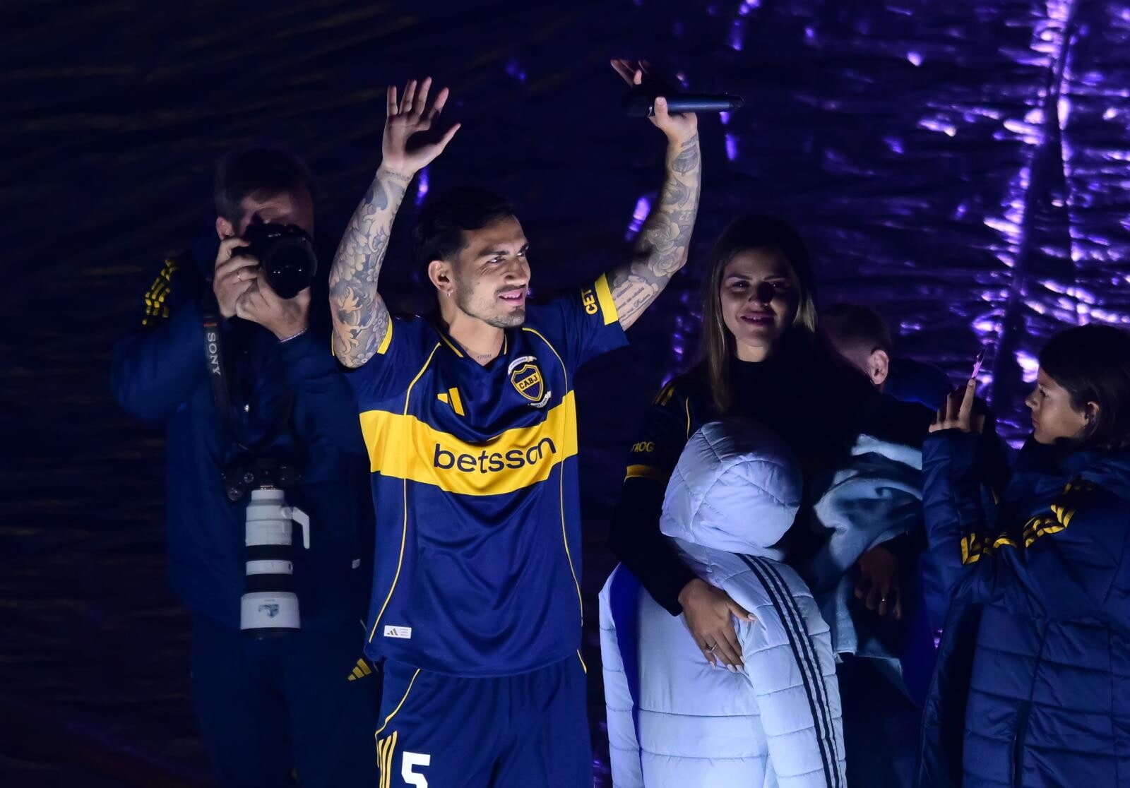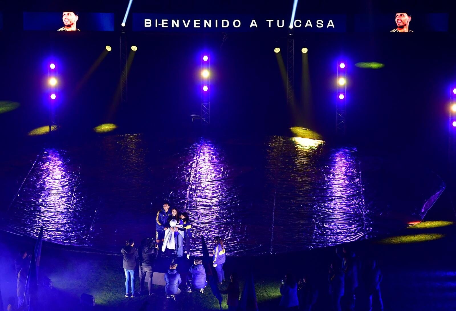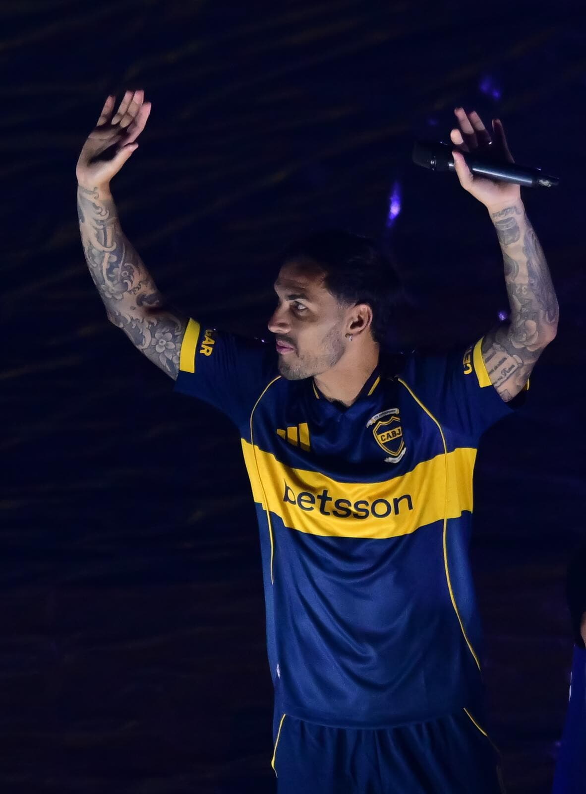 L'ormai ex Roma è tornato a vestire la maglia degli 'Xeneizes', con una presentazione in grandissimo stile: ecco tutte le immagini della festa