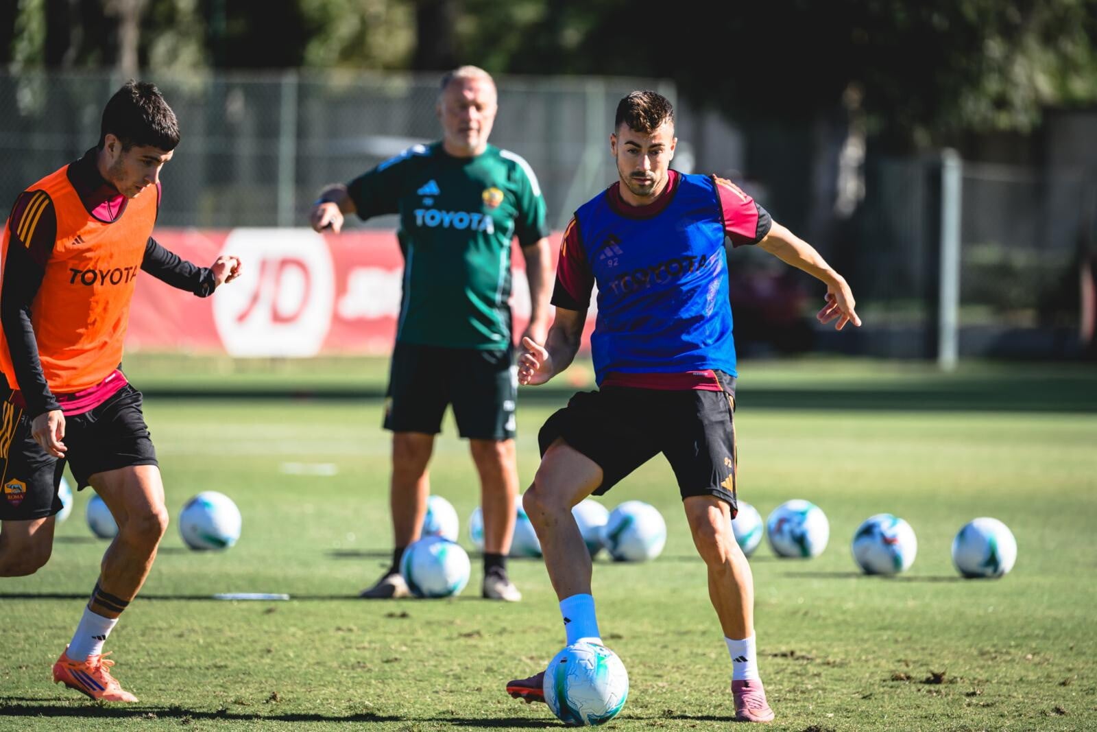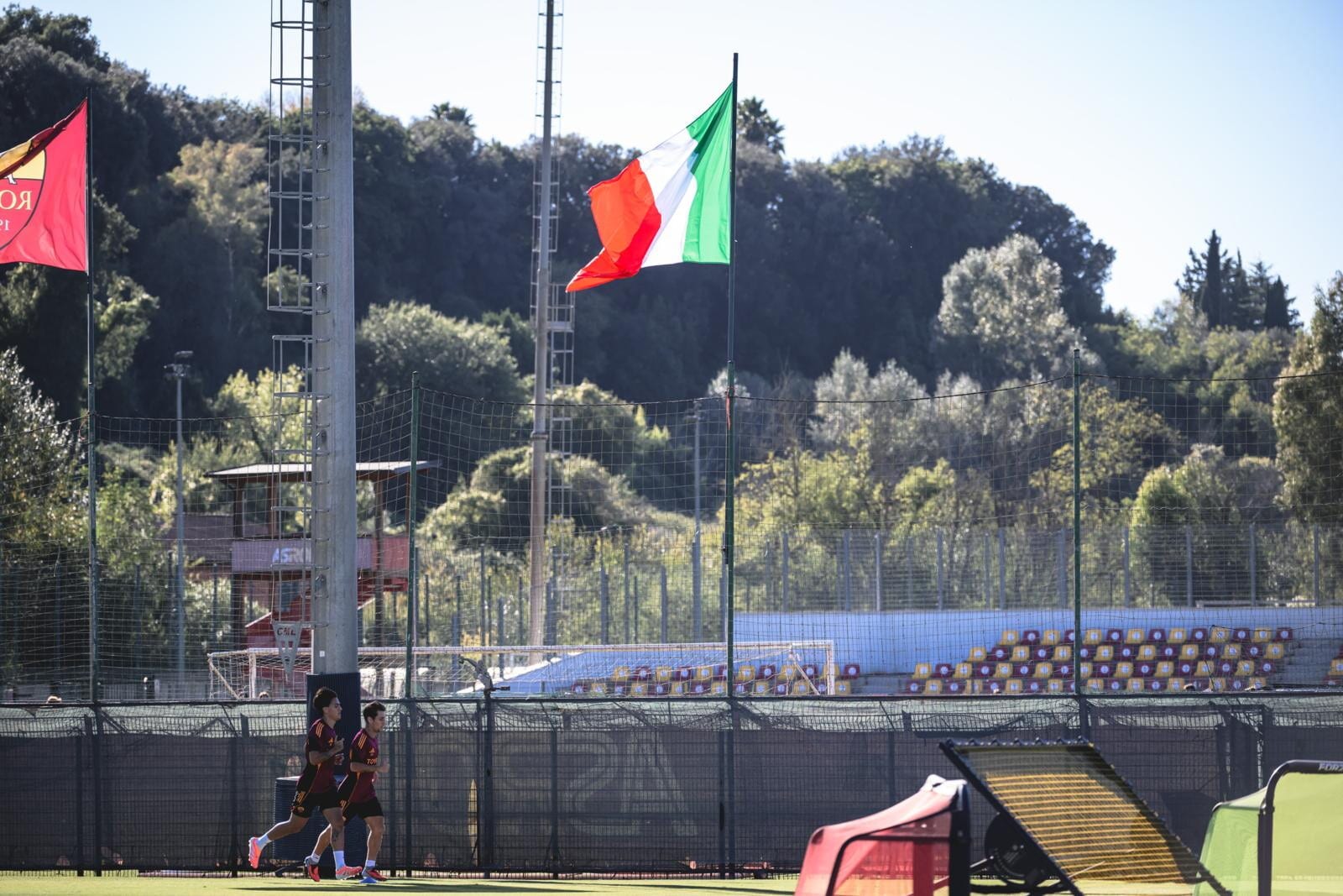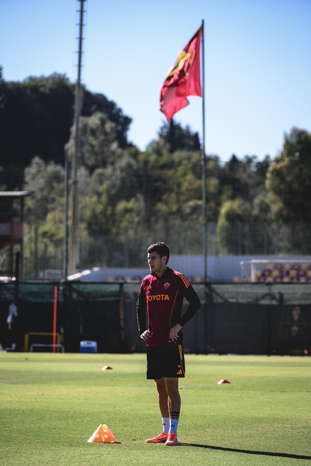 Il presidente giallorossa ha incontrato allenatore e giocatori e seguito una parte di allenamento