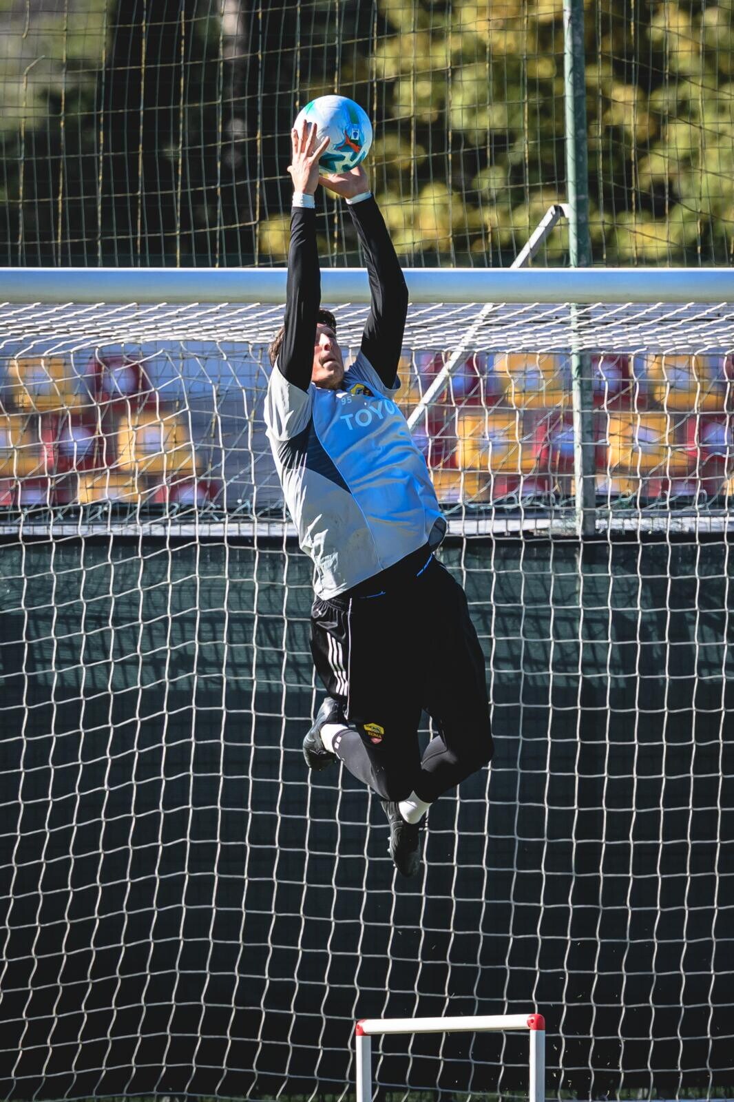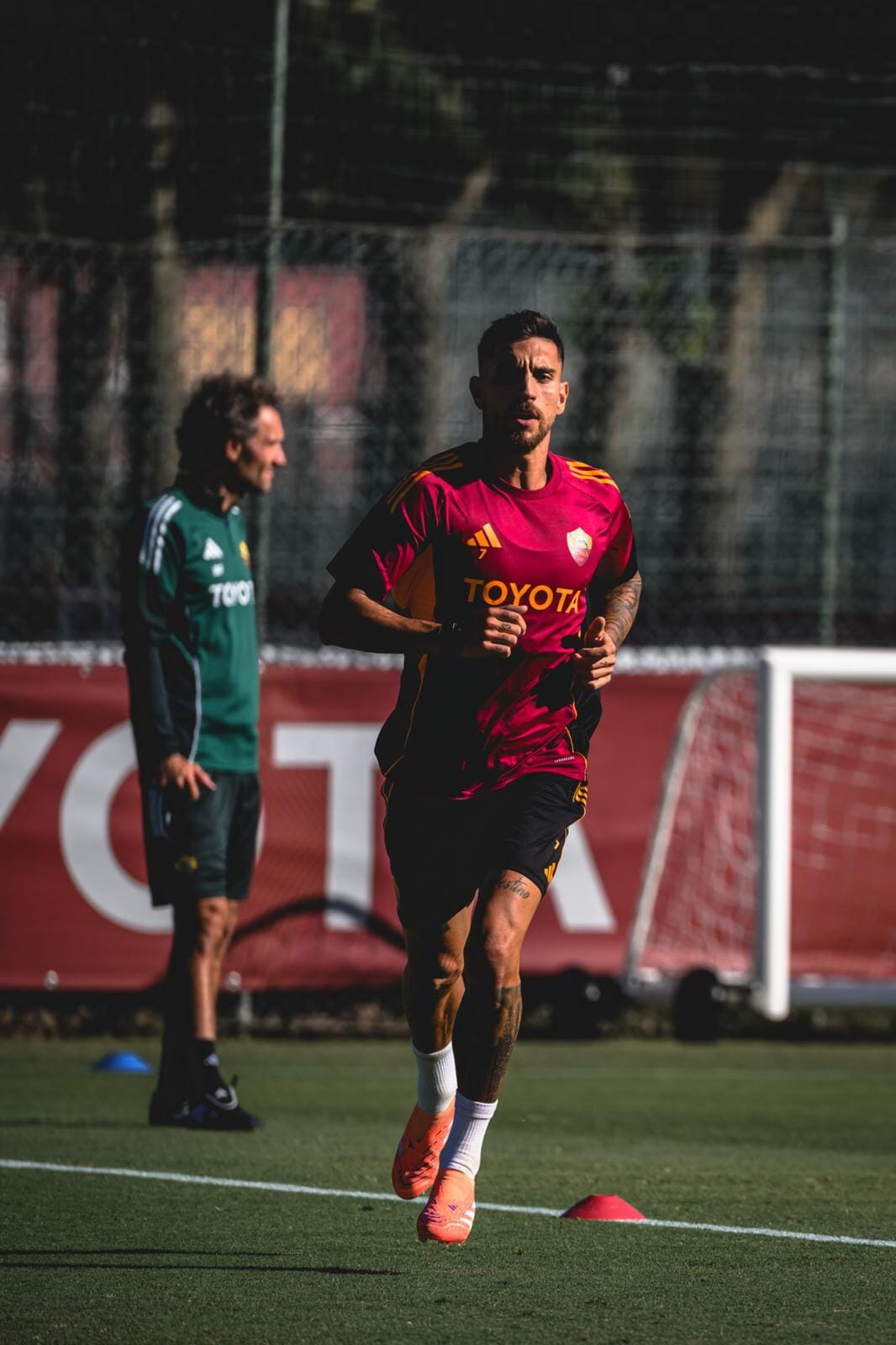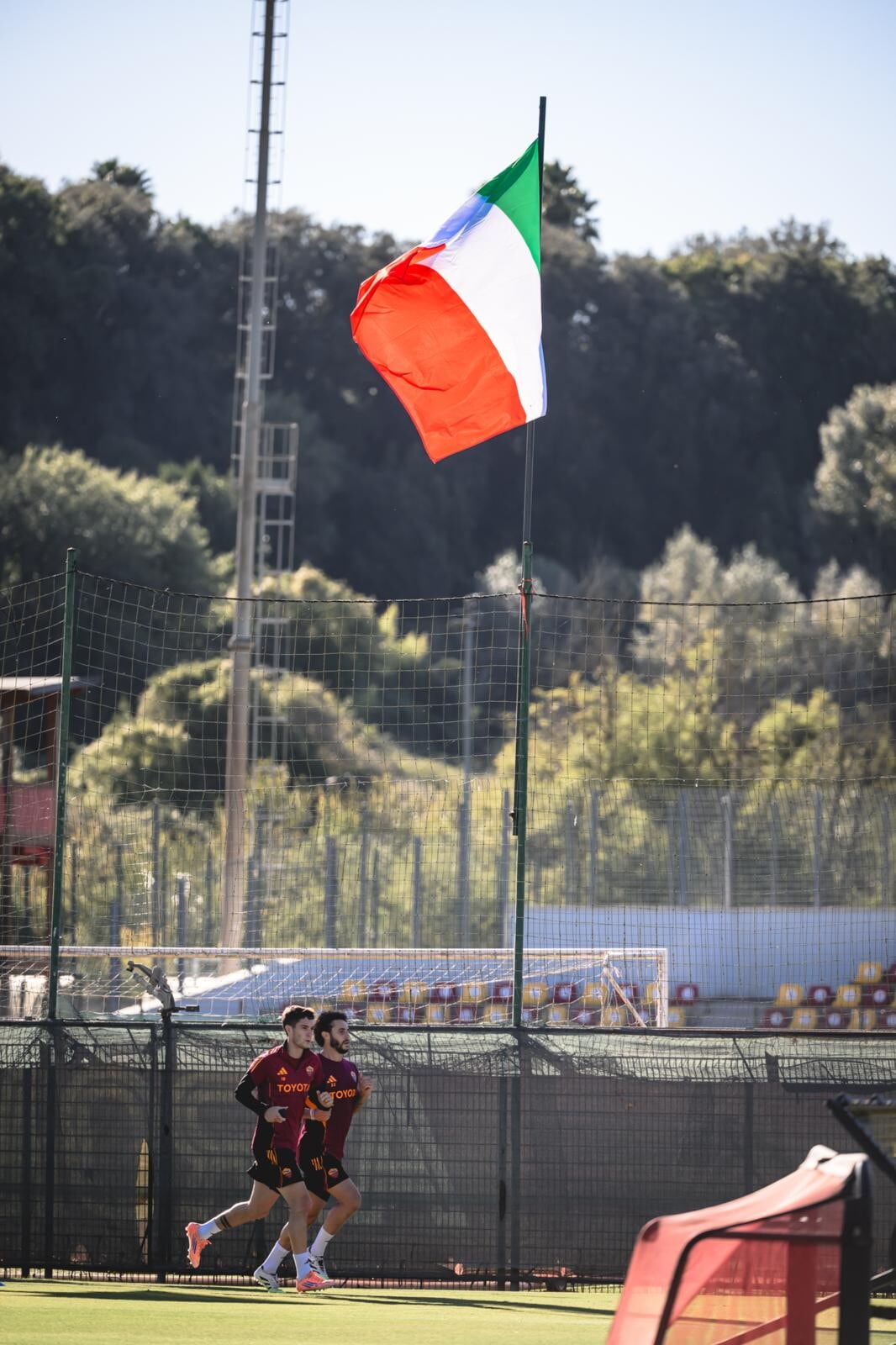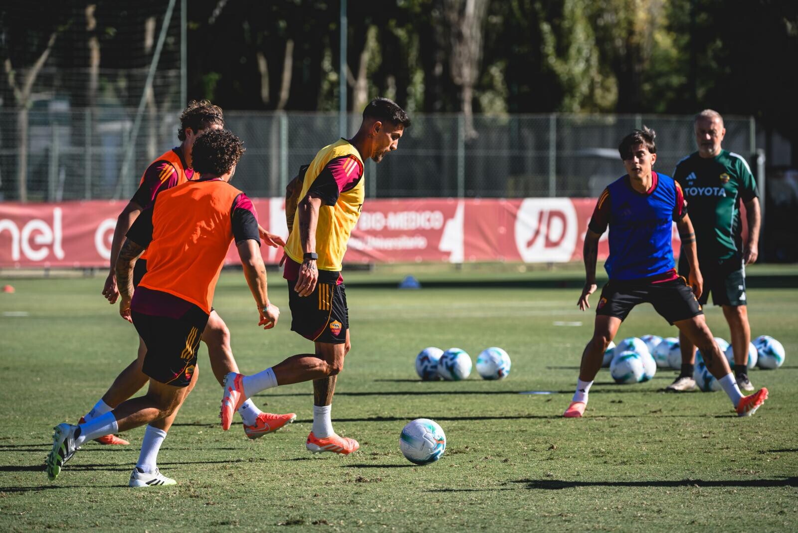 Il presidente giallorossa ha incontrato allenatore e giocatori e seguito una parte di allenamento