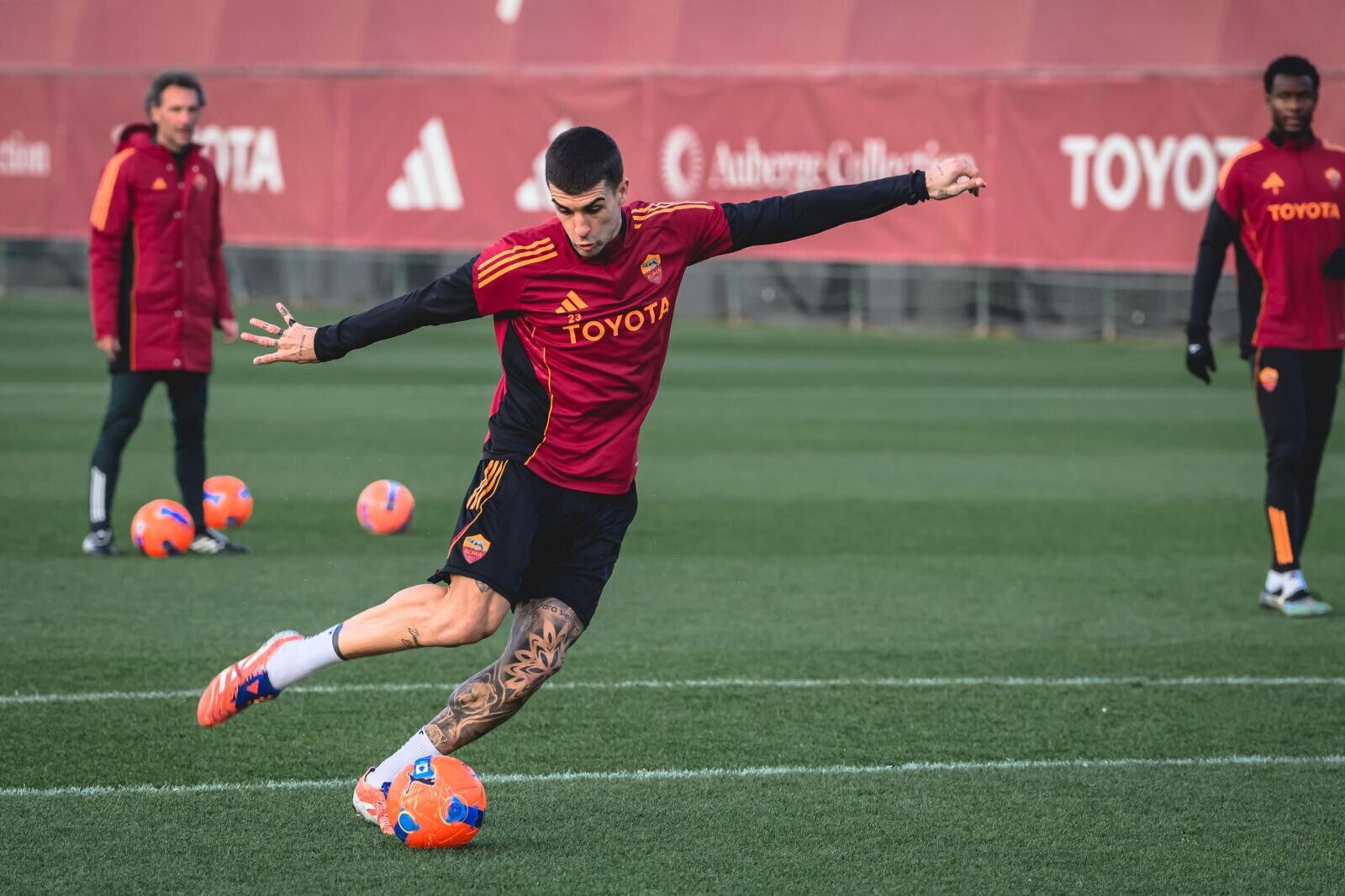 I giallorossi al lavoro sotto la sguardo di Gasperini: lunedì sera la sfida contro la squadra di Fabregas